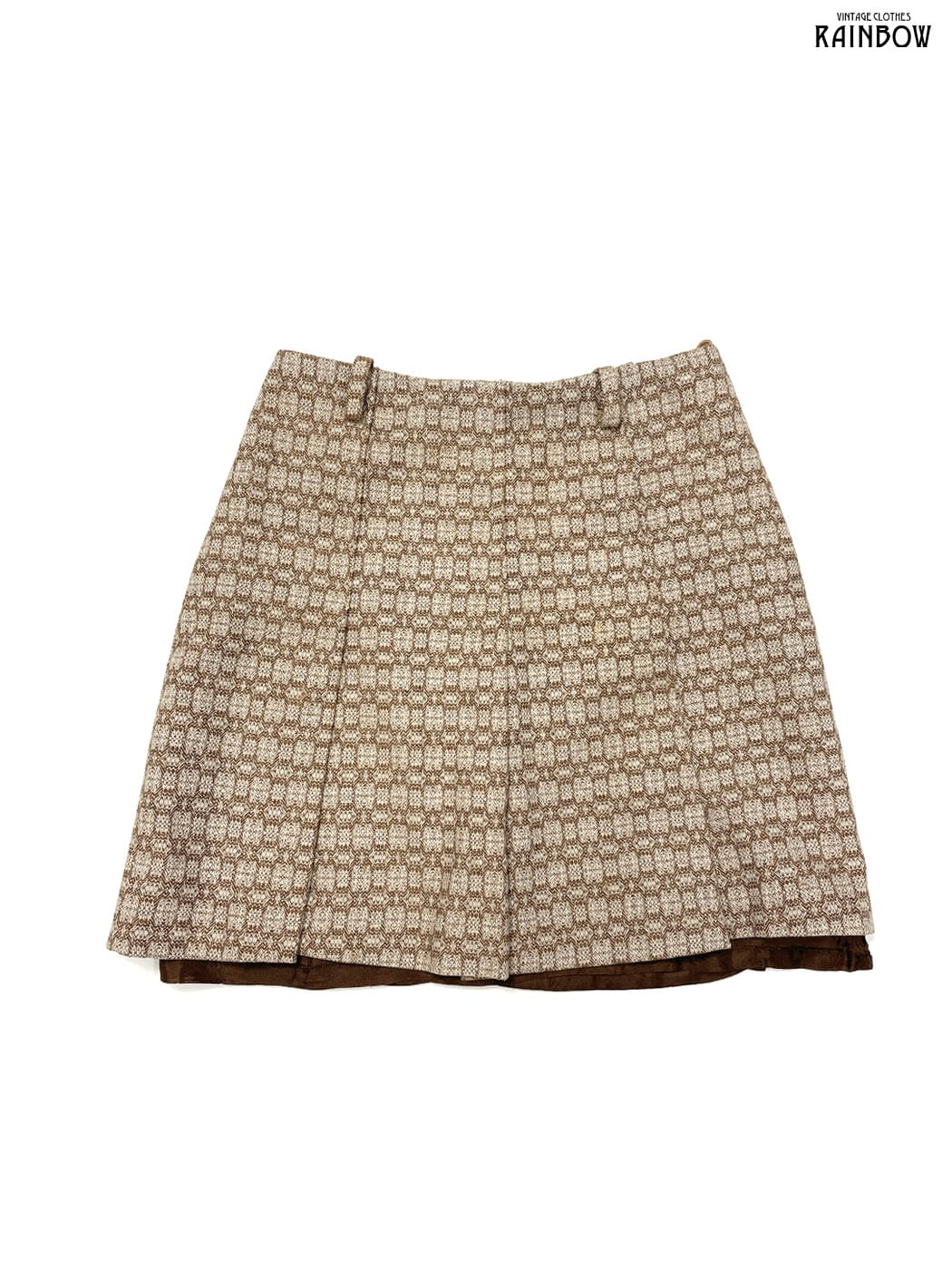 #スカート #ミニ丈 #タイト #Aライン #茶 #総柄 #クラシック #ウール #秋冬柄スカート