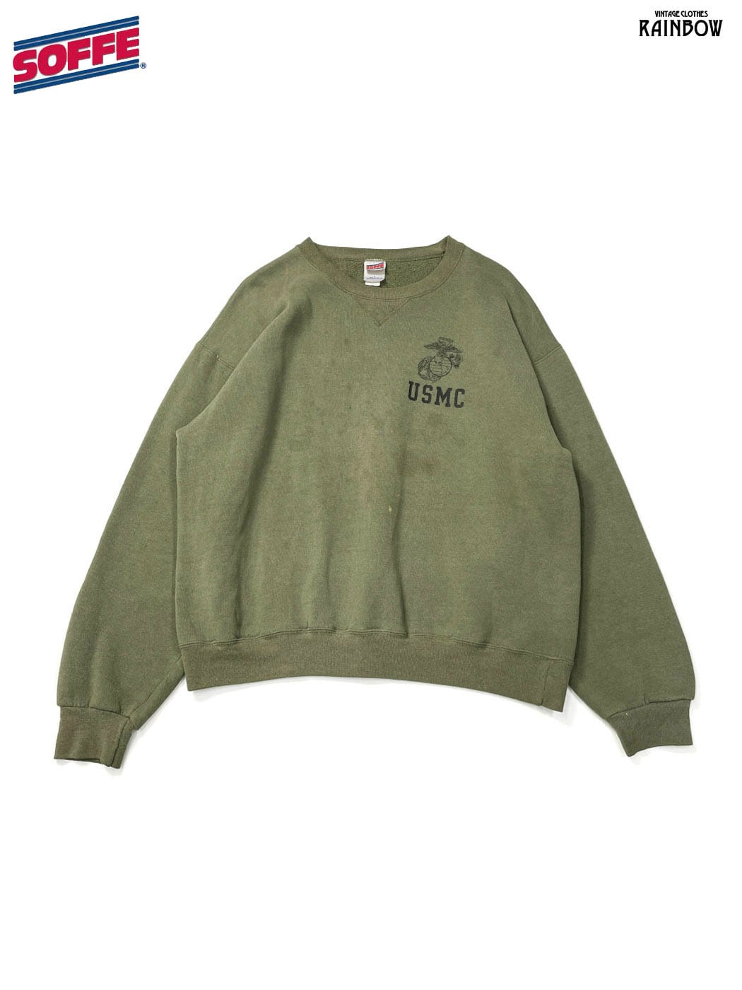 #トップス #スウェット #トレーナー #ロングスリーブ #緑 #カーキ #ロゴデザイン #USMC #アメリカ製 #スウェット地 #ロゴスウェット