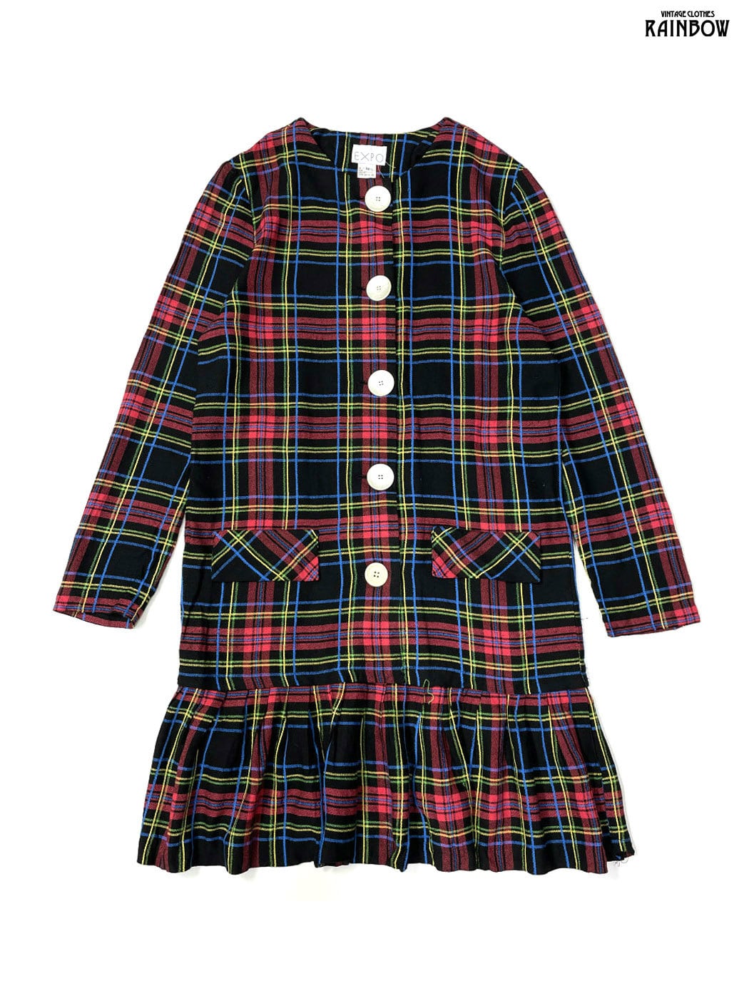 #ワンピース #ロングスリーブ #膝丈 #赤 #紺 #チェック柄 #アメリカ製 #レーヨン #長袖チェック柄ワンピース
