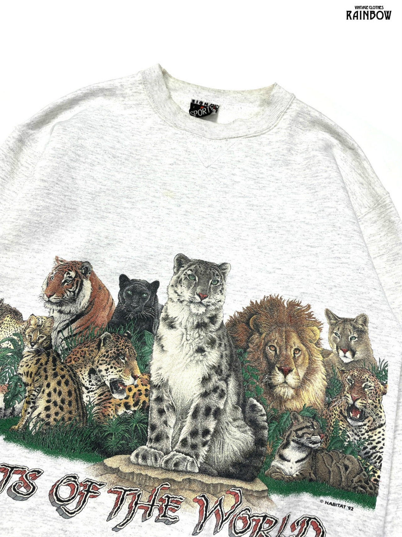 古着 SIGNAL SPORTS CATS OF THE WORLD アメリカ製 プリント アニマル バックプリント 長袖 スウェット トレーナー ライト グレー (ttu2510049) | 古着屋RAINBOW