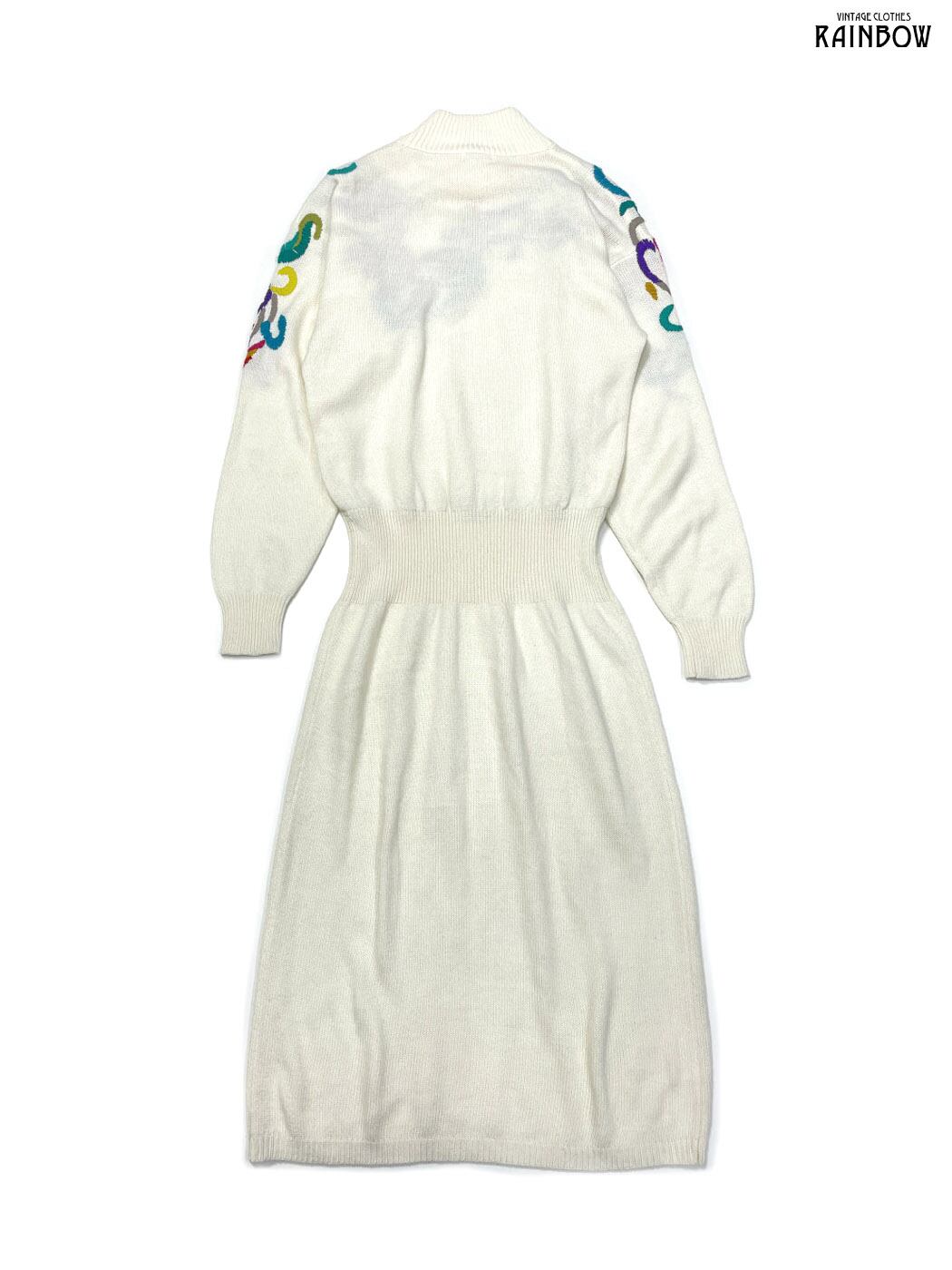 #ワンピース #ロングスリーブ #ロング丈 #ストレート #タイト #白 #生成り #花柄 #無地 #刺繍 #ハイネック #ガーリー #ニット地 #刺繍ワンピース