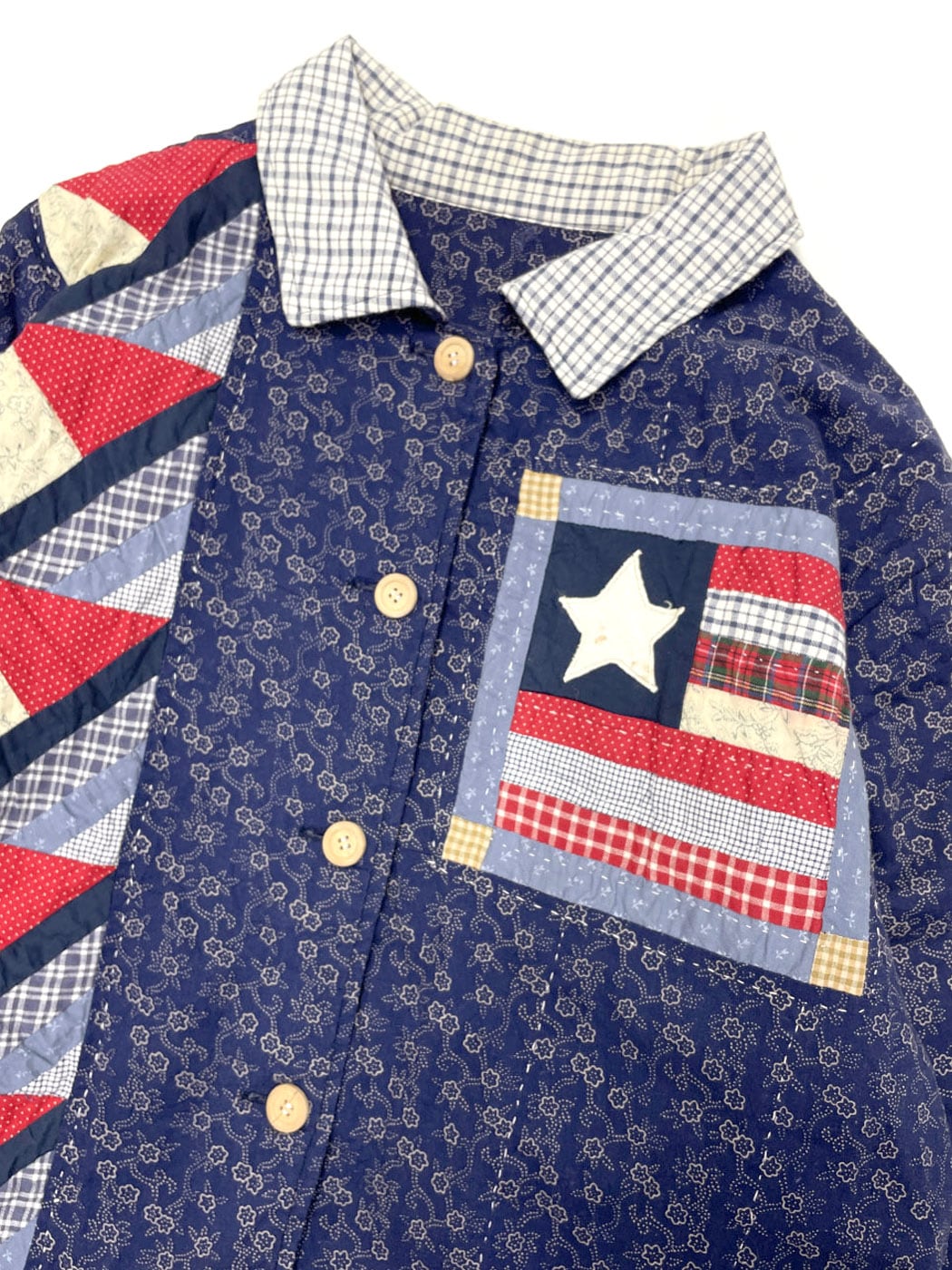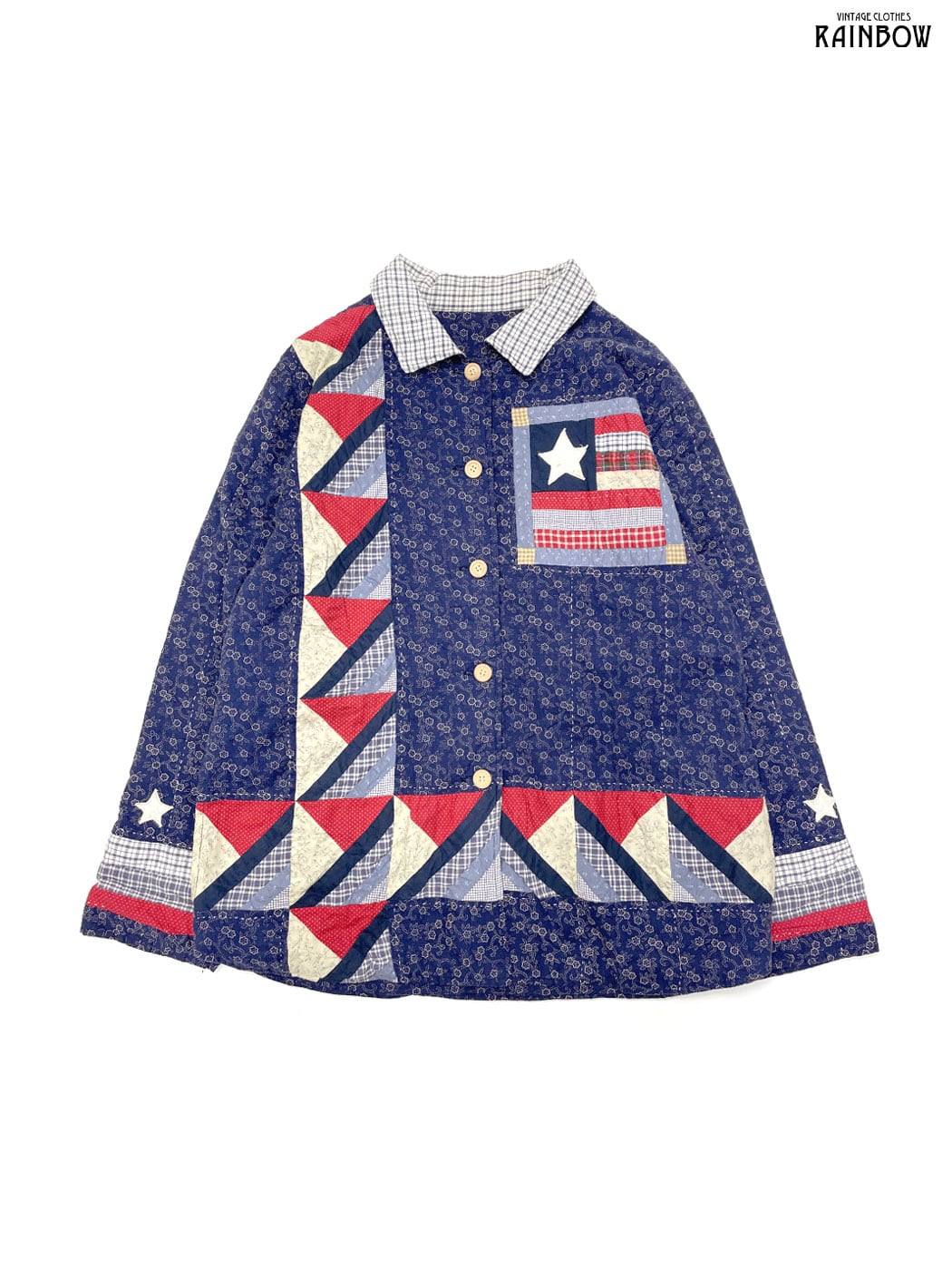 #アウター #ライトジャケット #ロングスリーブ #赤 #紺 #花柄 #総柄 #星 #刺繍 #前開き #リバーシブル #パッチワーク #ヴィンテージ #コットン #柄ライトジャケット