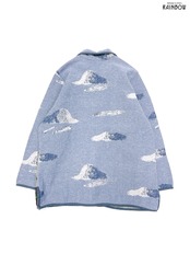#アウター #ライトジャケット #ロングスリーブ #青 #水色 #総柄 #家 #街並み #馬 #前開き #コブラン織り #ヴィンテージ #コットン #柄ライトジャケット