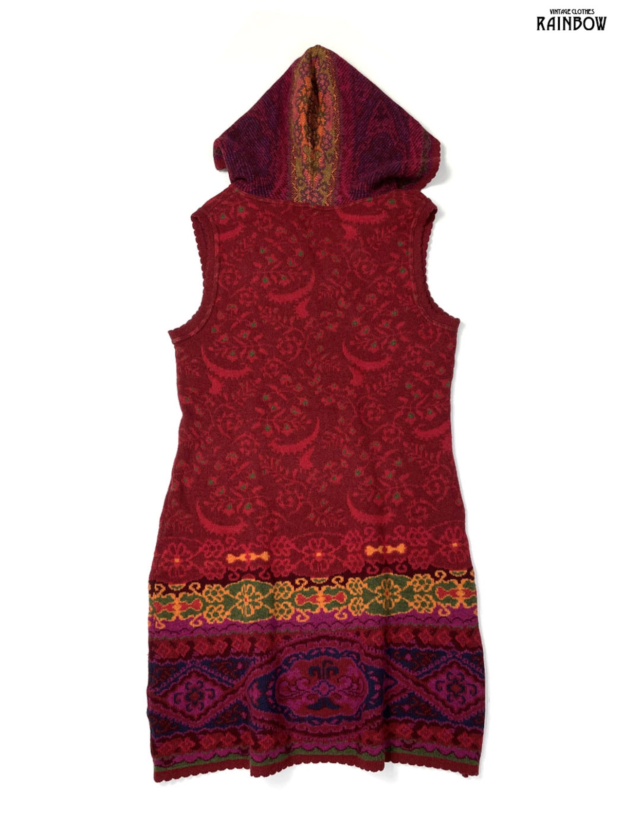 #ワンピース #ノースリーブ #膝丈 #赤 #ボルドー #総柄 #クラシック #ニット地 #ニットワンピース