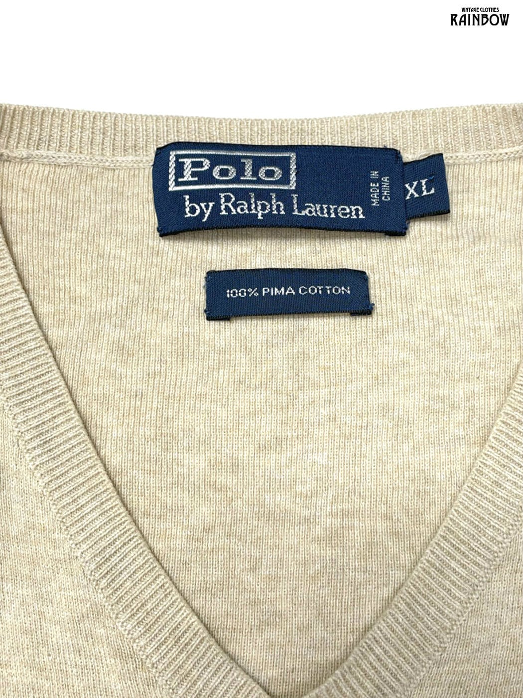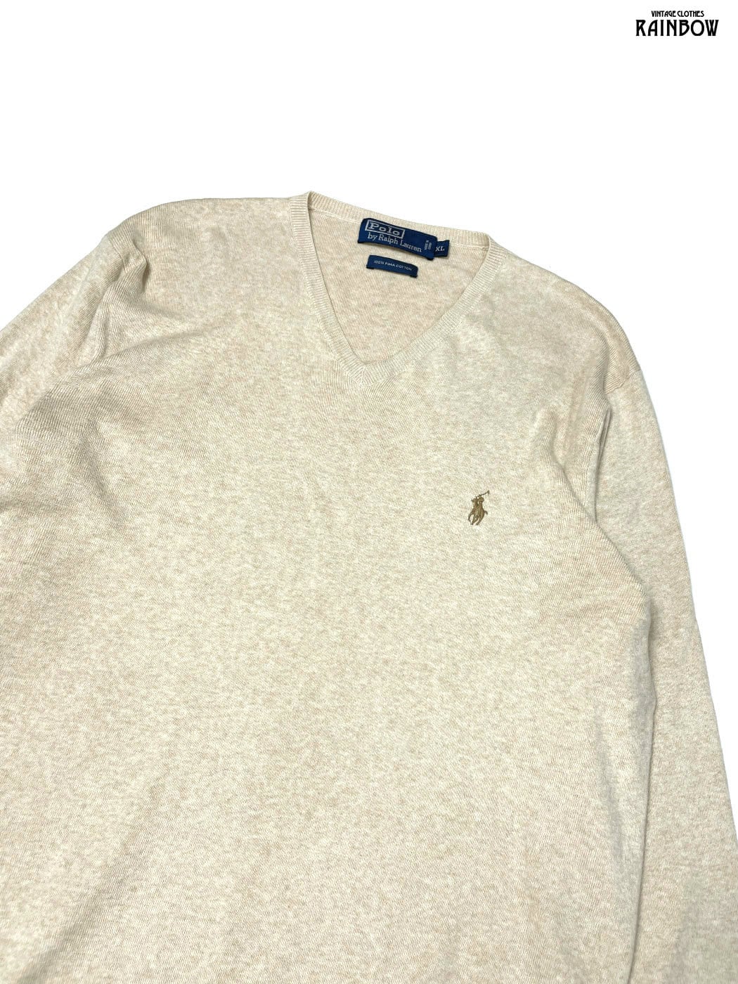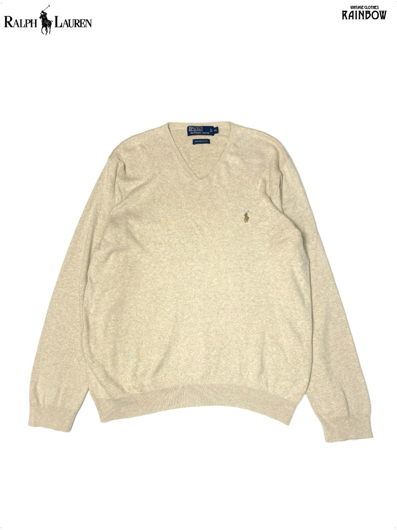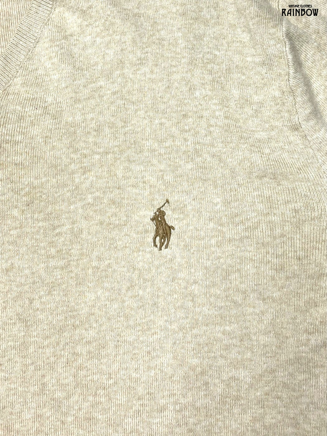 古着 Polo by Ralph Lauren ポロバイラルフローレン 刺繍 無地 ワンポイント コットン100% 長袖 ニット セーター ベージュ (ttu2510078) | 古着屋RAINBOW