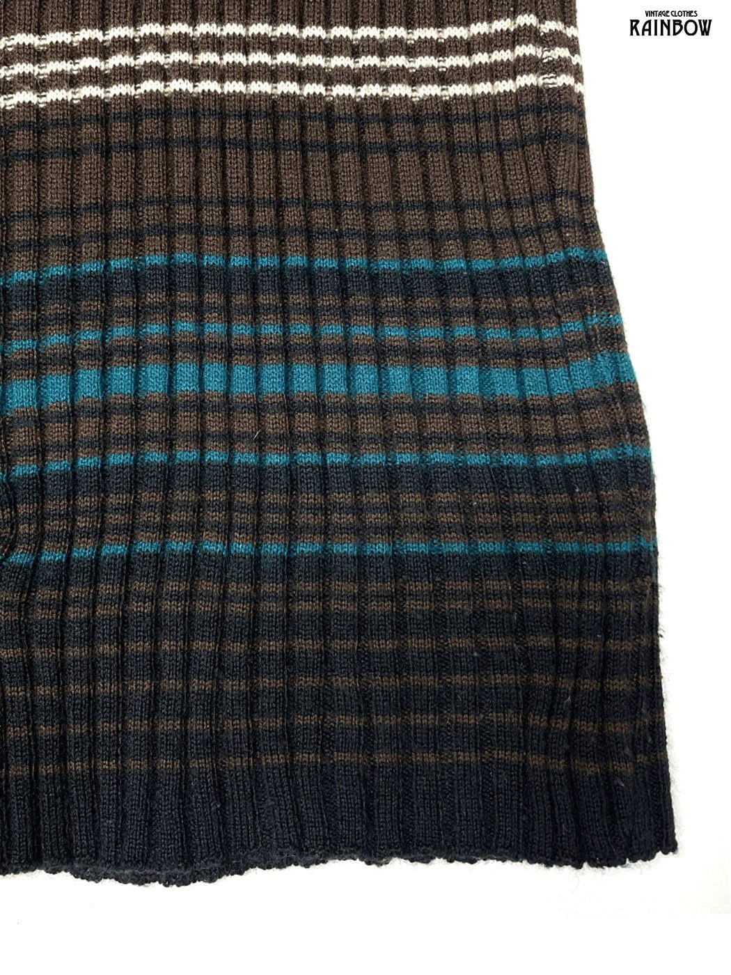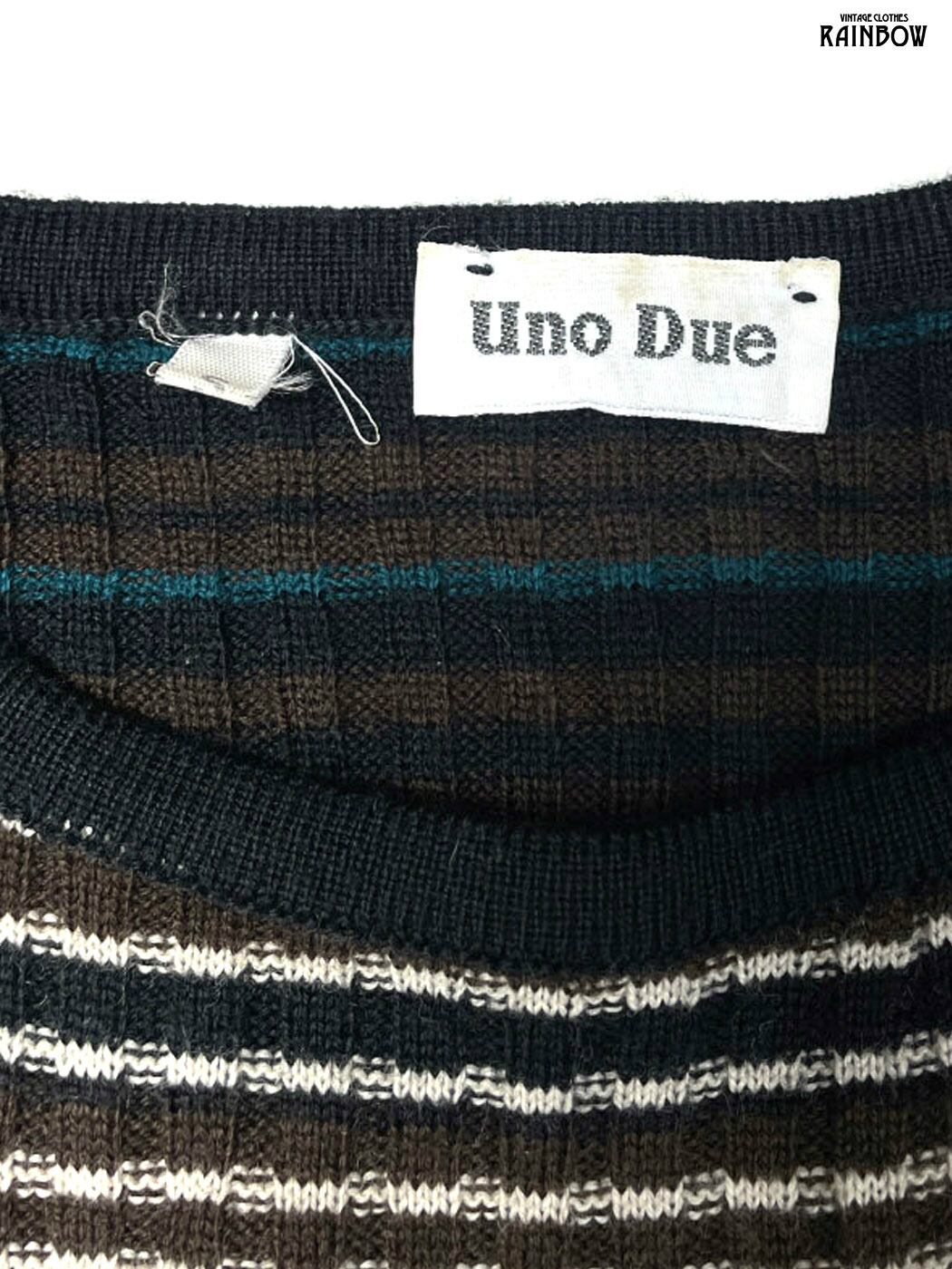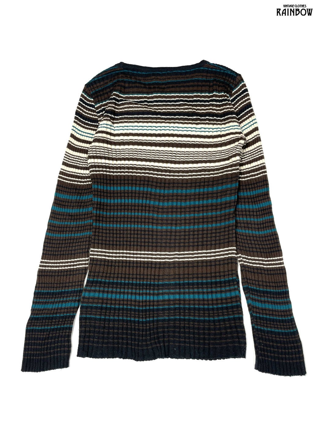 #ニット #セーター #ロングスリーブ #茶 #ボーダー柄 #イタリア製 #メリノウール #柄セーター