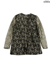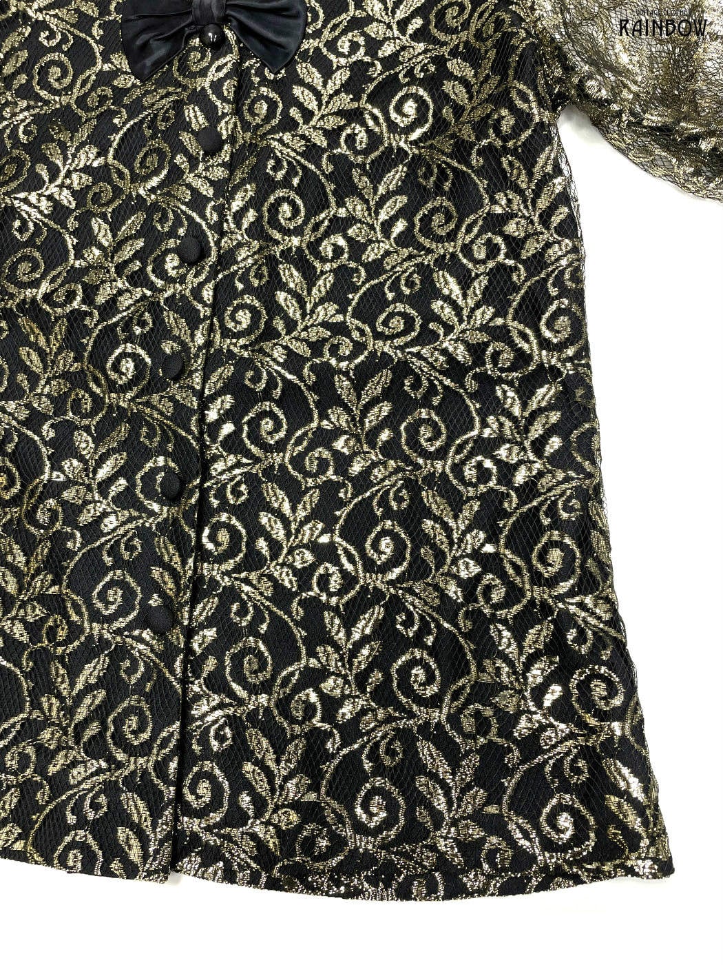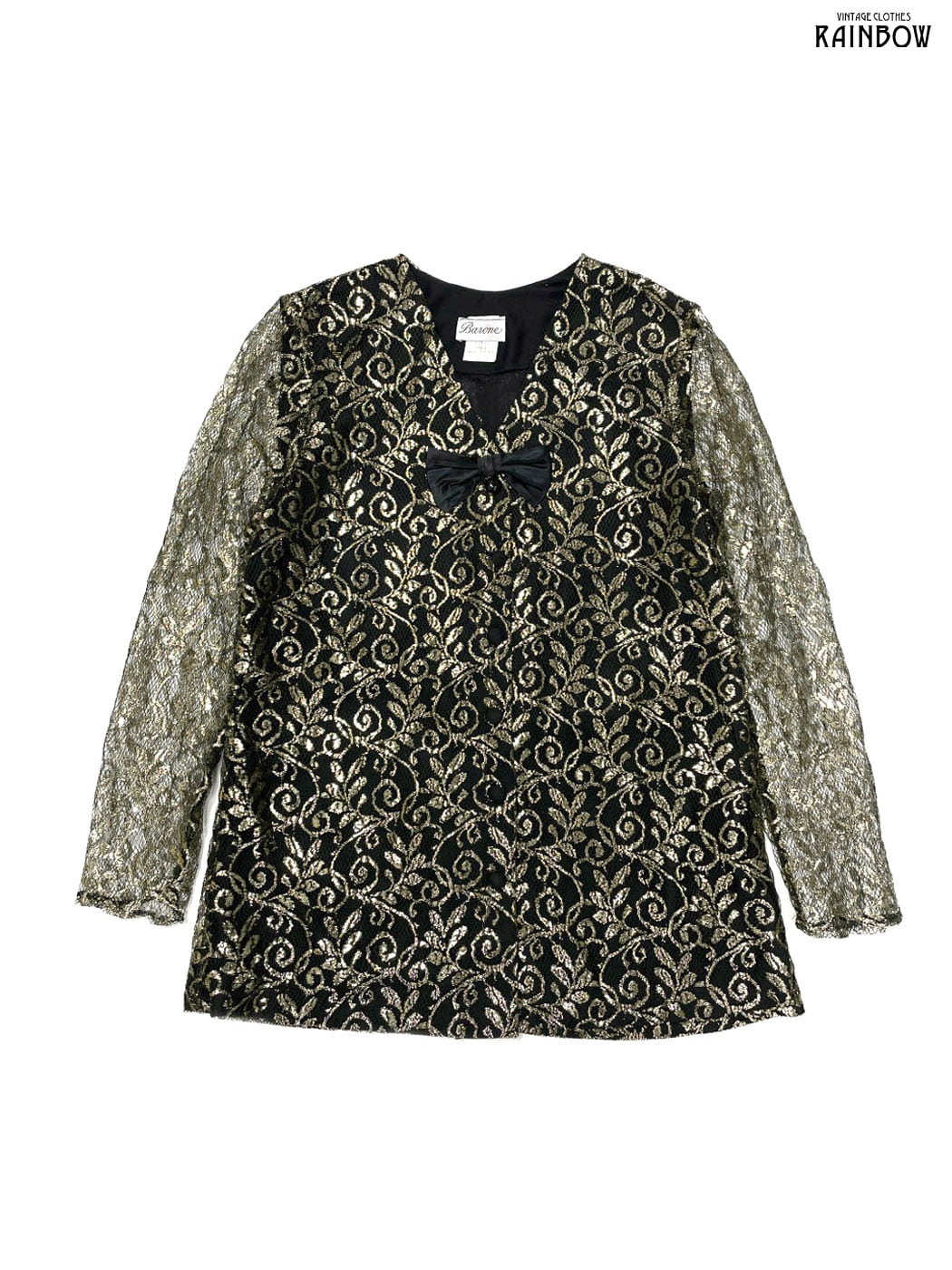 #ブラウス #bブラウス #ロングスリーブ #黒 #ゴールド #総柄 #アメリカ製#リボン #レース #前開き #ヴィンテージ #レースシャツ