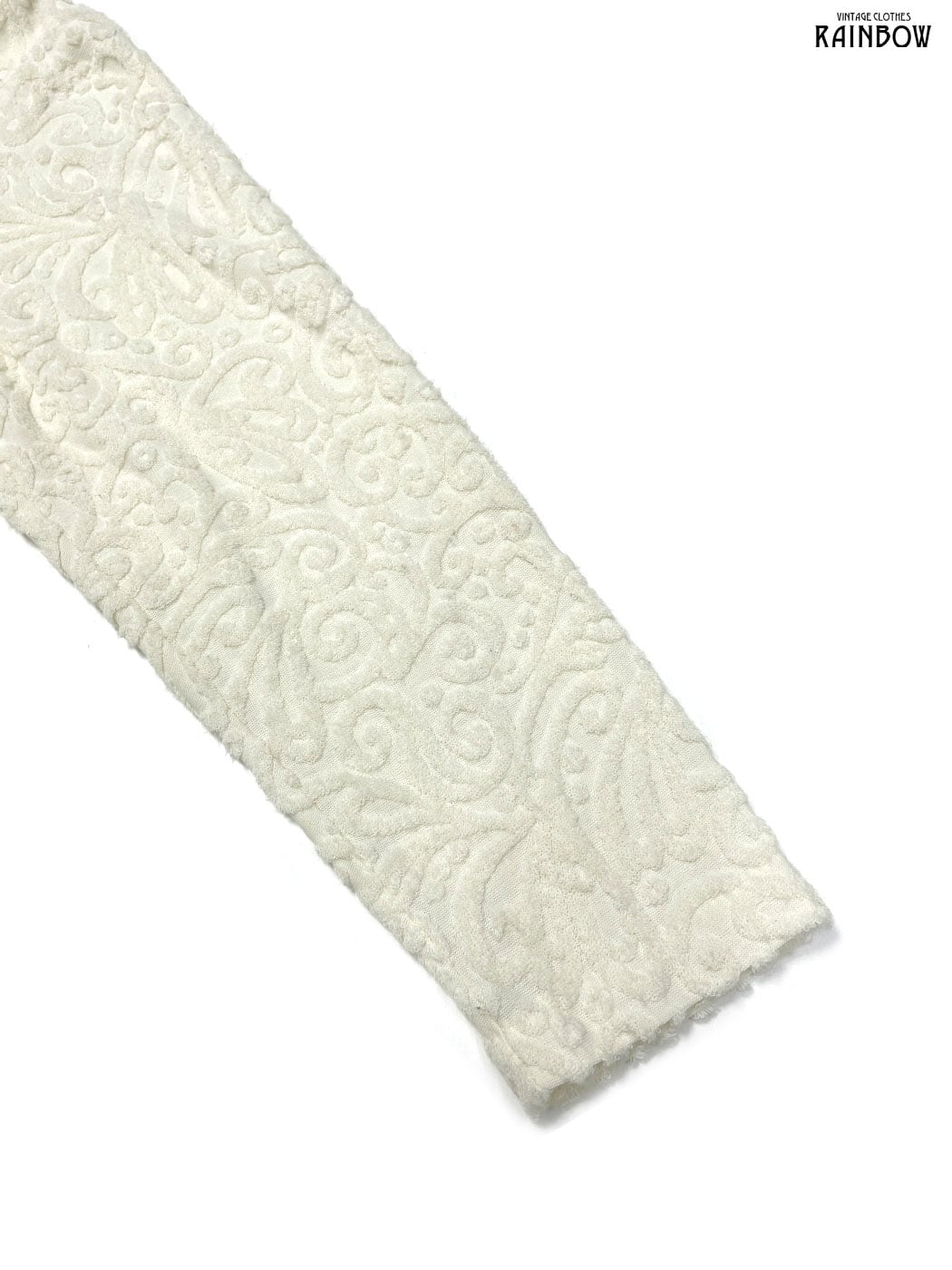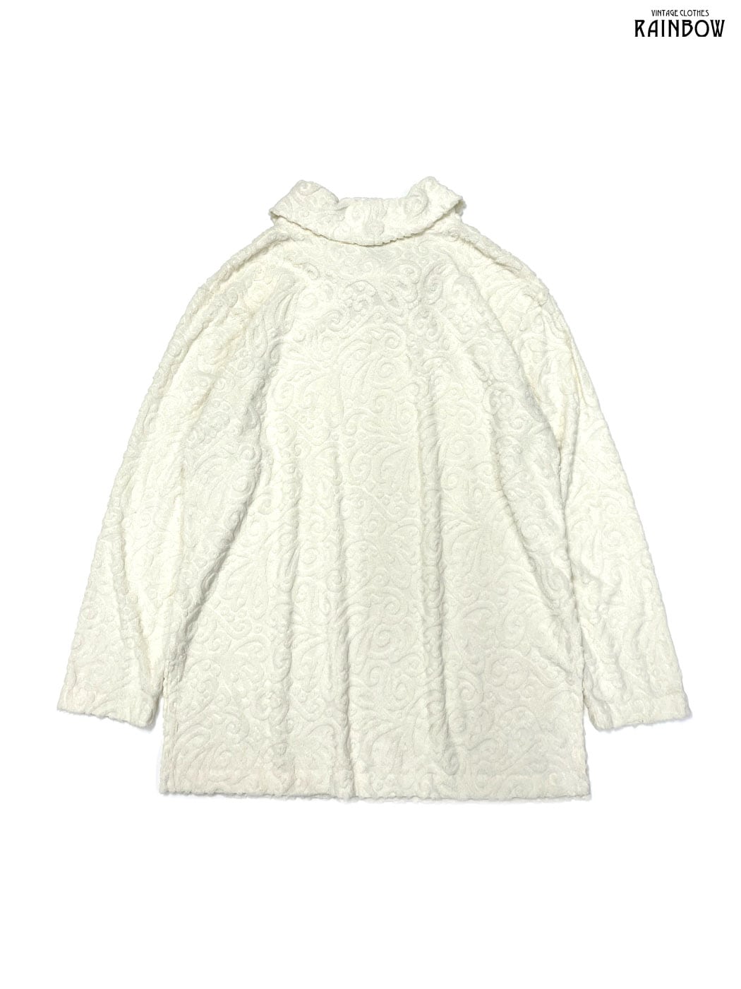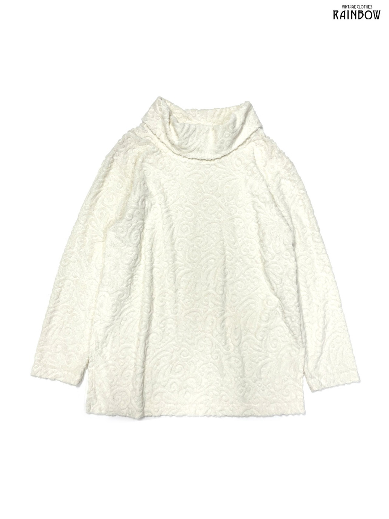 #トップス #プルオーバー #ロングスリーブ #白 #生成り #総柄 #アメリカ製 #スリット #ハイネック #ガーリー #ヴィンテージ #長袖柄プルオーバー