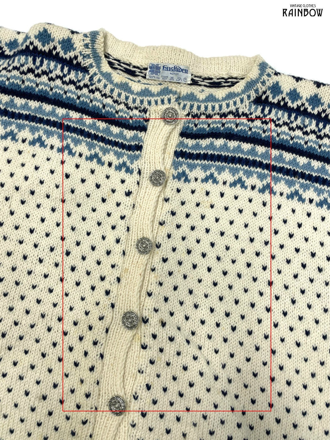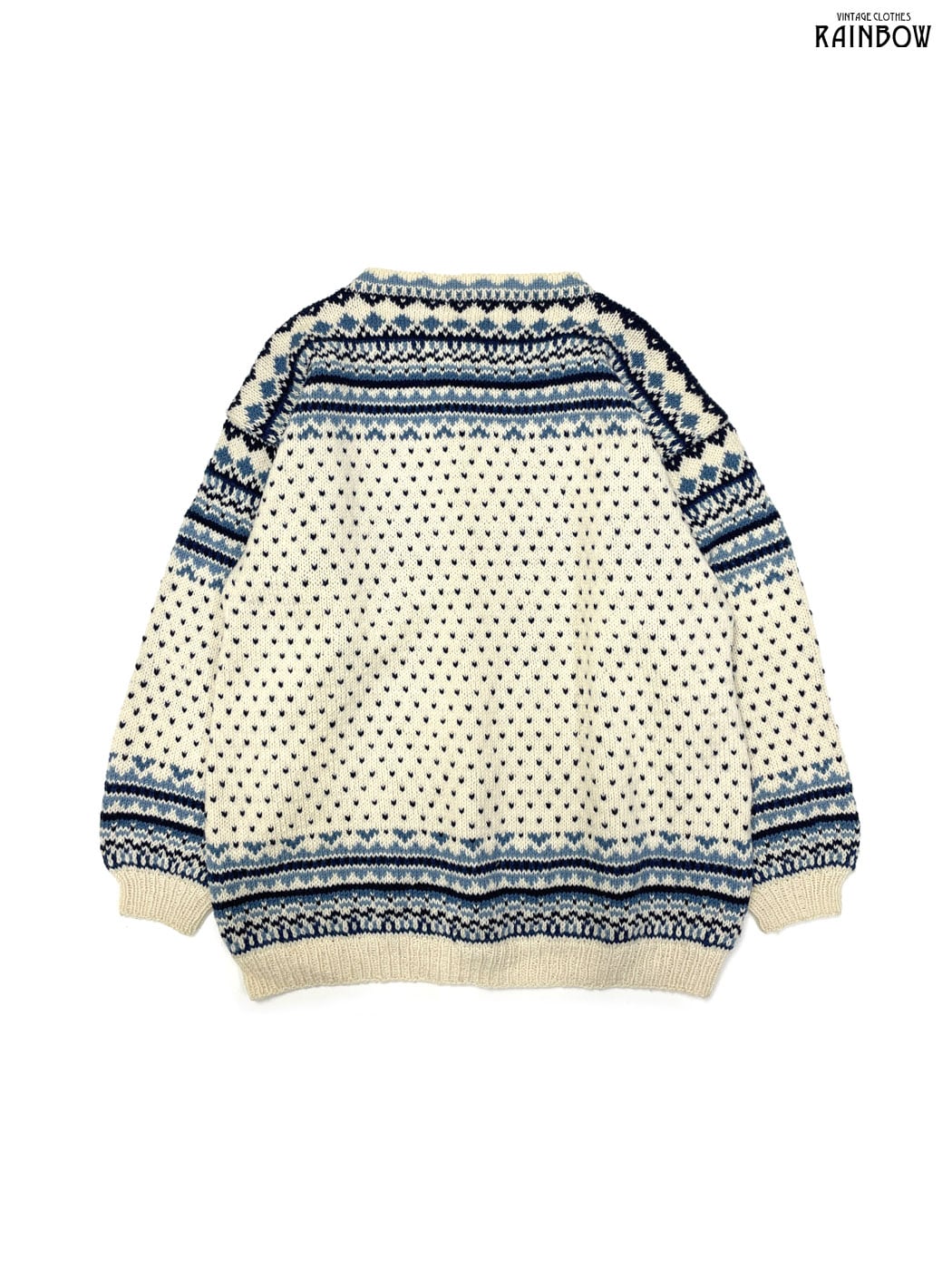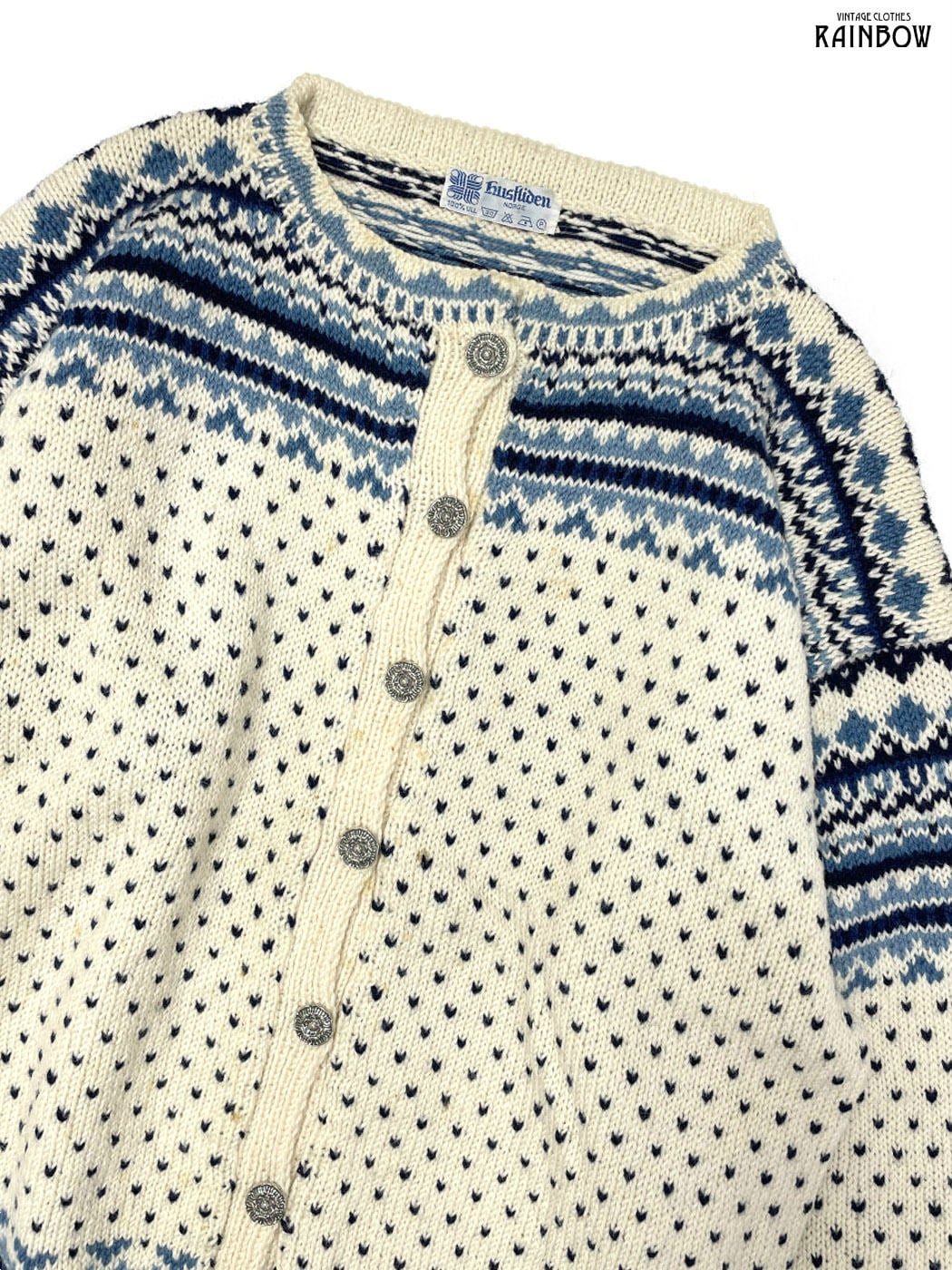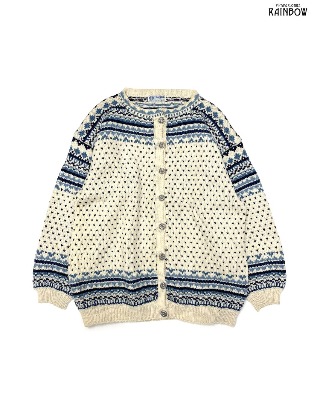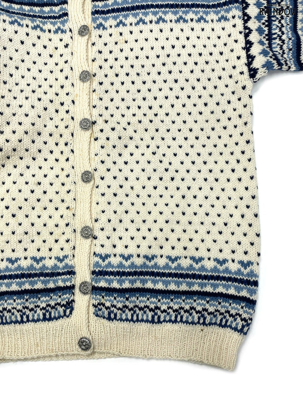 #ニット #カーディガン #ロングスリーブ #白 #青 #生成り #総柄 #ノルディック柄 #前開き #ガーリー #ヴィンテージ #ウール #ノルディック柄ニット