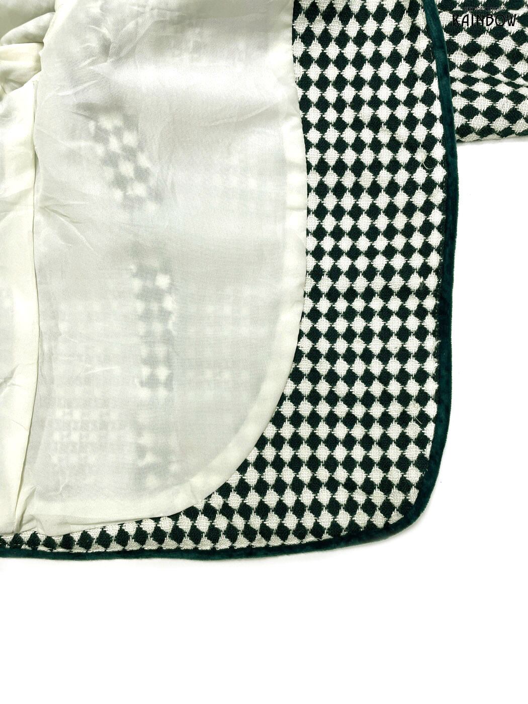 #アウター #ヘビージャケット #ロングスリーブ #白 #緑 #総柄 #ダイヤ柄 #アメリカ製 #前開き #クラシック #ウール #レーヨン #ウールジャケット