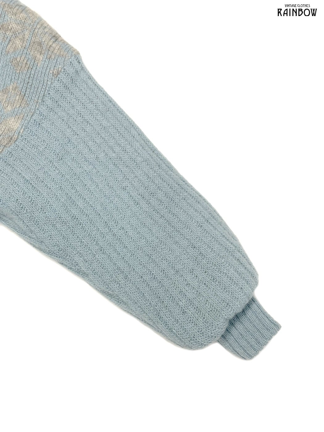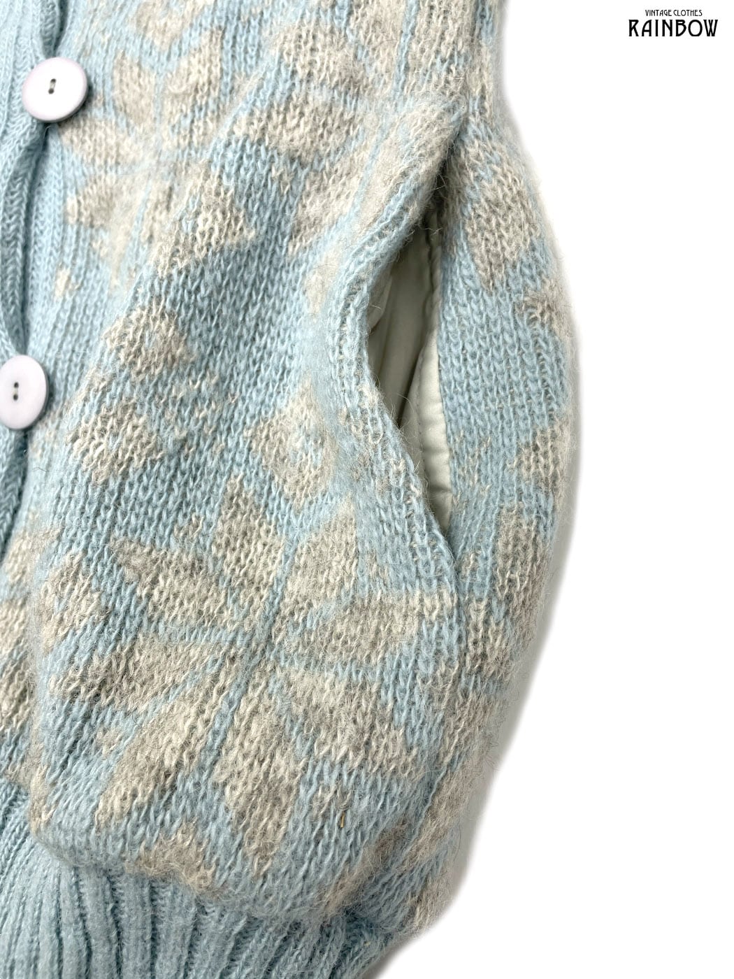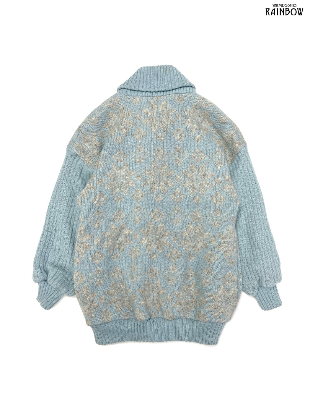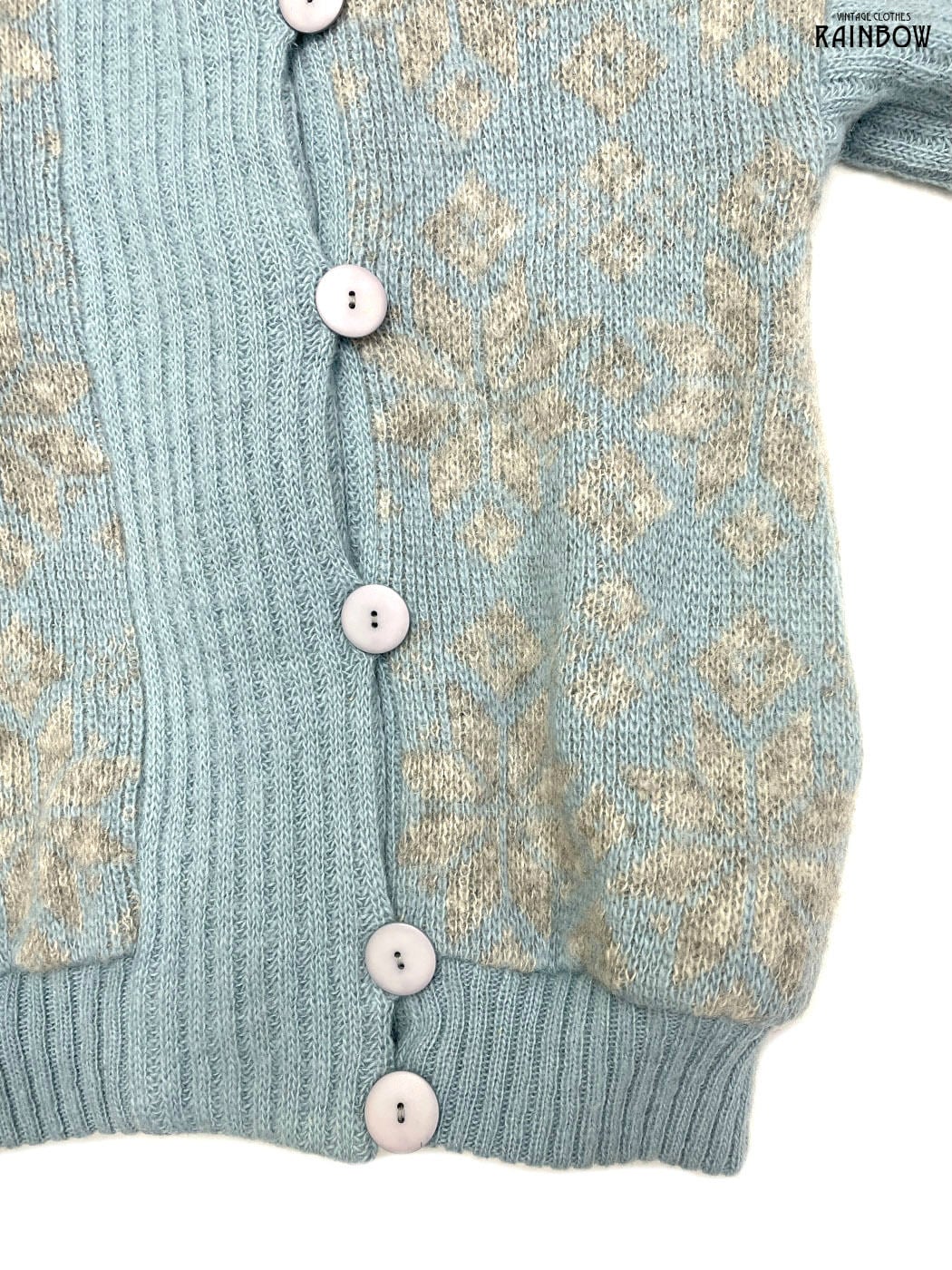 #ニット #ニットアウター #ロングスリーブ #青 #水色 #総柄 #ノルディック柄 #前開き #アイスランド製 #ガーリー #ヴィンテージ #ウール #ピュアウール #ニットアウター