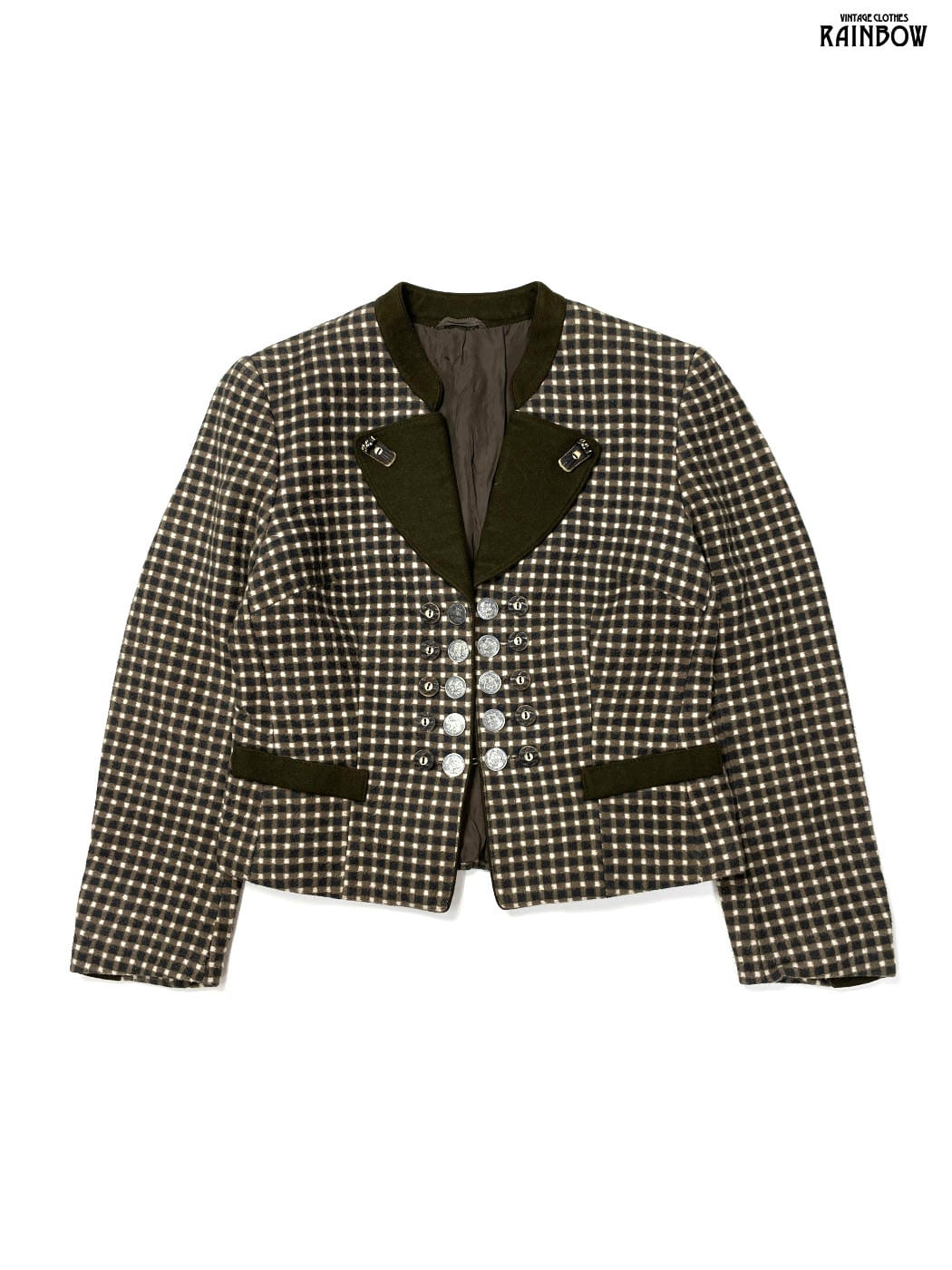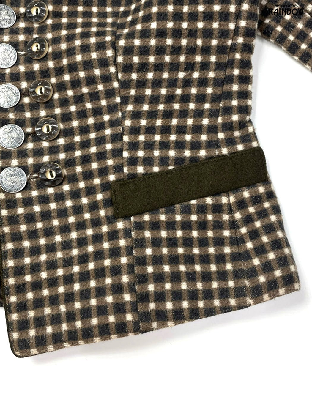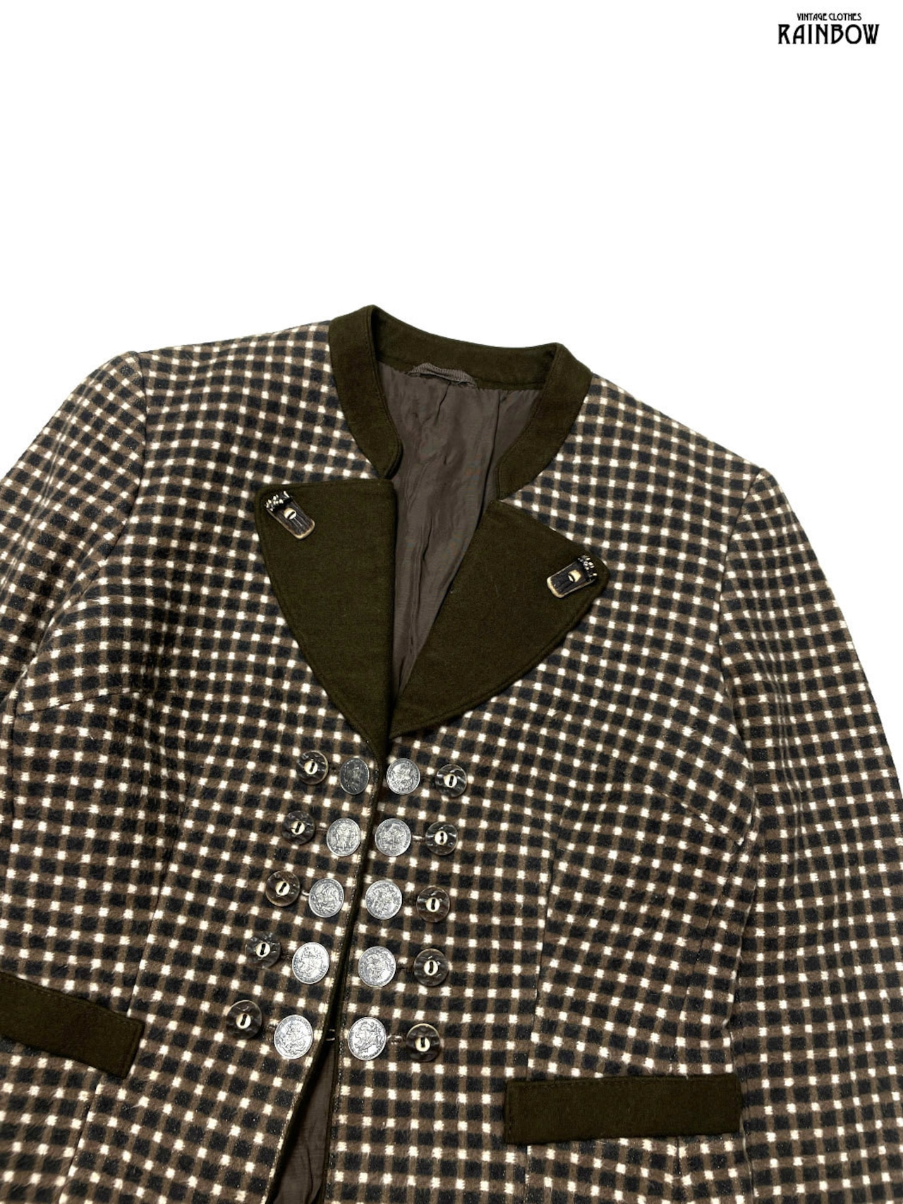 #アウター #ライトジャケット #ロングスリーブ #茶 #チェック柄 #オーストリア製 #ウール #柄ライトジャケット