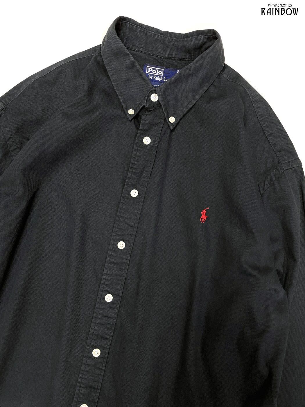 古着 Polo by Ralph Lauren ポロバイラルフローレン 刺繍 前開き 無地 ワンポイント ブランドロゴ コットン100% 長袖 シャツ 黒 (ttu2510135) | 古着屋RAINBOW