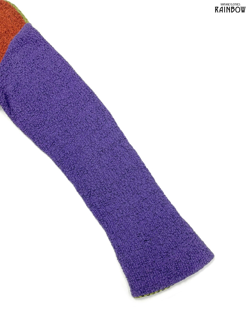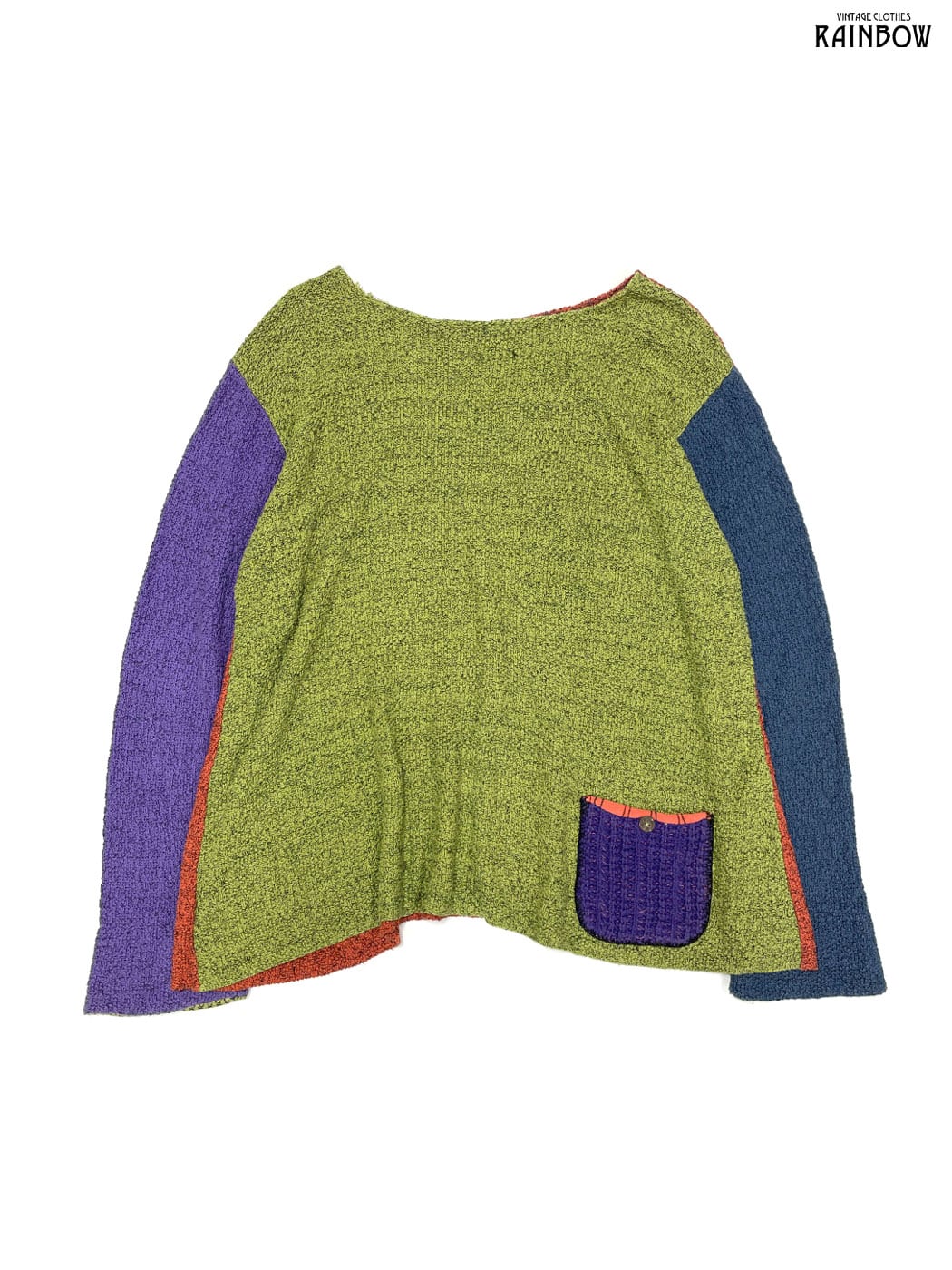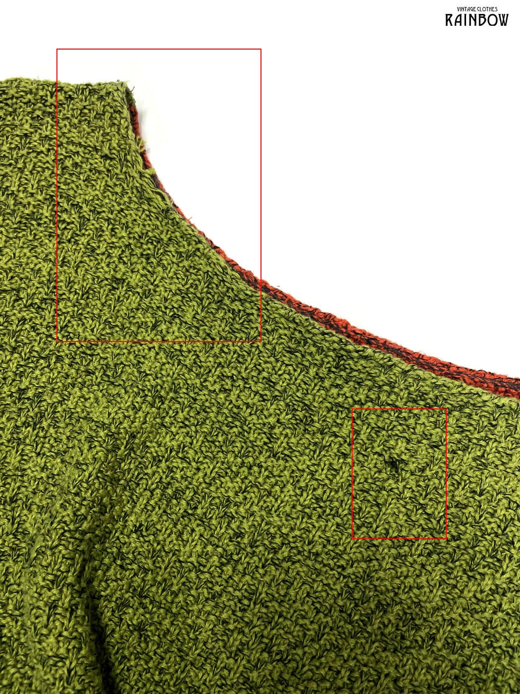 #ニット #セーター #ロングスリーブ #オレンジ #緑 #無地 #アメリカ製 #かぎ編み #カラーブロック #ヴィンテージ #コットン #無地セーター