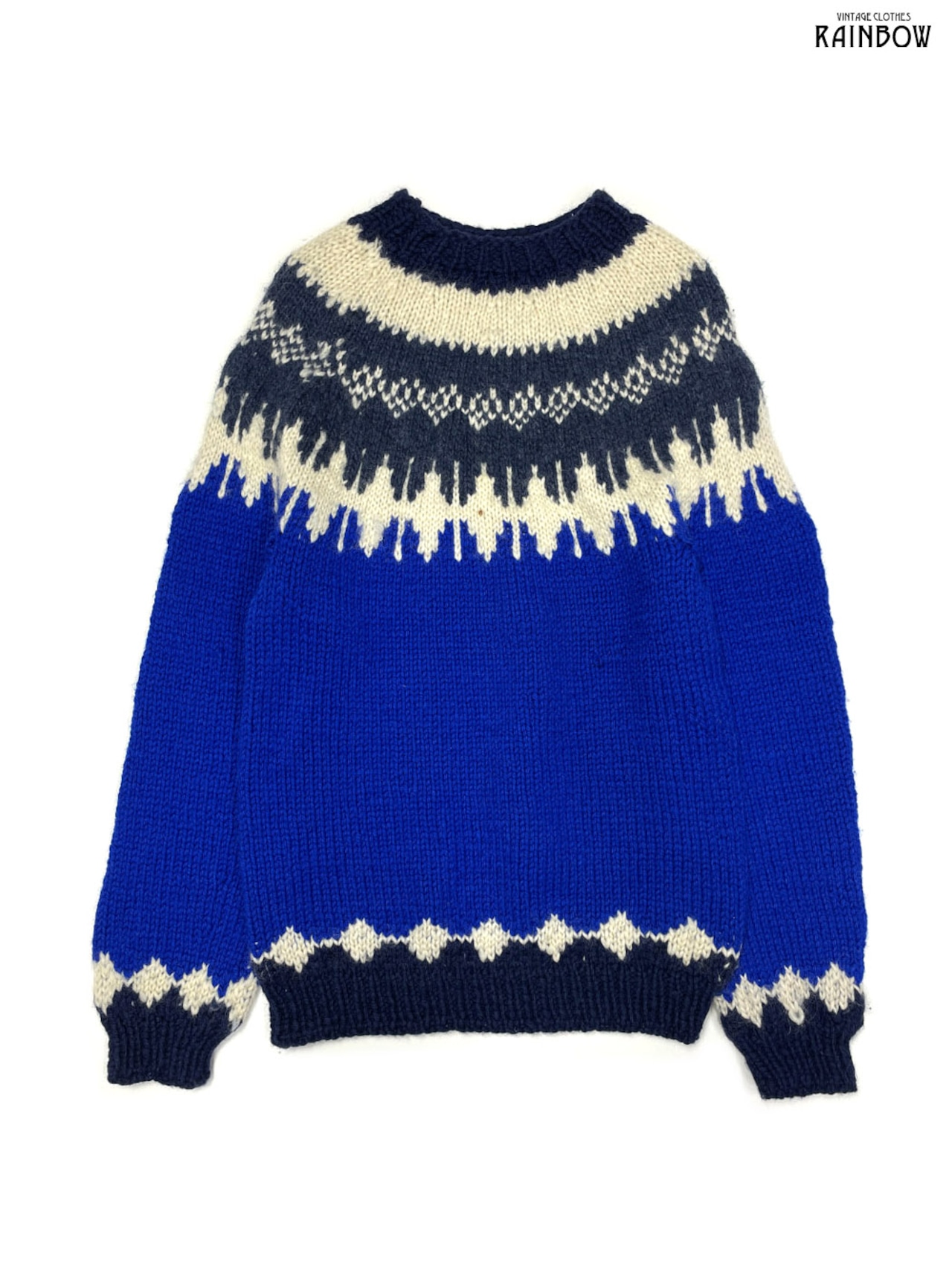 #ニット #セーター #ロングスリーブ #白 #青 #紺 #総柄 #ノルディック柄 #クラシック #ヴィンテージ #ウール #ノルディック柄ニット