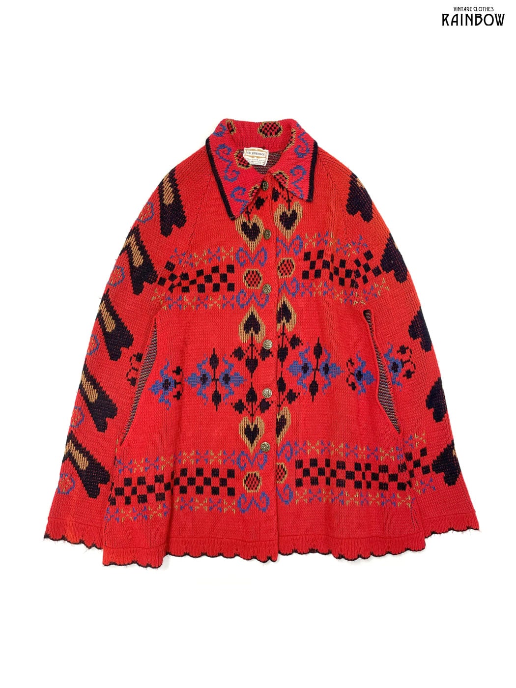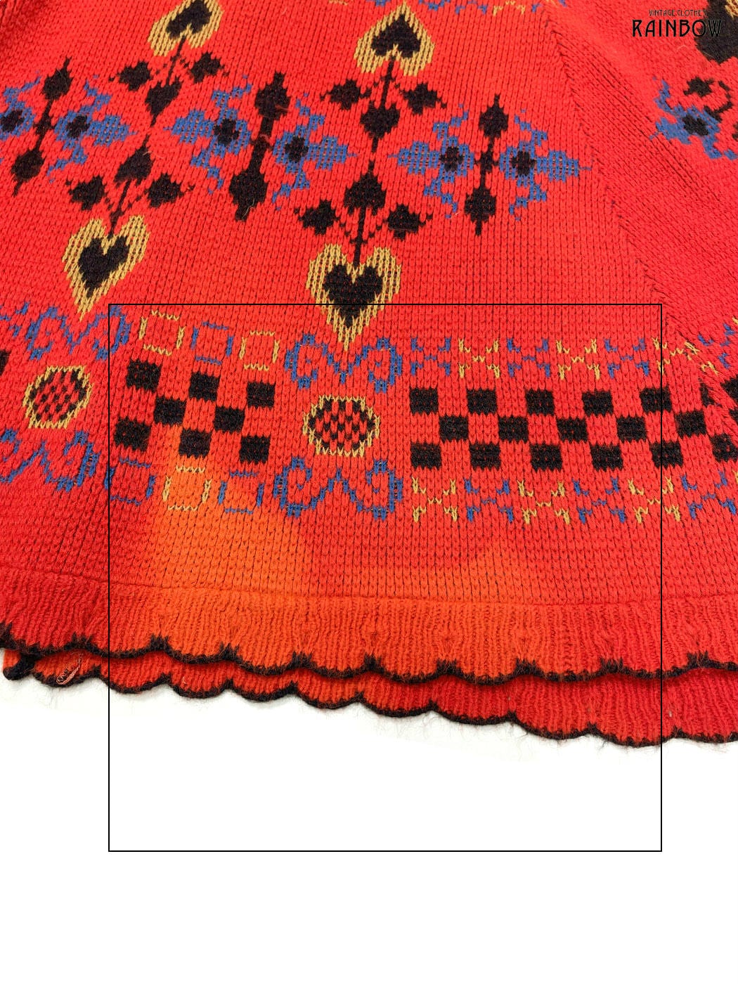 #ニット #ニットアウター #ロングスリーブ #赤 #総柄 #前開き #ガーリー #ヴィンテージ #ニット地 #ニットアウター