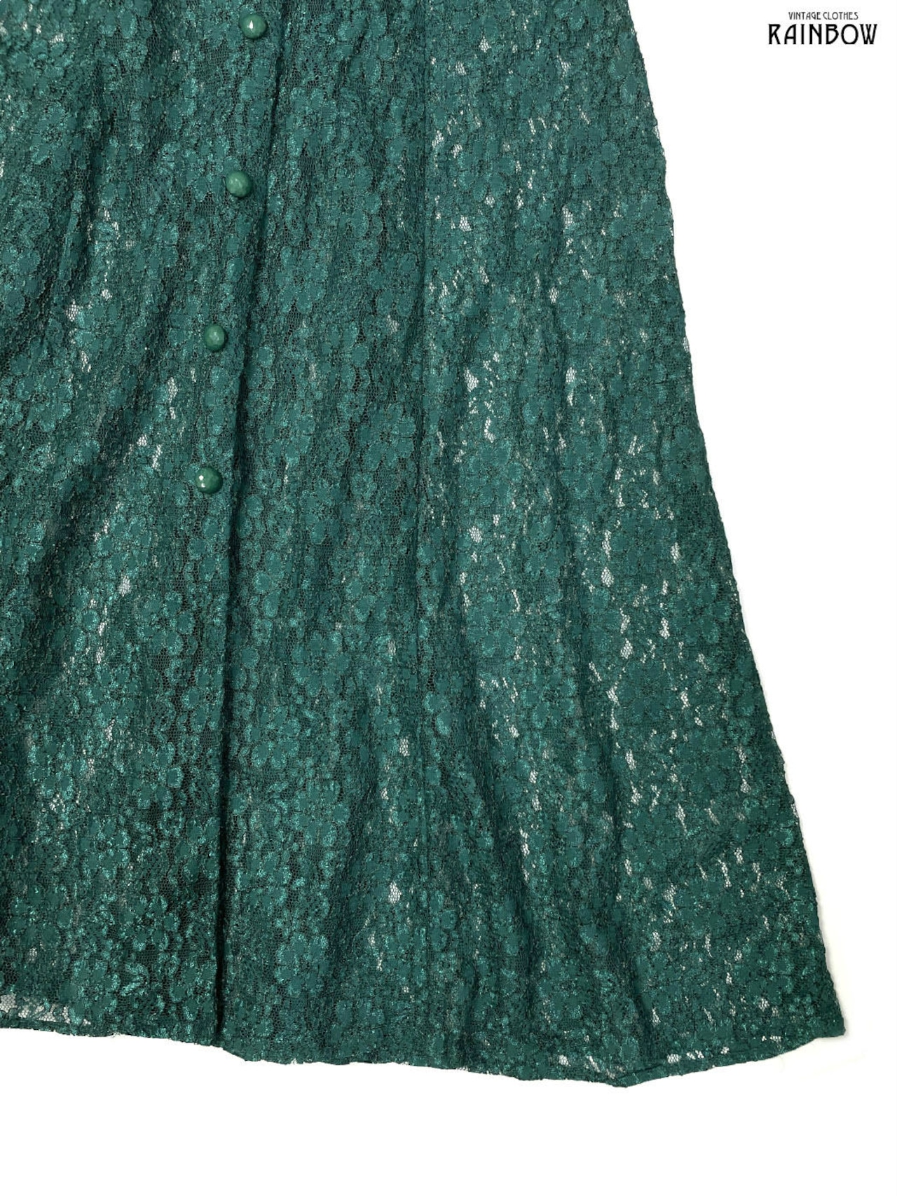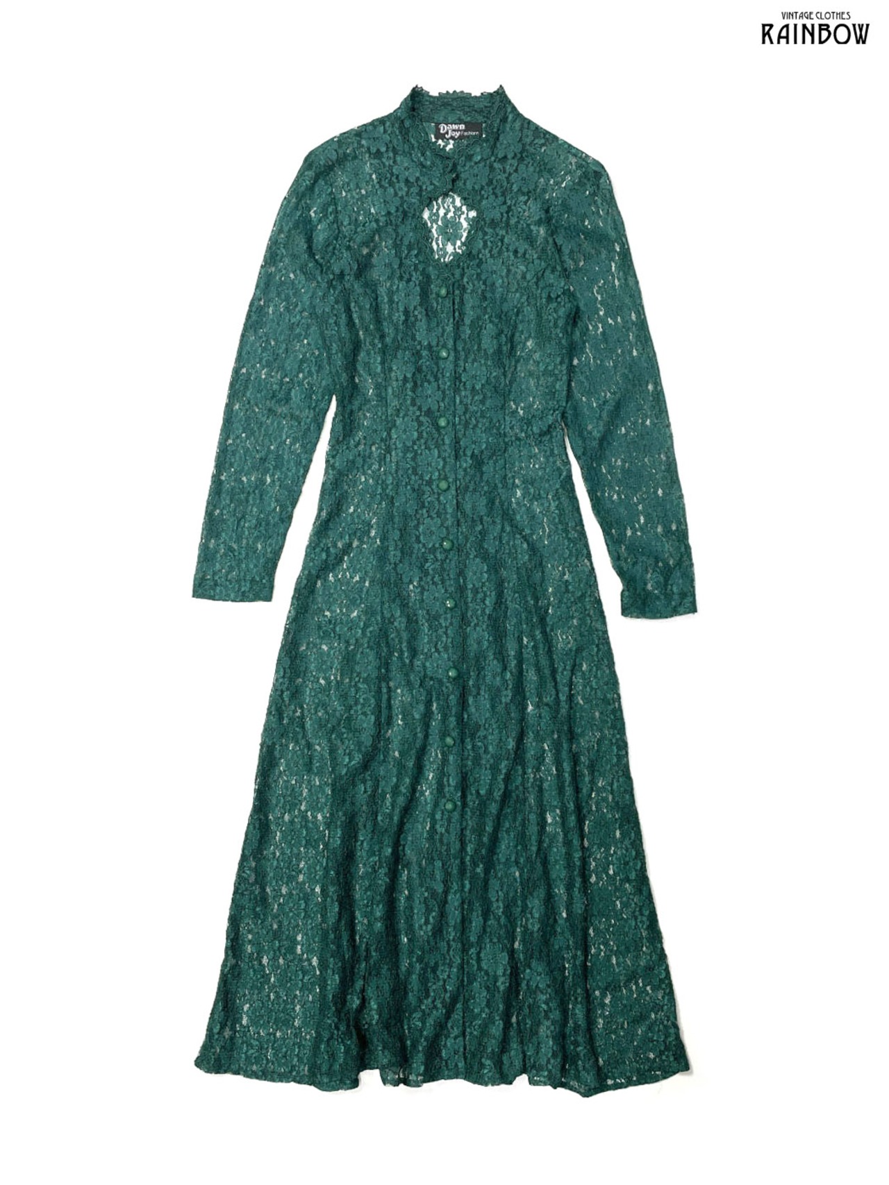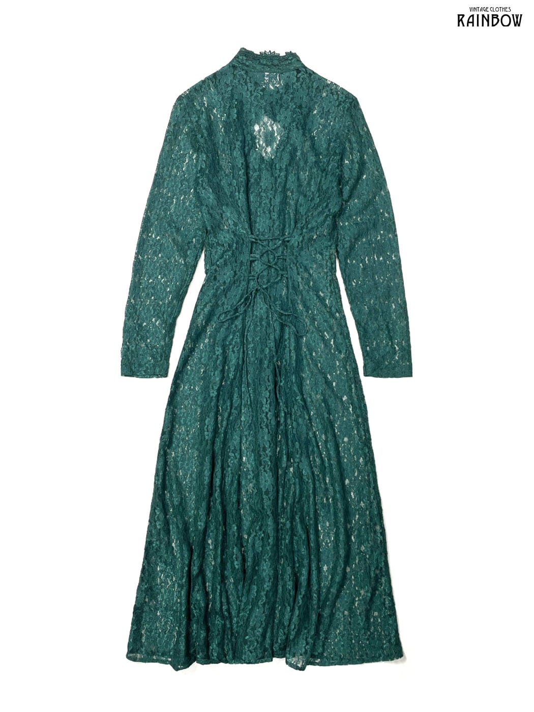 #ワンピース #ロングスリーブ #ロング丈 #フレア #緑 #花柄 #編み上げ #リボン #レース #前開き #クラシック #ヴィンテージ #総レース #総レースワンピース