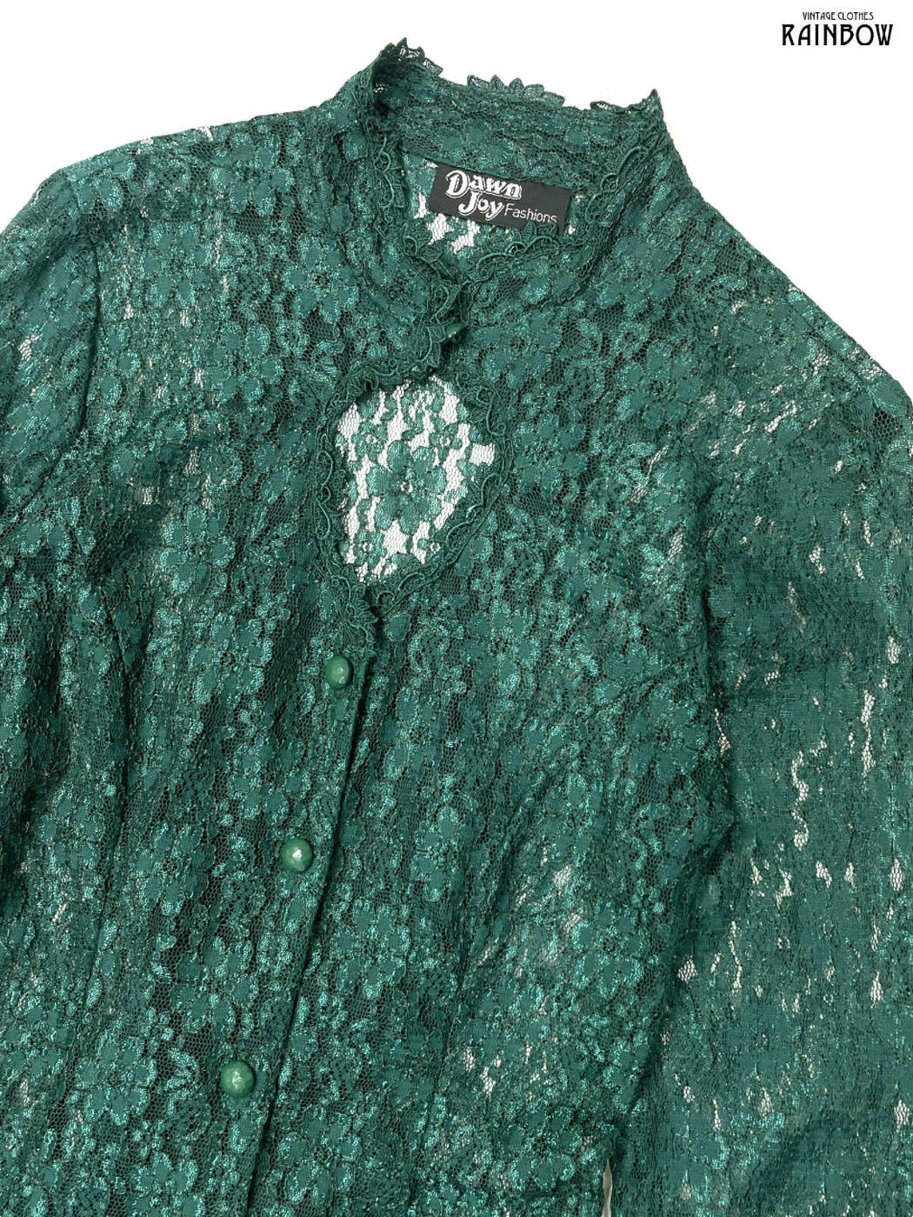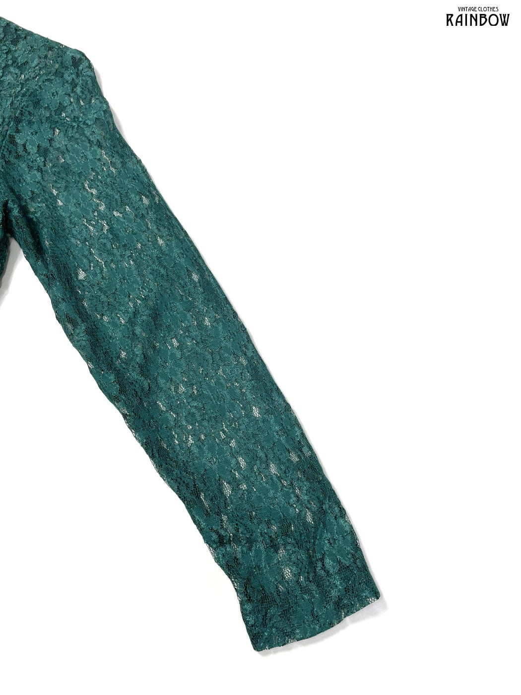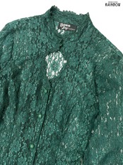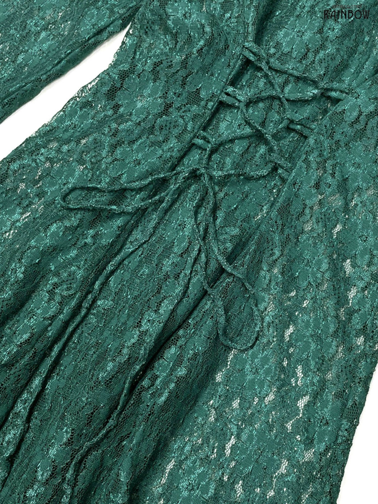 #ワンピース #ロングスリーブ #ロング丈 #フレア #緑 #花柄 #編み上げ #リボン #レース #前開き #クラシック #ヴィンテージ #総レース #総レースワンピース