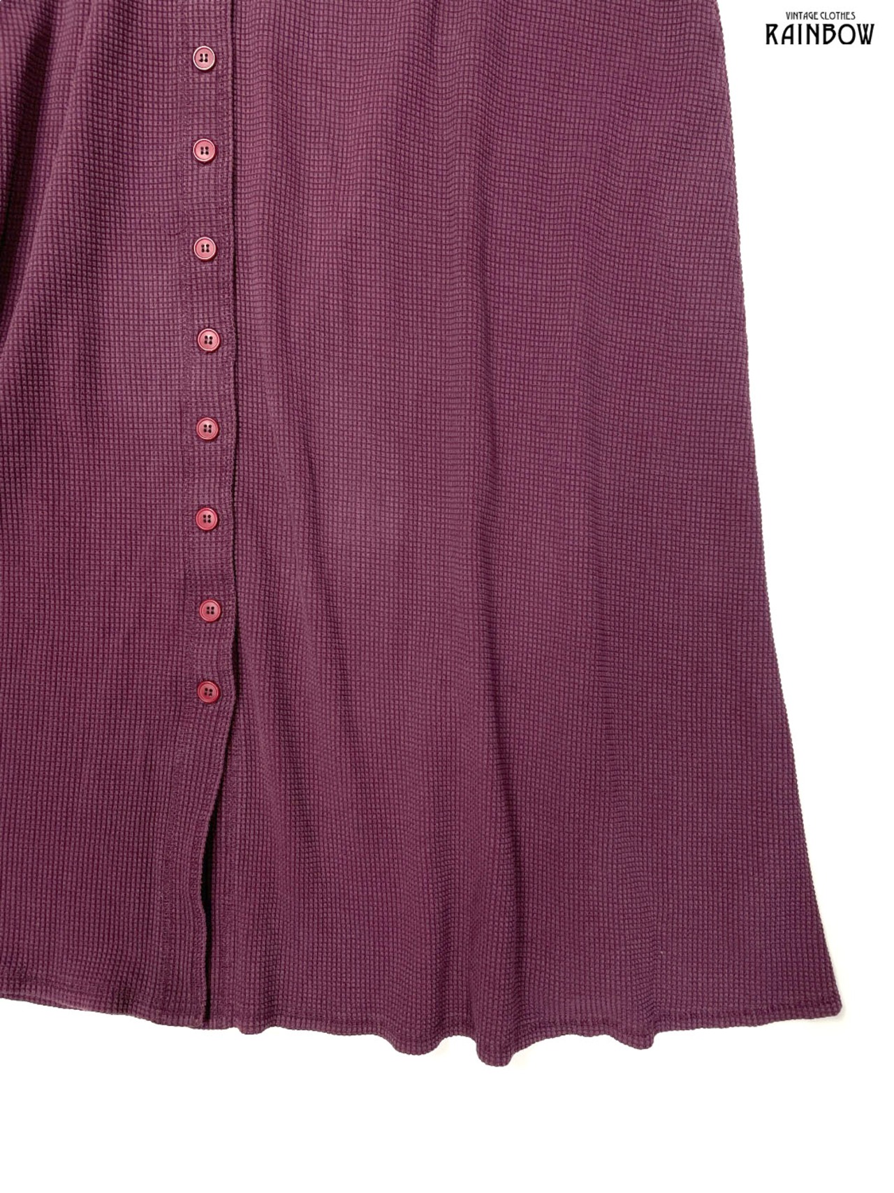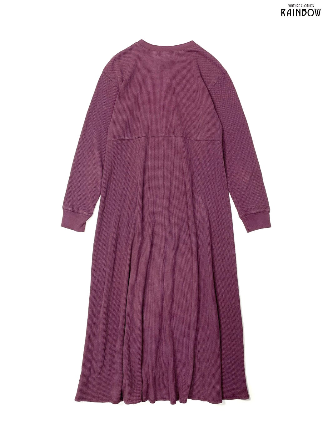 #ワンピース #ロングスリーブ #ロング丈 #フレア #バスト切り替え #紫 #ボルドー #無地 #前開き #ワッフル #シック #コットン #長袖無地ワンピース
