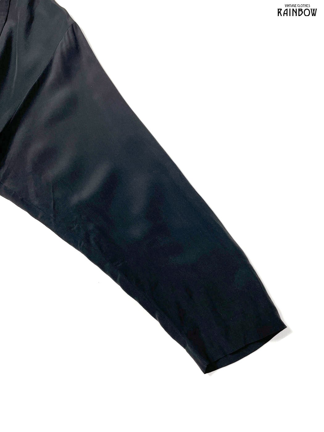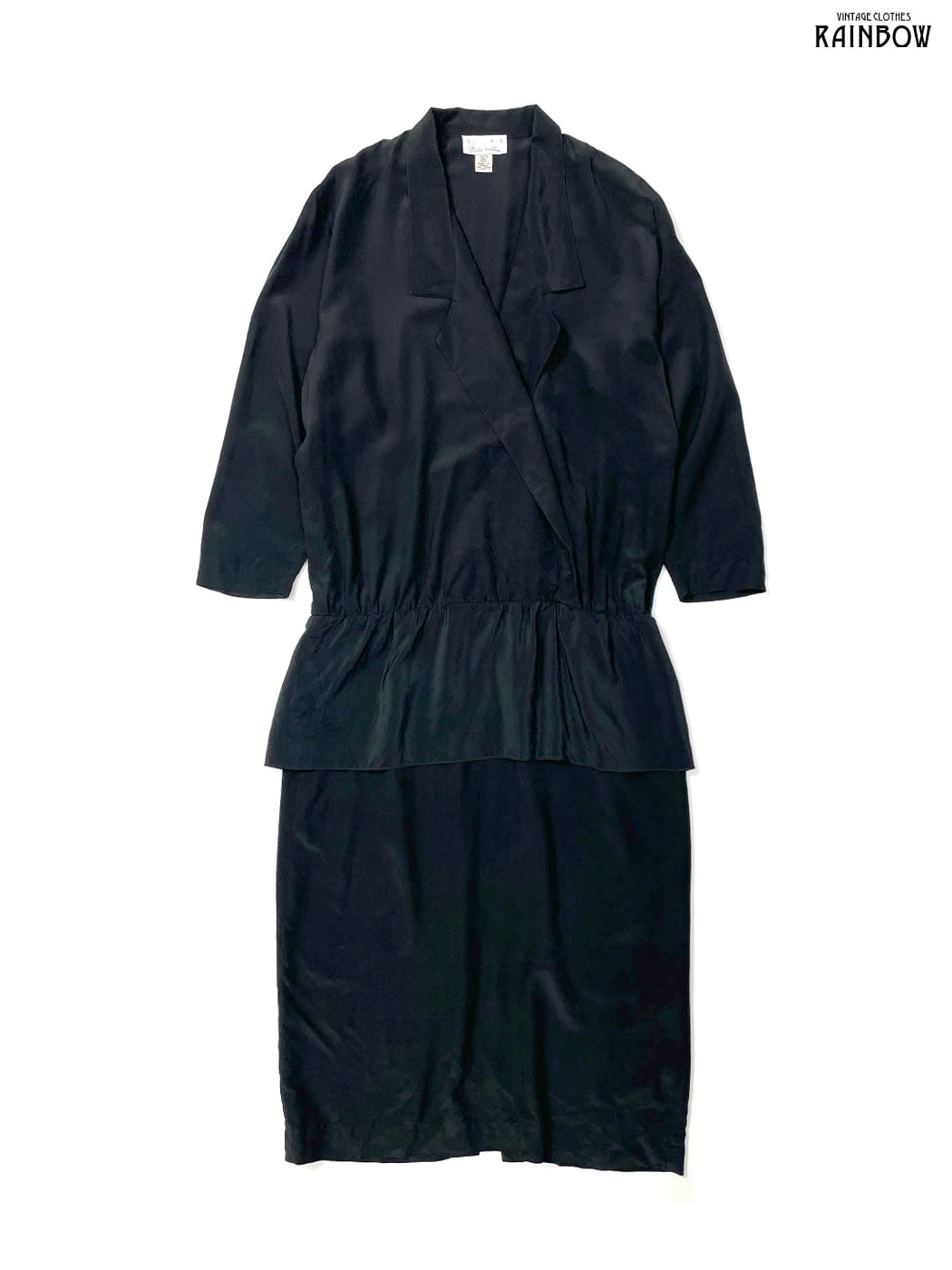 #ワンピース #ロングスリーブ #ロング丈 #ストレート #ウエスト切り替え #黒 #無地 #ペプラム #シンプル #シック #シルク #ブラックワンピース
