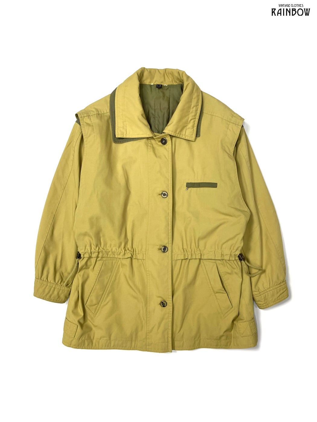 #アウター #ヘビーコート #ロングスリーブ #黄 #マスタード #無地 #前開き #ガーリー #ヴィンテージ #コットン #ダウン・中綿ジャケット