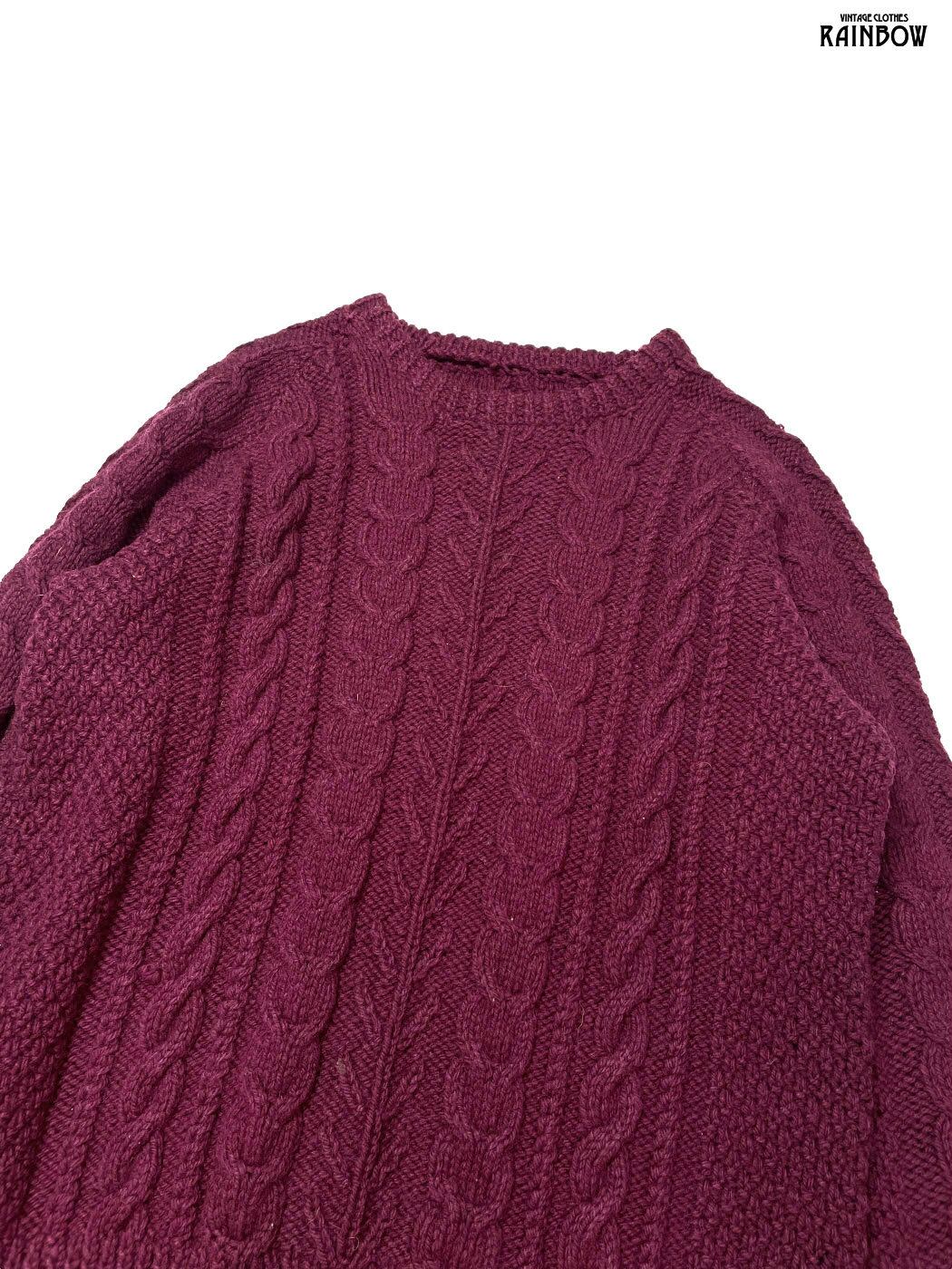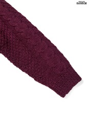 #ニット #セーター #ロングスリーブ #赤 #ボルドー #無地 #ケーブル編み #シンプル #ニット地 #無地セーター