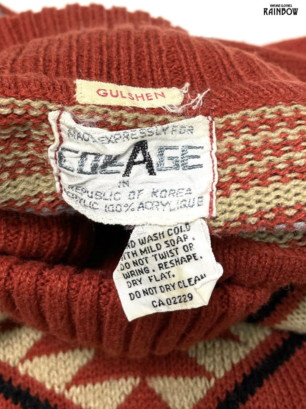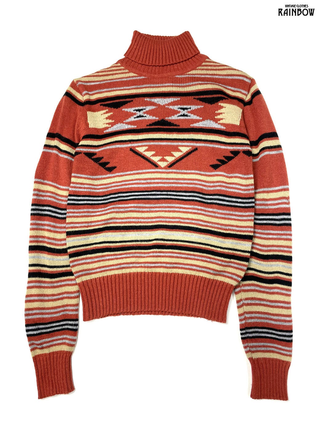 #ニット #セーター #ロングスリーブ #オレンジ #ボーダー柄 #タートルネック #ニット地 #柄セーター