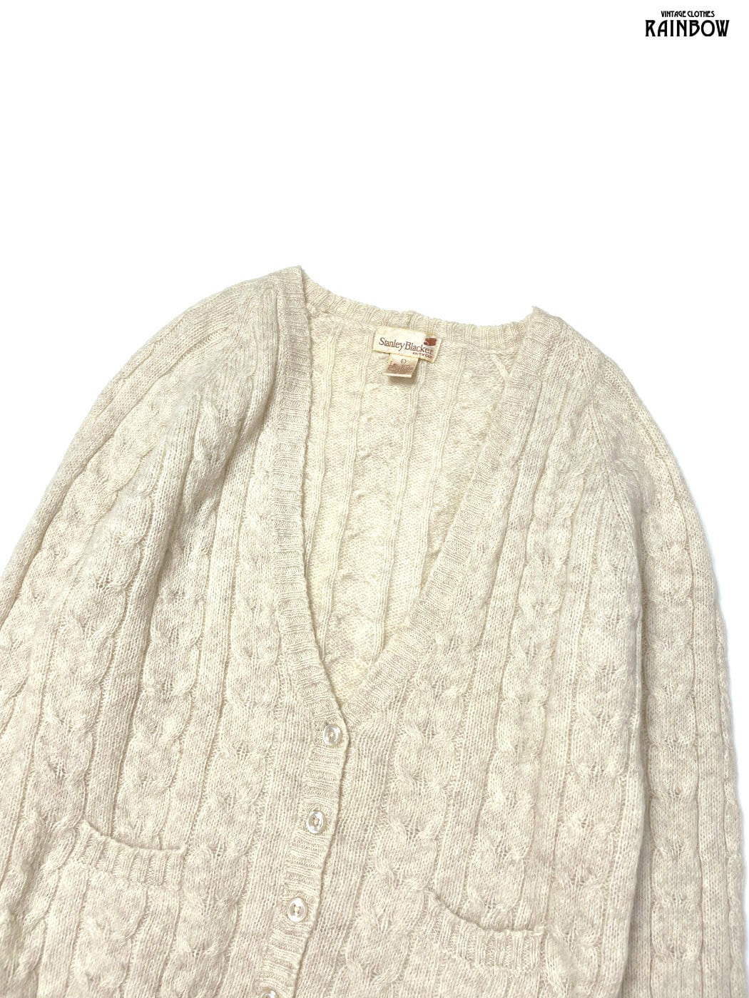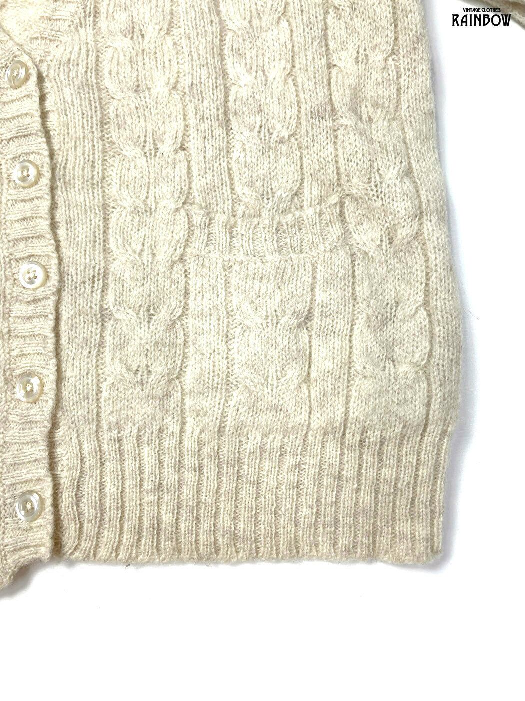 #ニット #カーディガン #ロングスリーブ #生成り #無地 #ケーブル編み #ナチュラル #ピュアウール #無地カーディガン