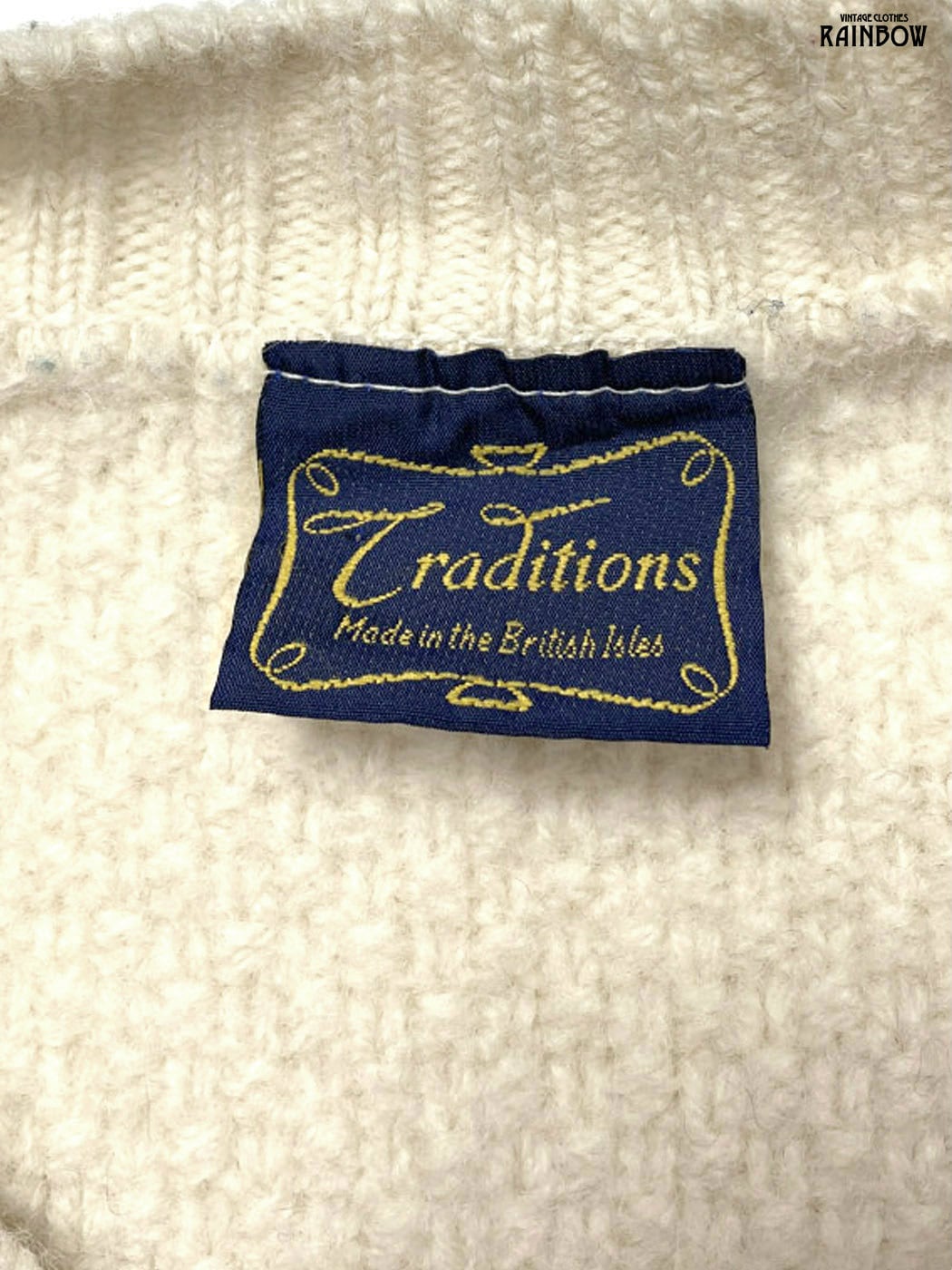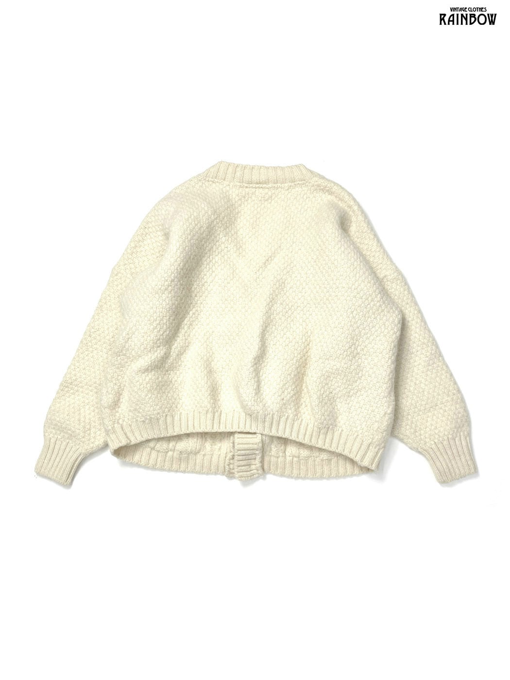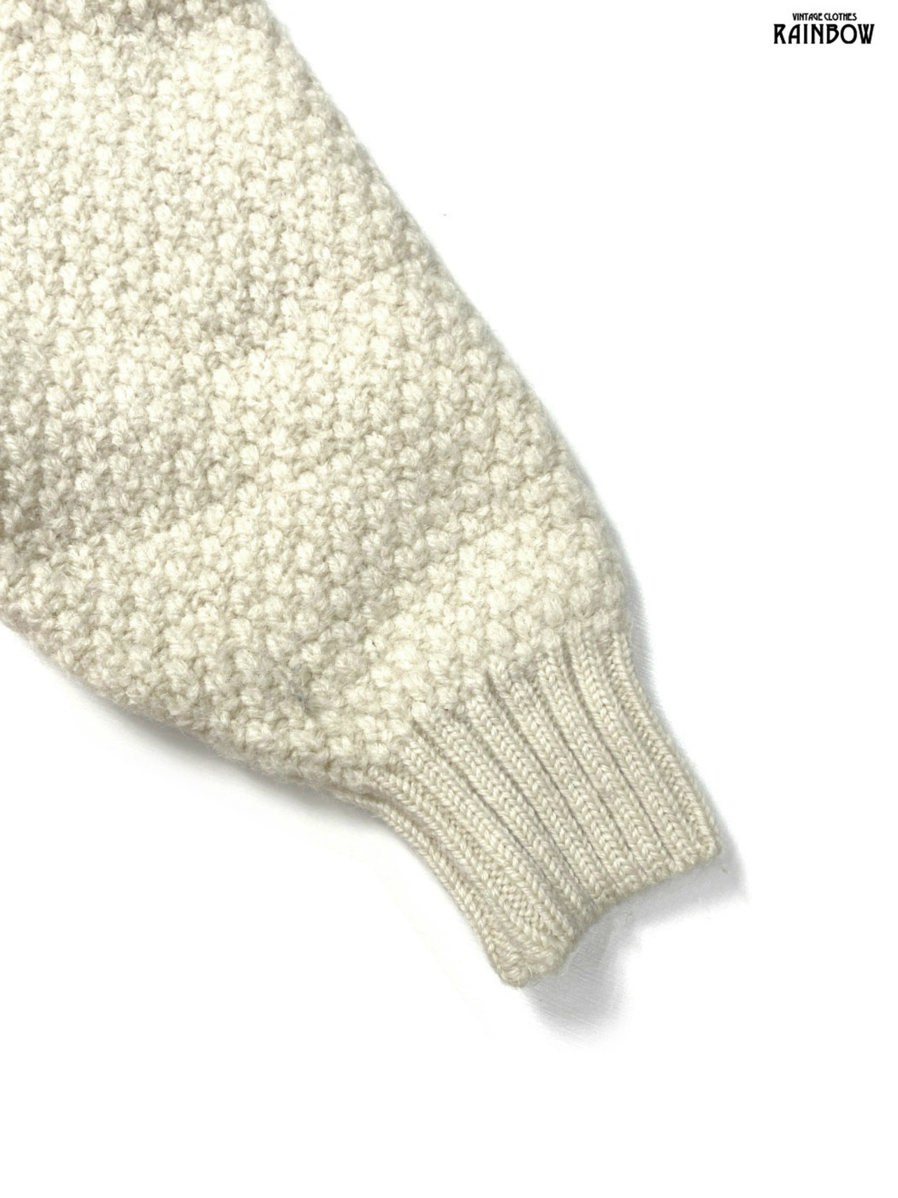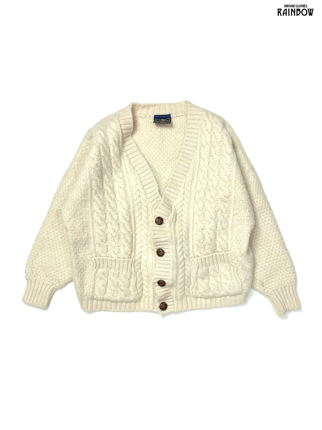 #ニット #カーディガン #ロングスリーブ #生成り #無地 #イギリス製 #ケーブル編み #ナチュラル #ピュアウール #無地カーディガン