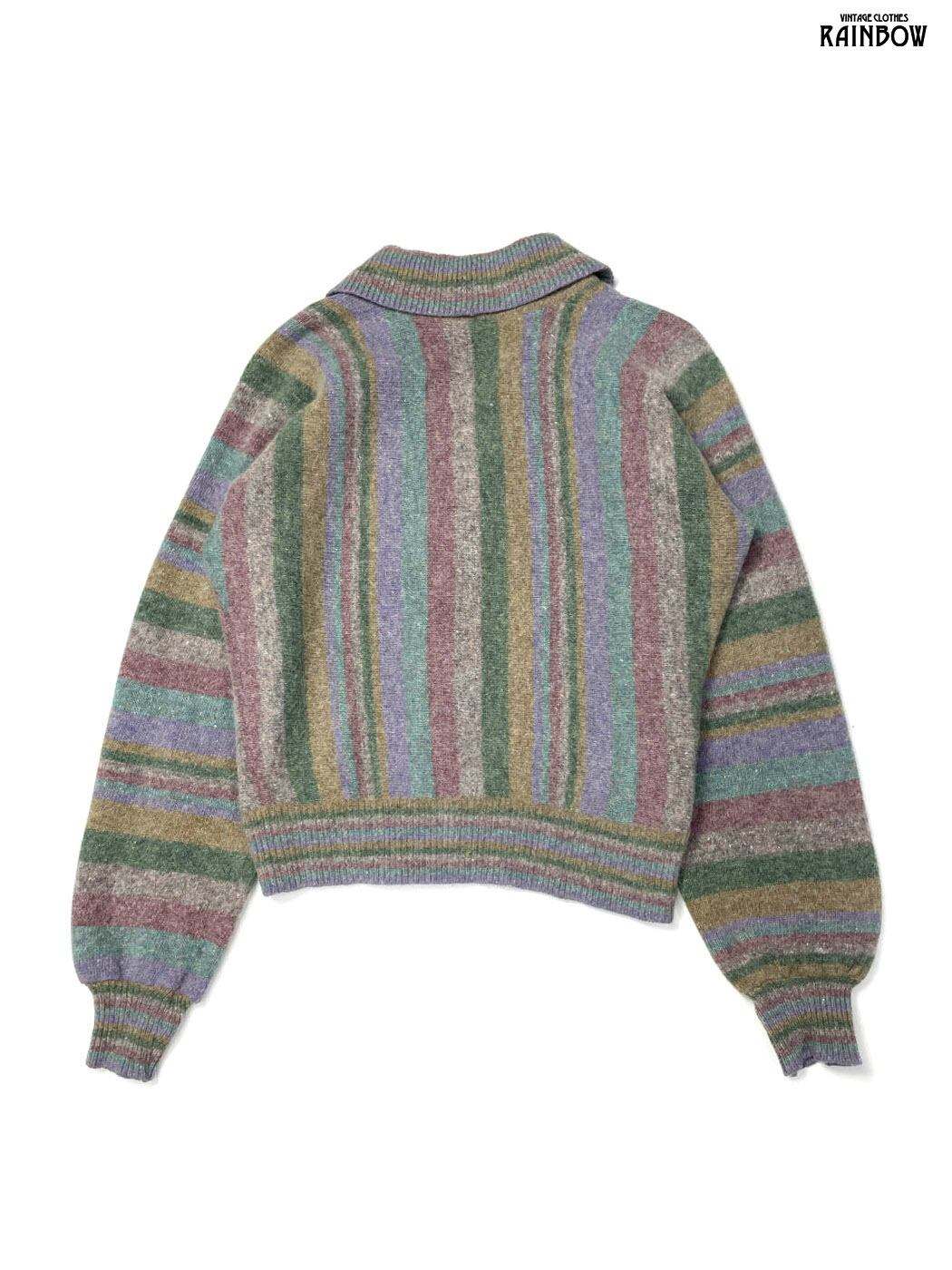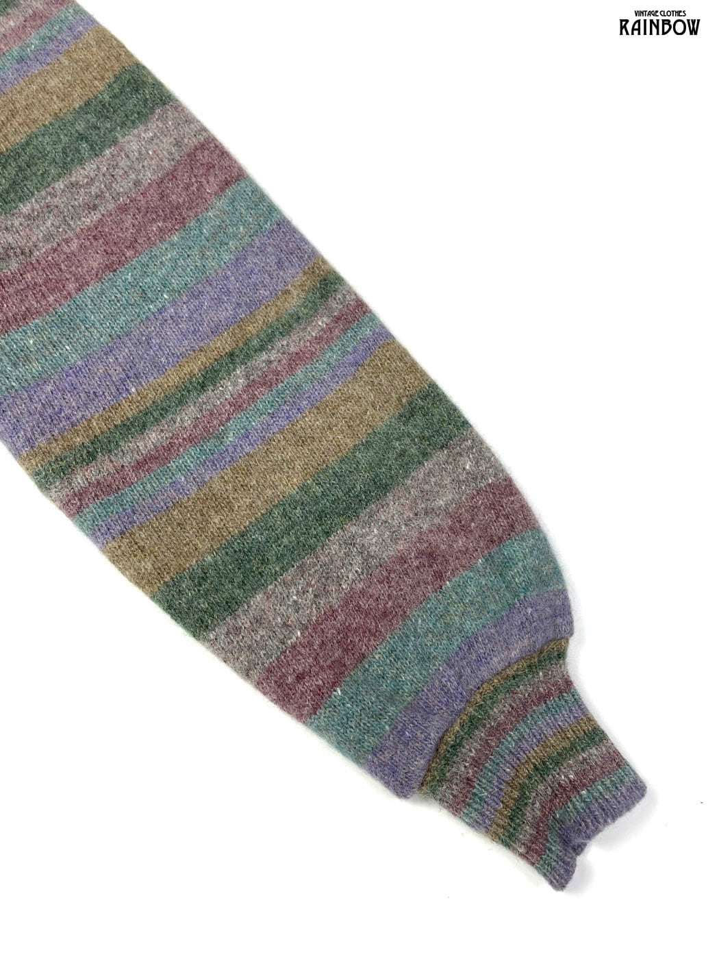 #ニット #カーディガン #ロングスリーブ #グレー #ストライプ柄 #ウール #柄カーディガン