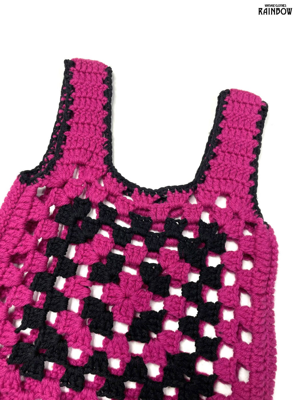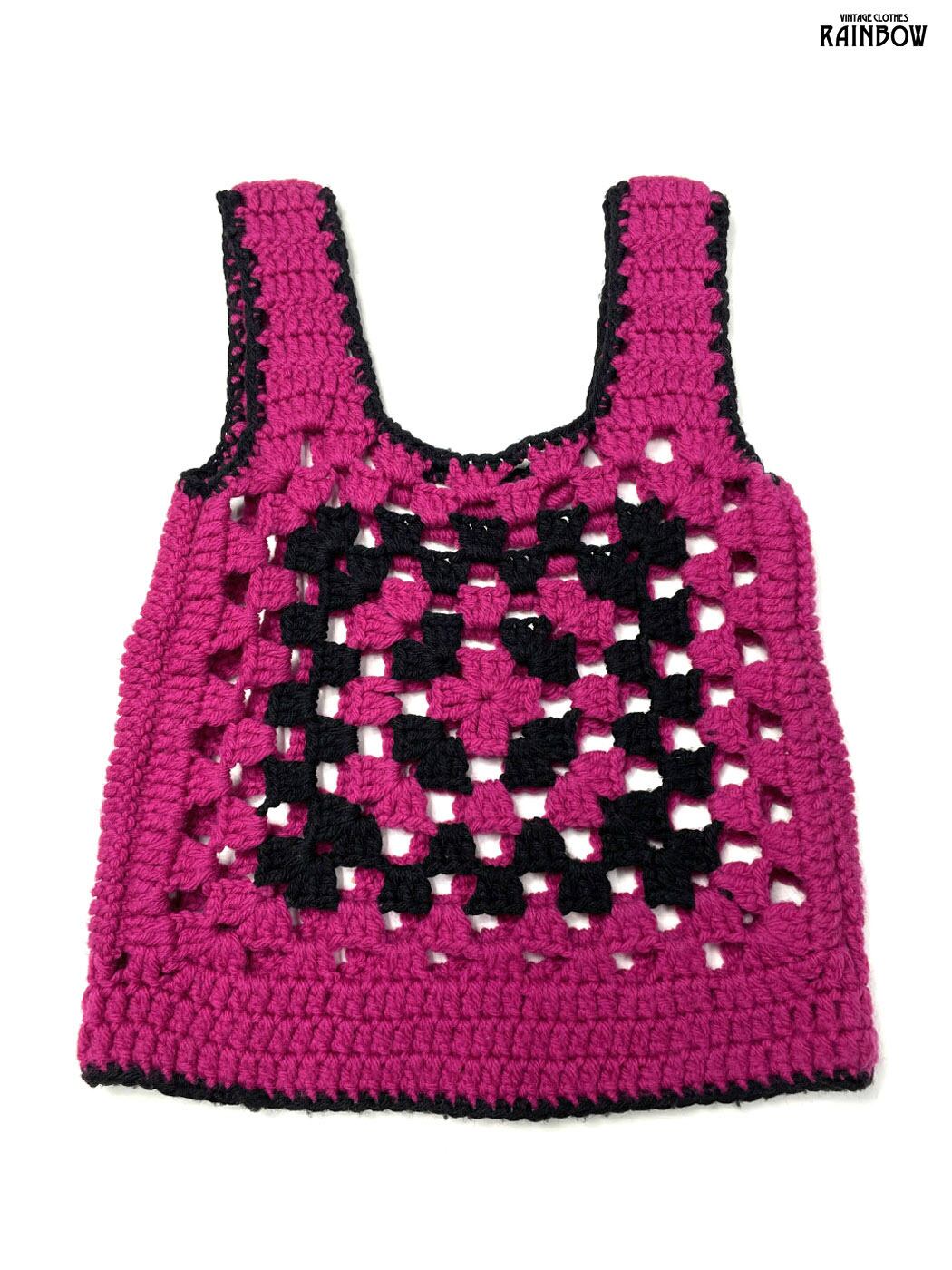 #トップス #ベスト #ノースリーブ #ピンク #総柄 #カギ編み #ニット地 #ベスト