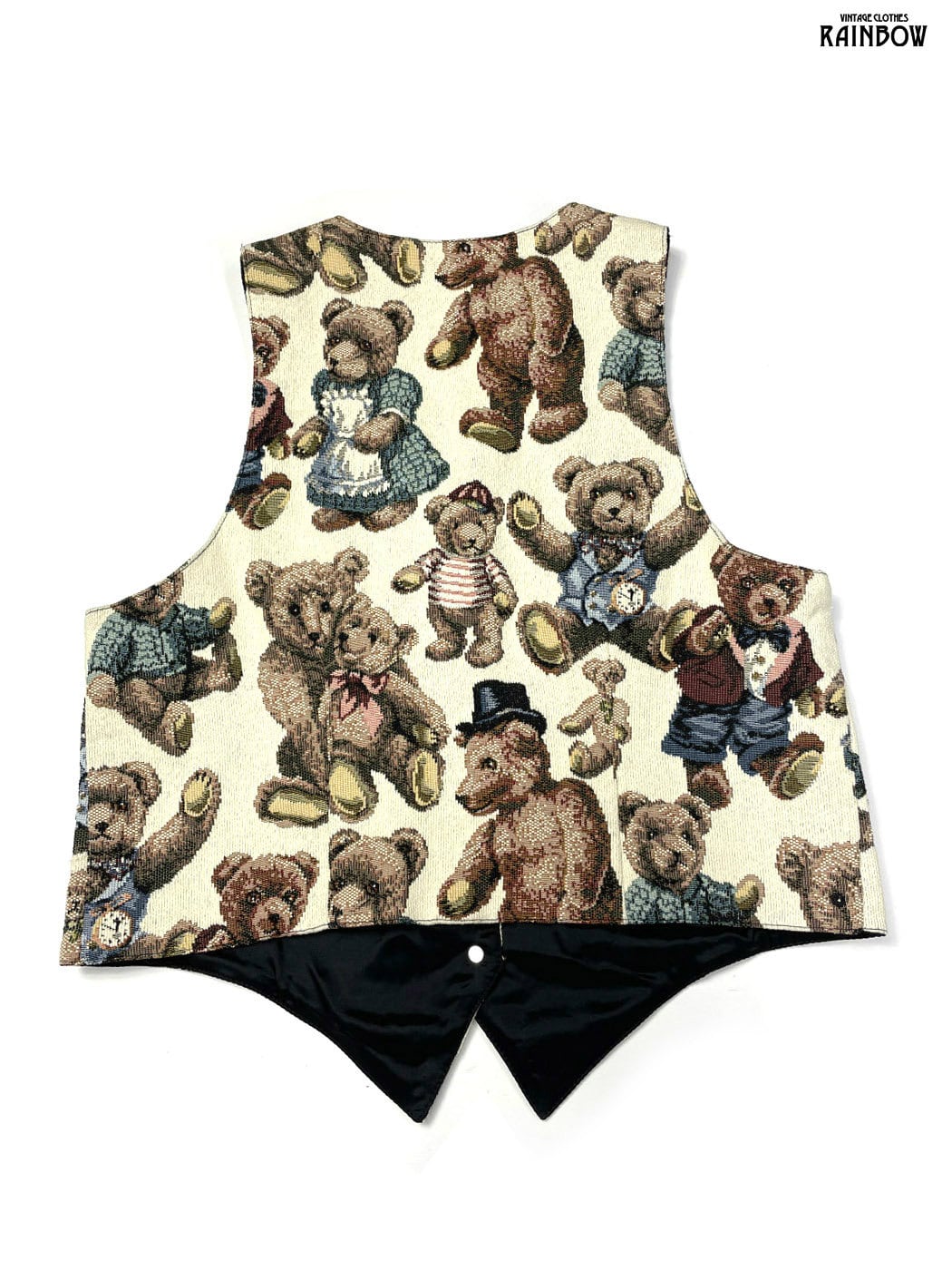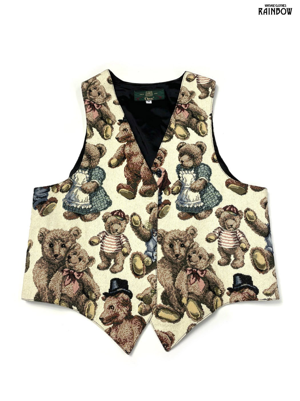 #トップス #ベスト #ノースリーブ #ベージュ #総柄 #くま #アメリカ製 #ゴブラン織 #コットン #ベスト