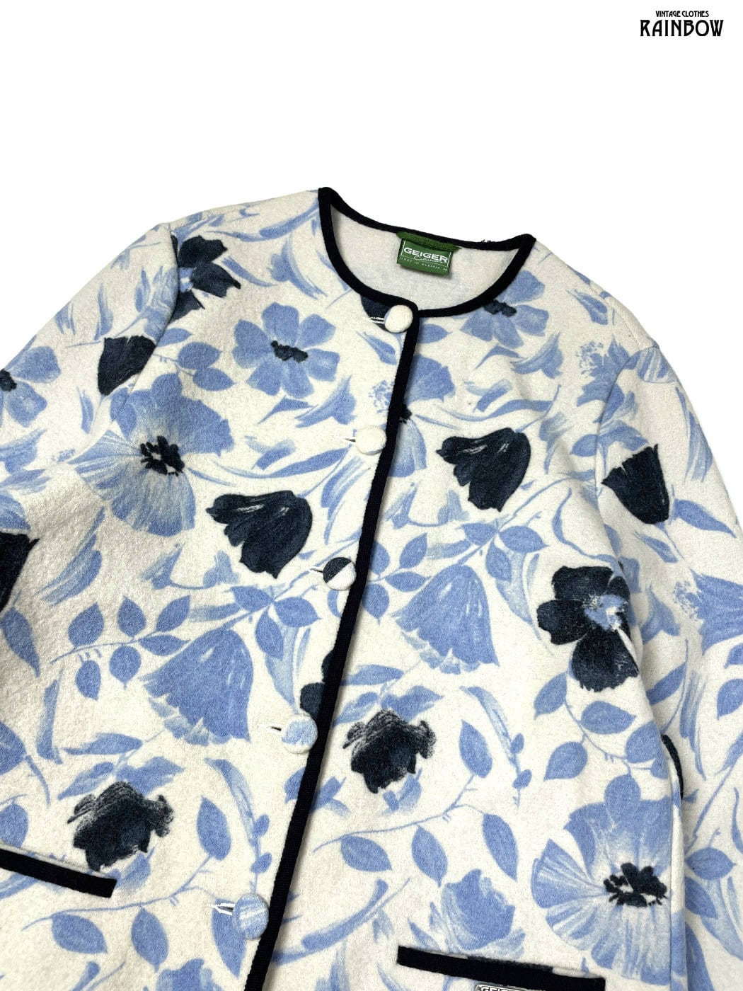 #アウター #ライトジャケット #ロングスリーブ #水色 #花柄 #ピュアウール #ウールジャケット