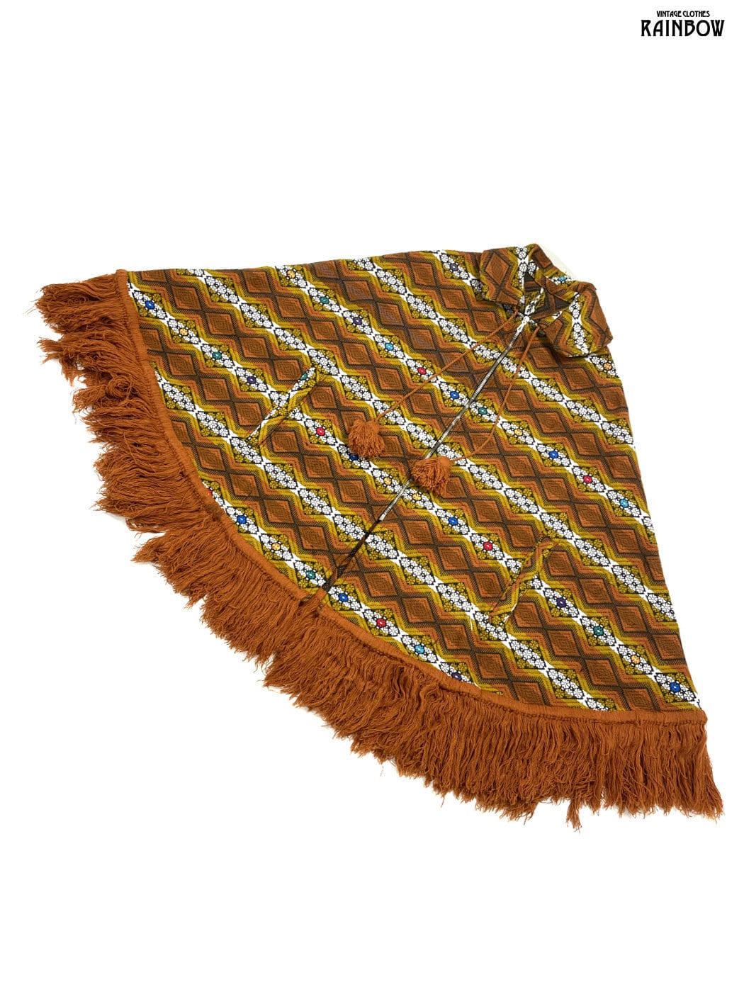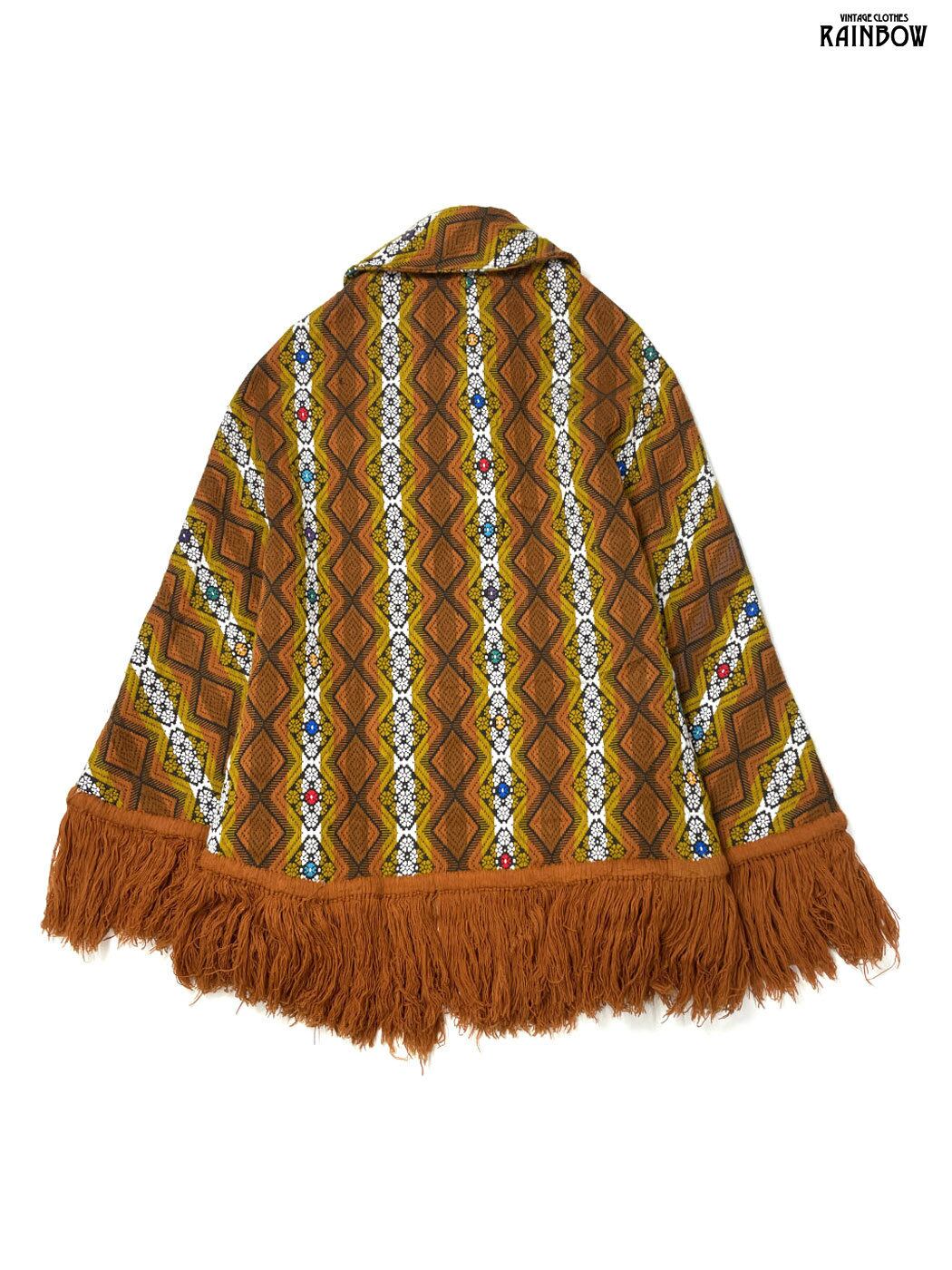 #アウター #羽織り #ロングスリーブ #オレンジ #総柄 #フリンジ #エスニック #コットン #ポンチョ・ケープ