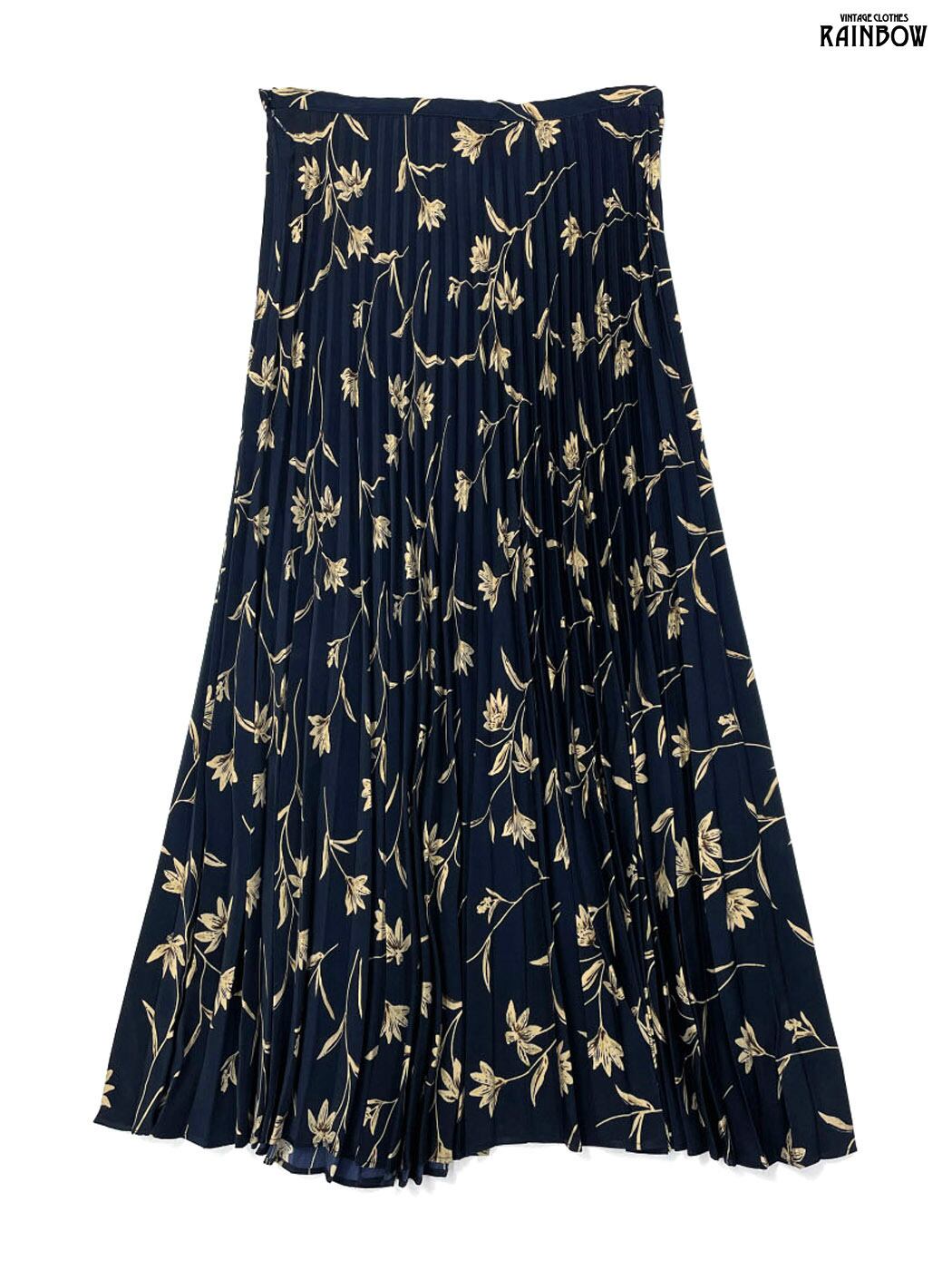 #スカート #ロング丈 #プリーツ #紺 #花柄 #クラシック #花柄スカート