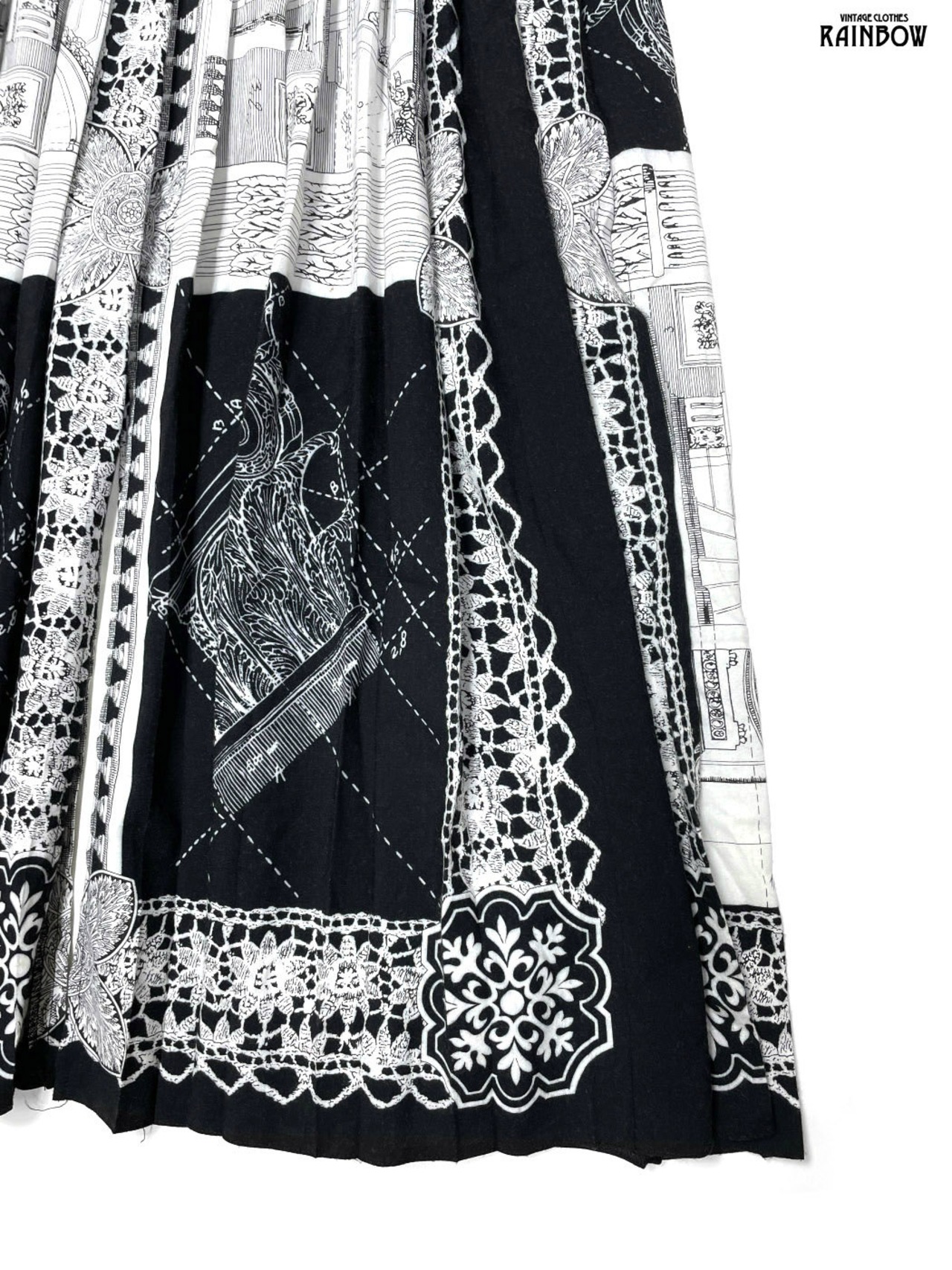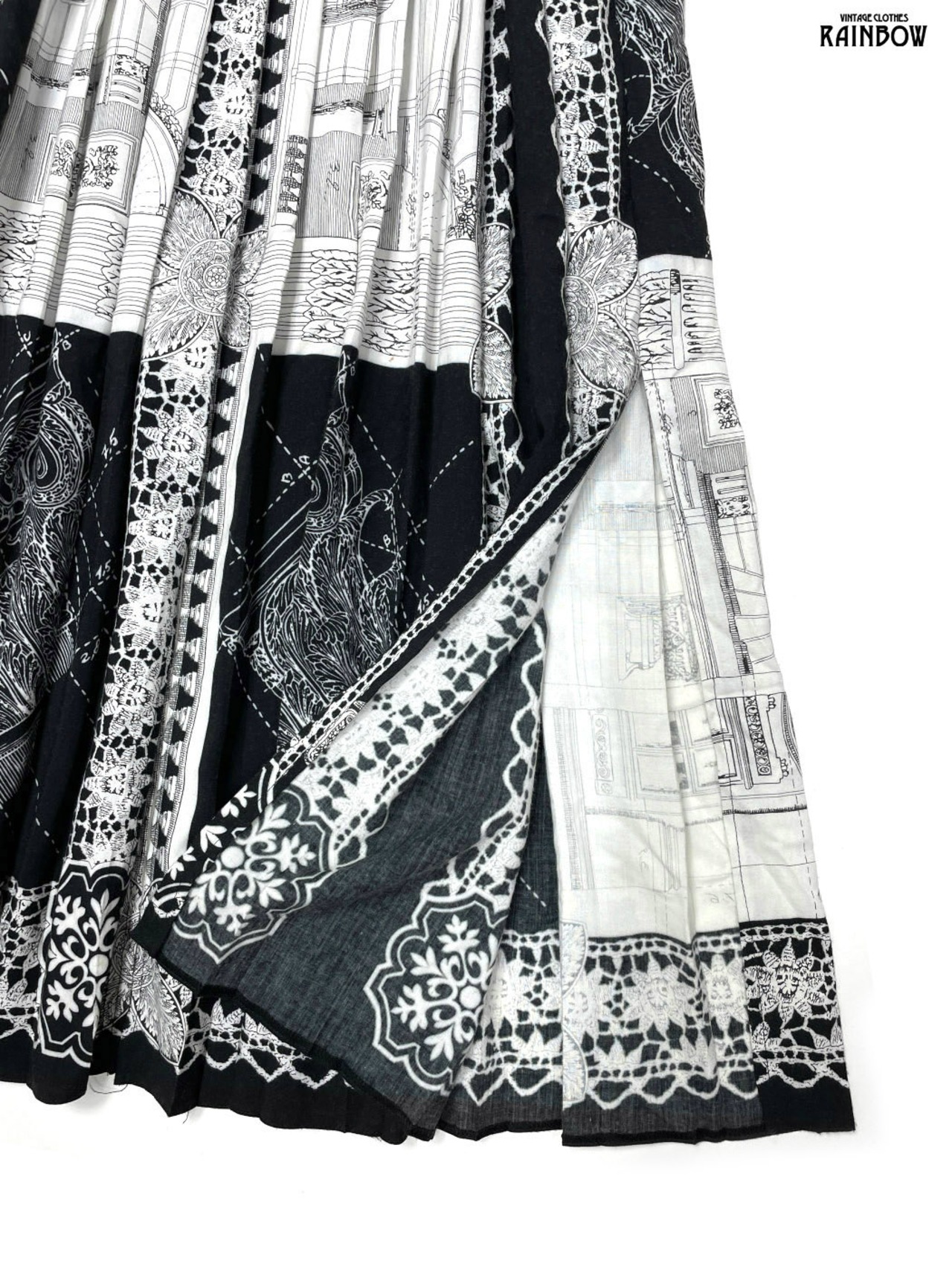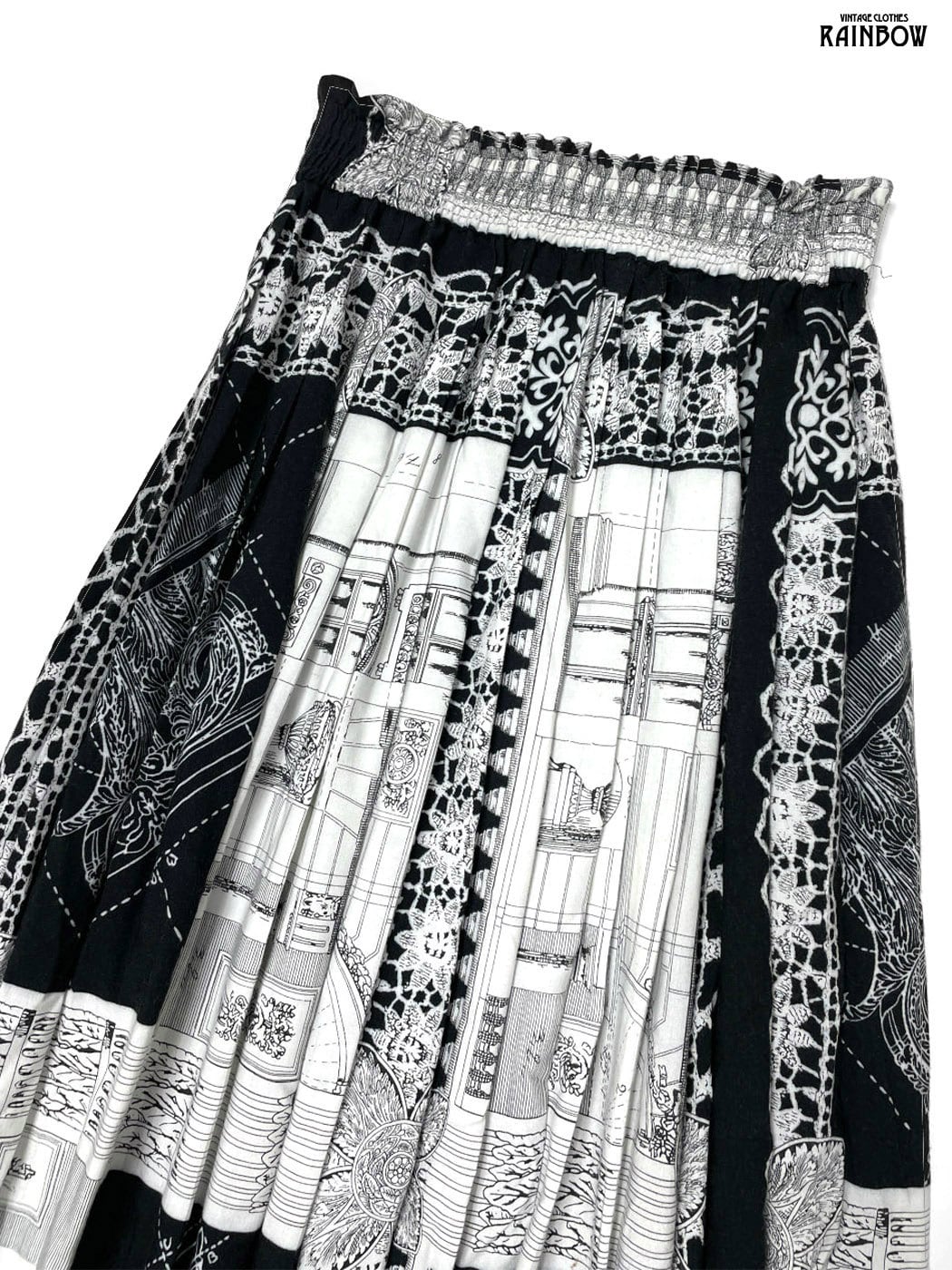 #スカート #ロング丈 #ゴムウエスト #黒 #白 #総柄 #スリット #クラシック #レーヨン #秋冬柄スカート