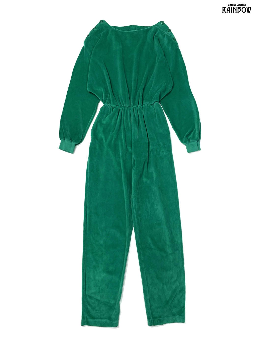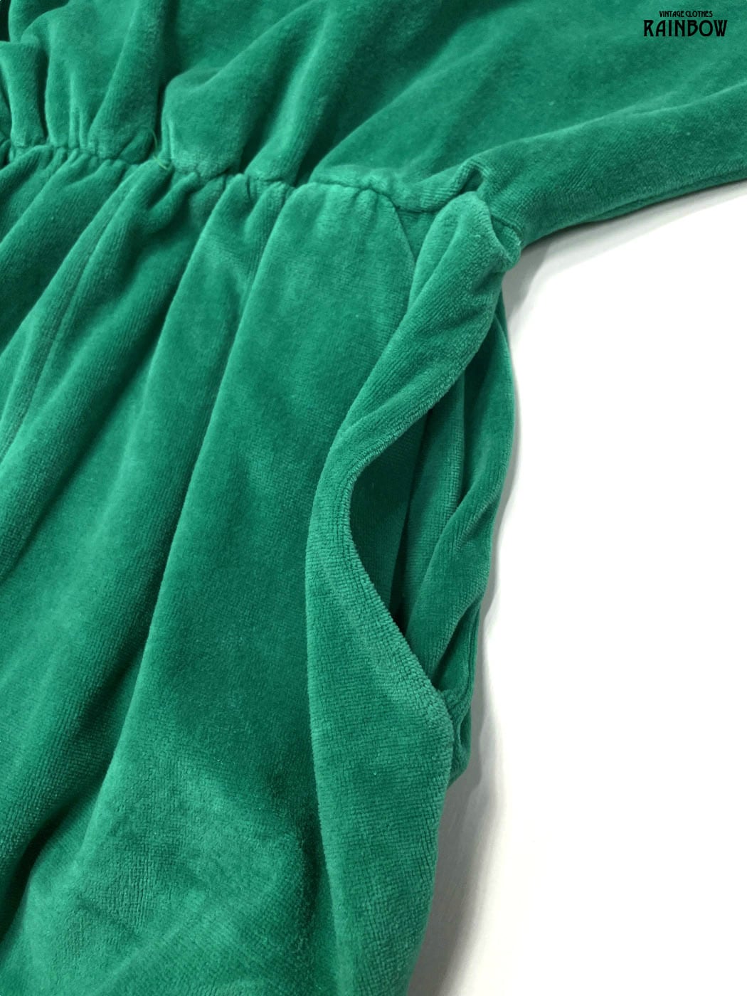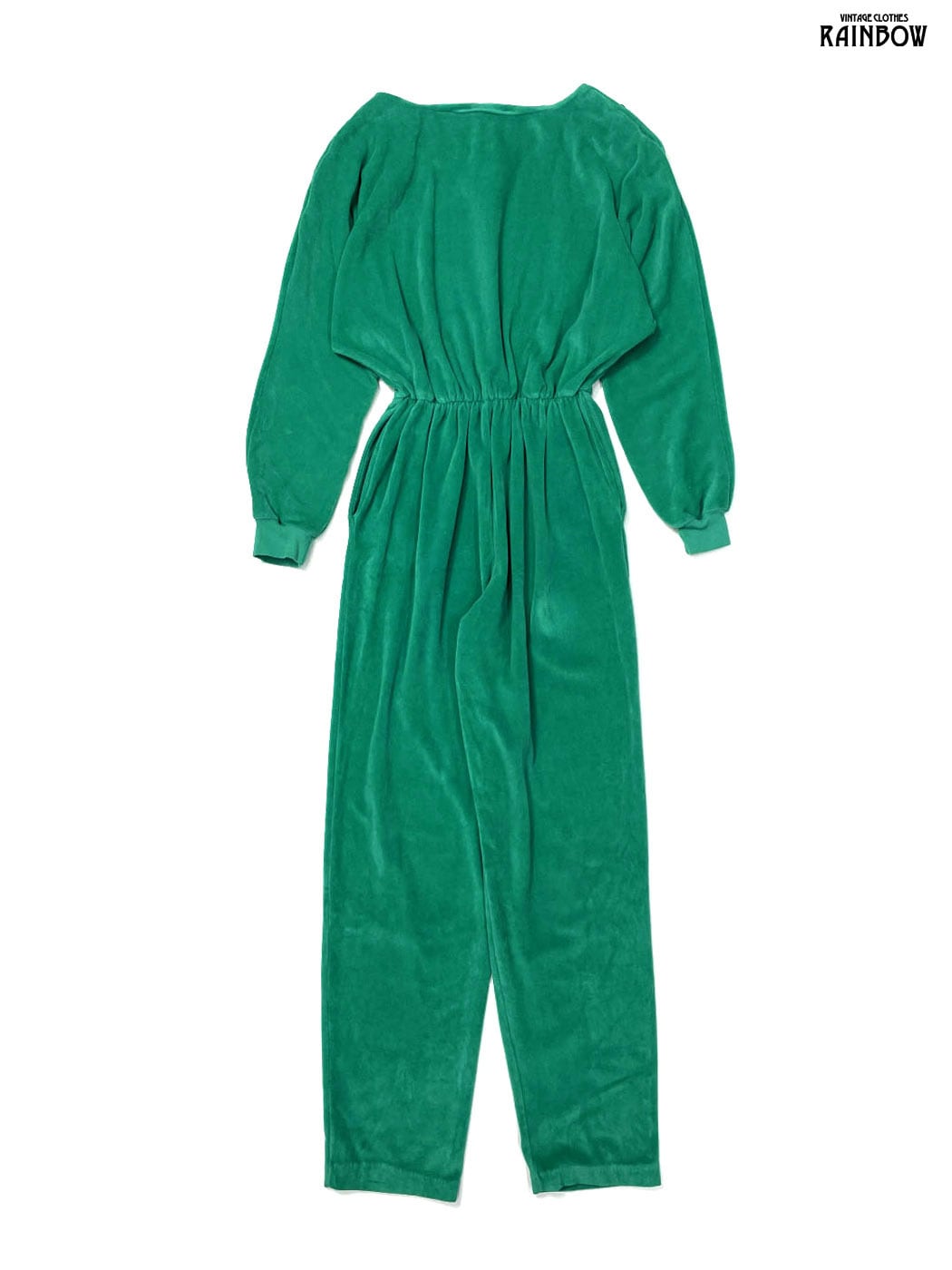 #ワンピース #オールインワン #ロングスリーブ #ロング丈 #ゴムウエスト #緑 #無地 #シンプル #ベロア #長袖オールインワン