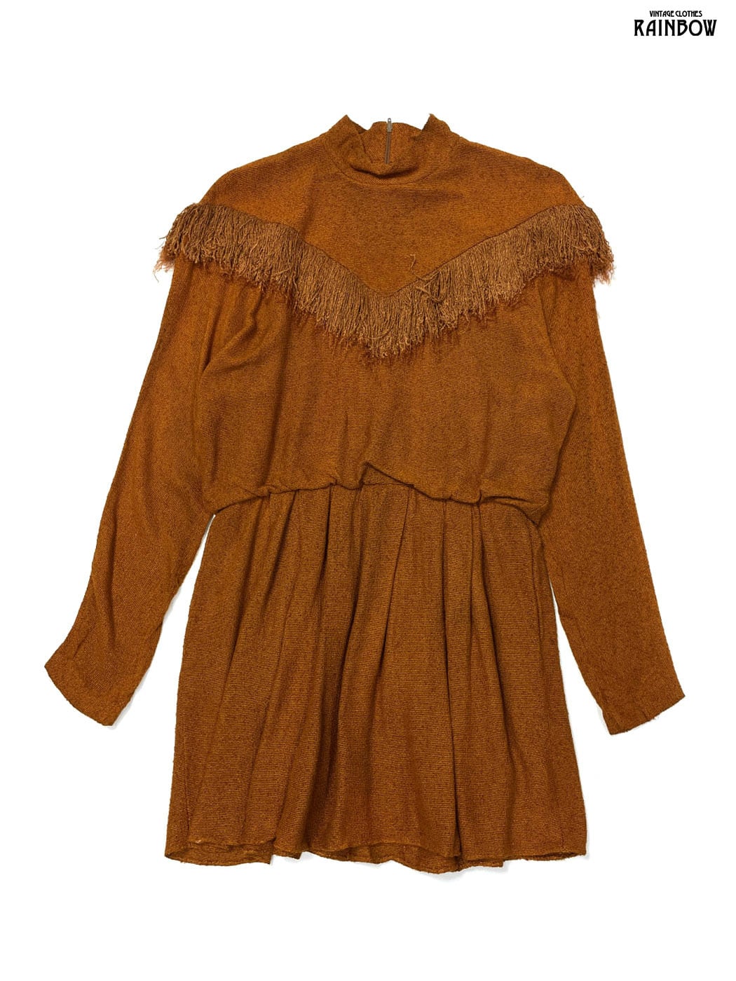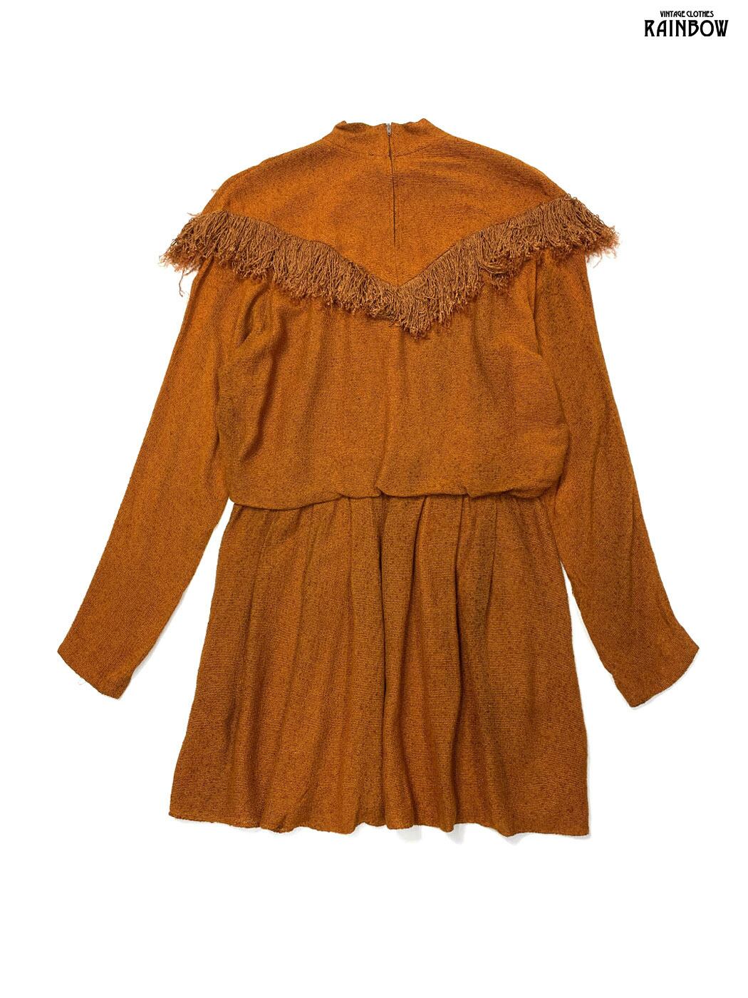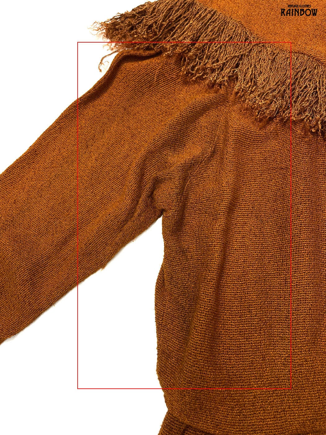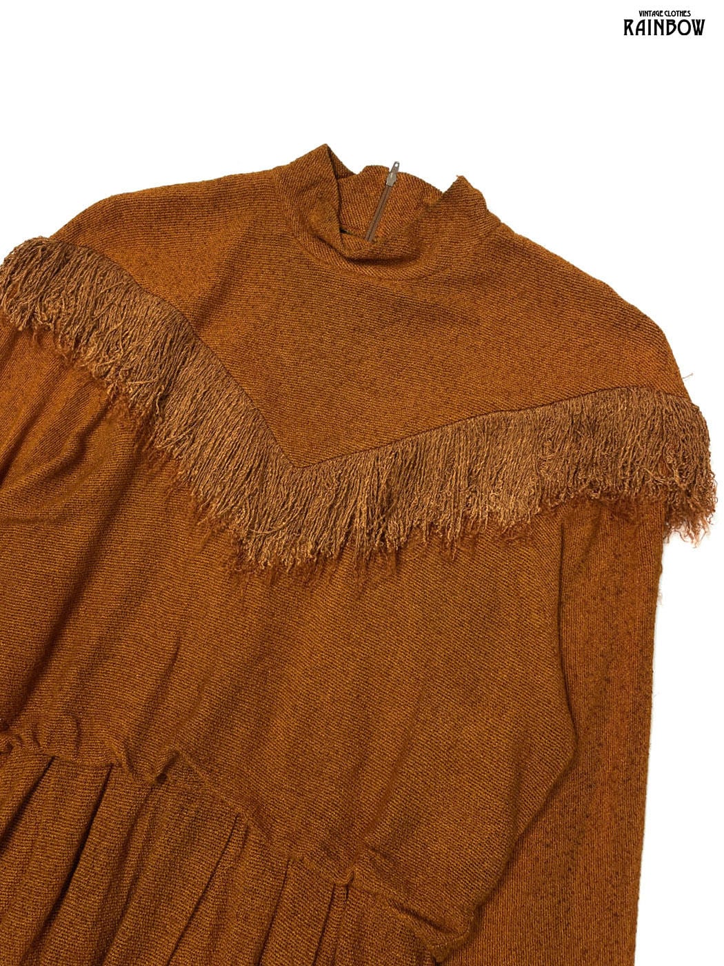 #ワンピース #ロングスリーブ #茶 #無地 #フリンジ #シンプル #ニット地 #ニットワンピース