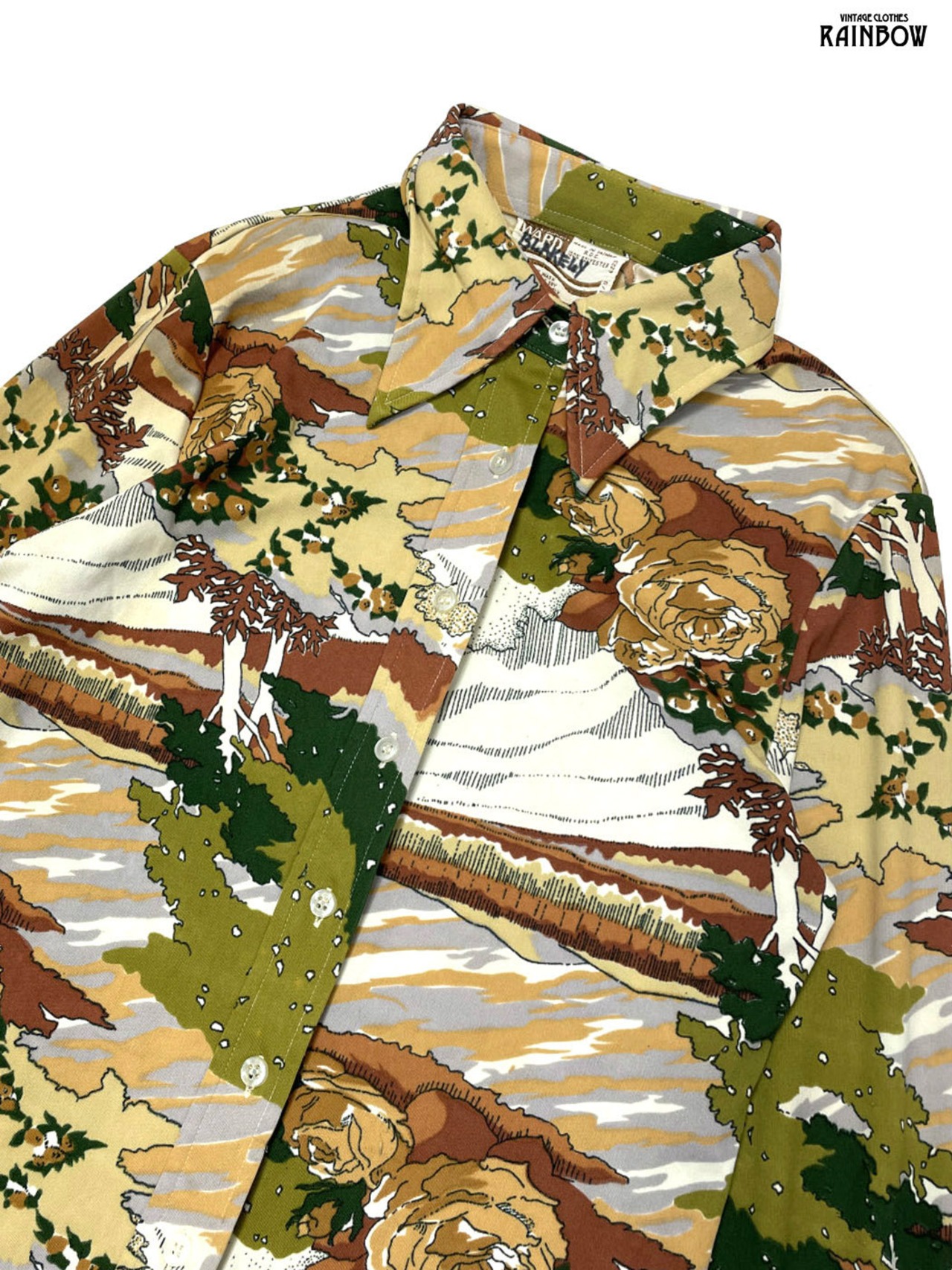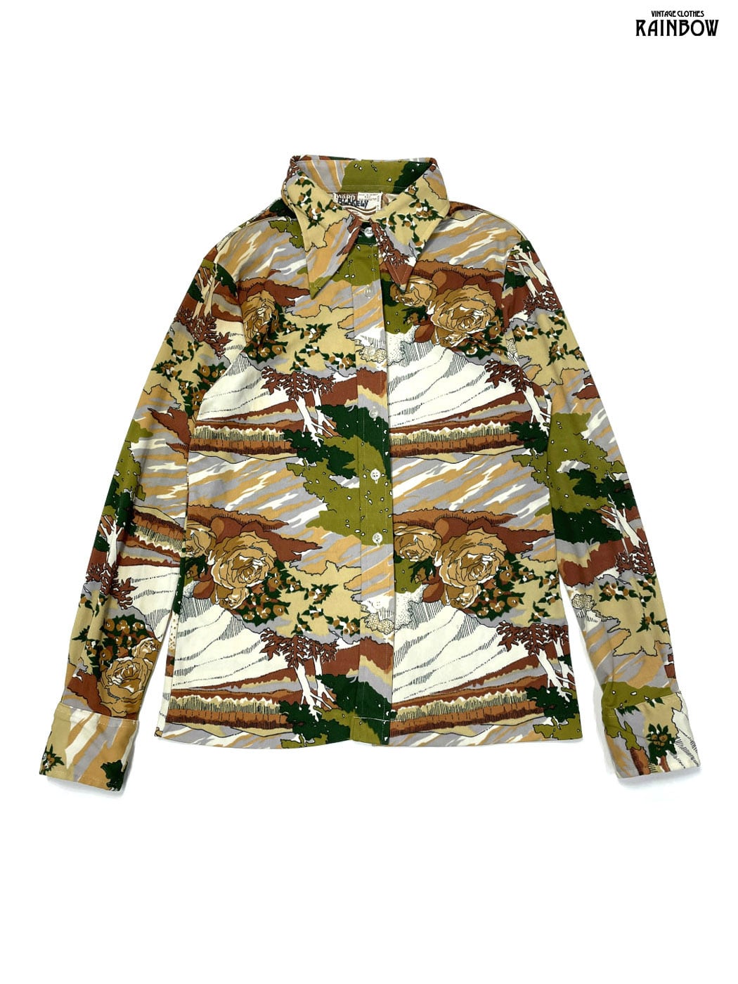 #ブラウス #シャツ #ロングスリーブ #緑 #総柄 #柄シャツ