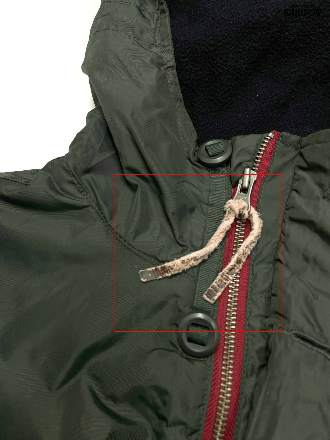 【コンディション:B】フードと革紐に生地ダメージがございます。