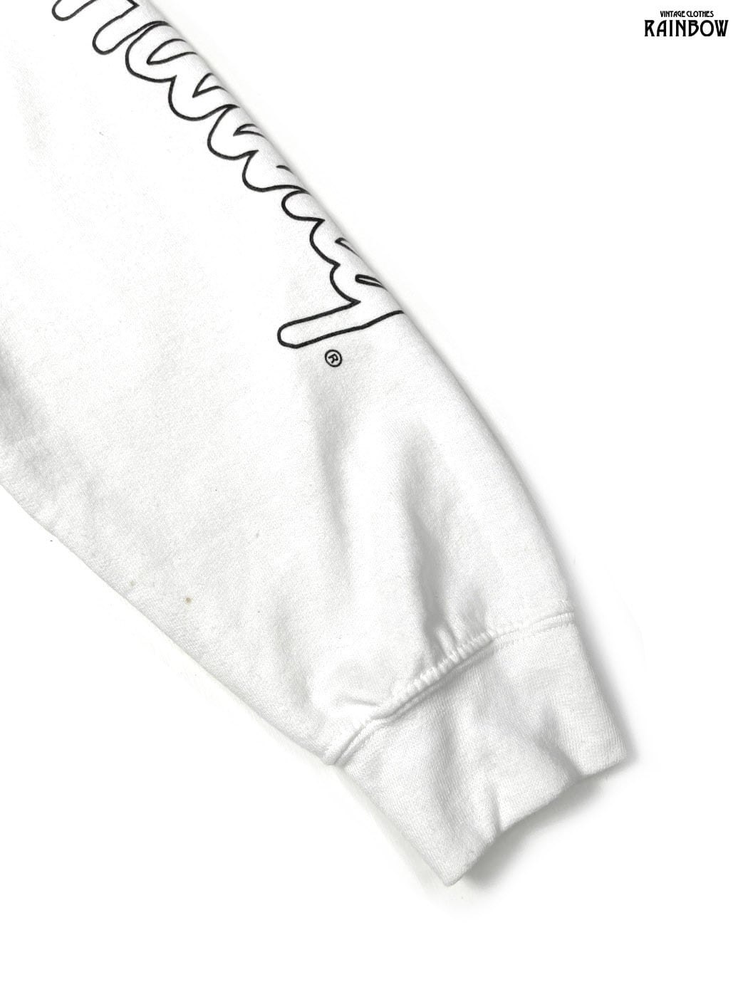 #トップス #スウェット #フーディー #パーカー #ロングスリーブ #白 #プリントデザイン #袖ロゴ #裏起毛 #スウェット地 #プリントフーディー