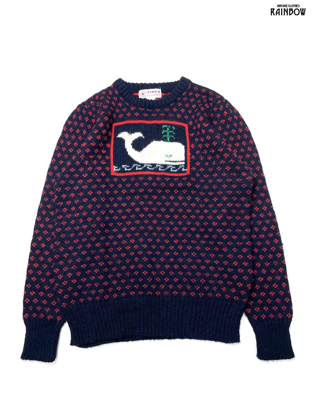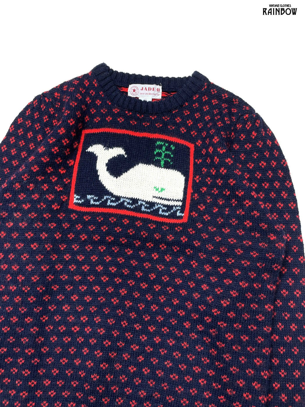 #ニット #セーター #ロングスリーブ #紺 #総柄 #鯨 #クラシック #ニット地 #柄セーター