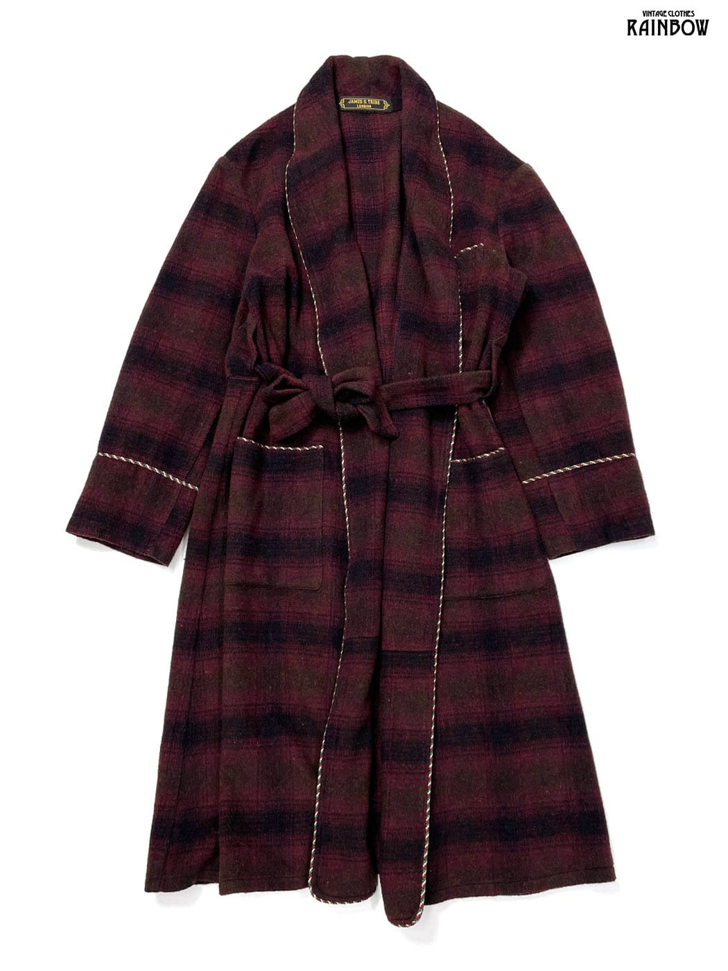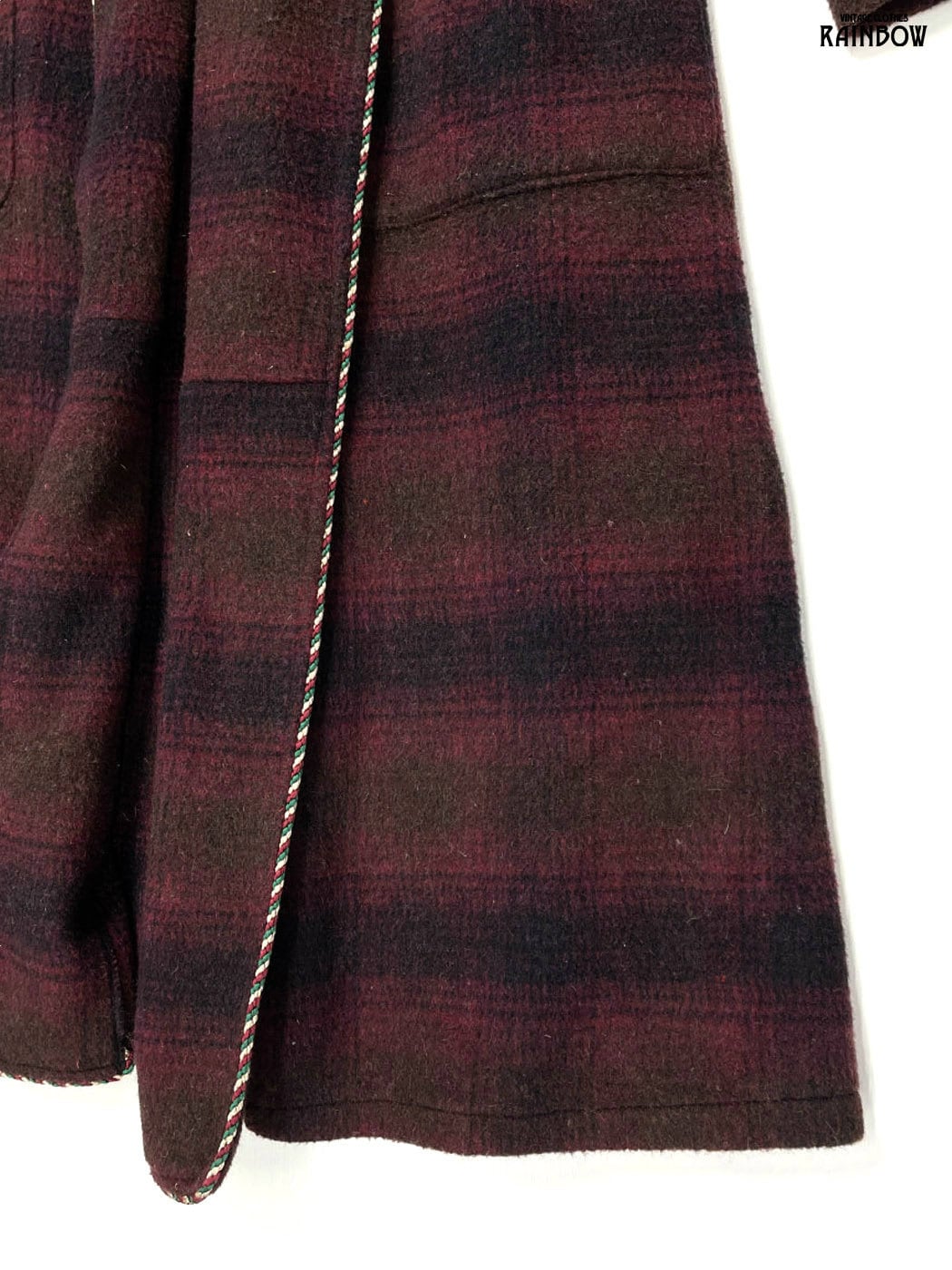 #アウター #羽織り #ロングスリーブ #赤 #ボルドー #チェック柄 #ベルト付き #ウール #ガウン