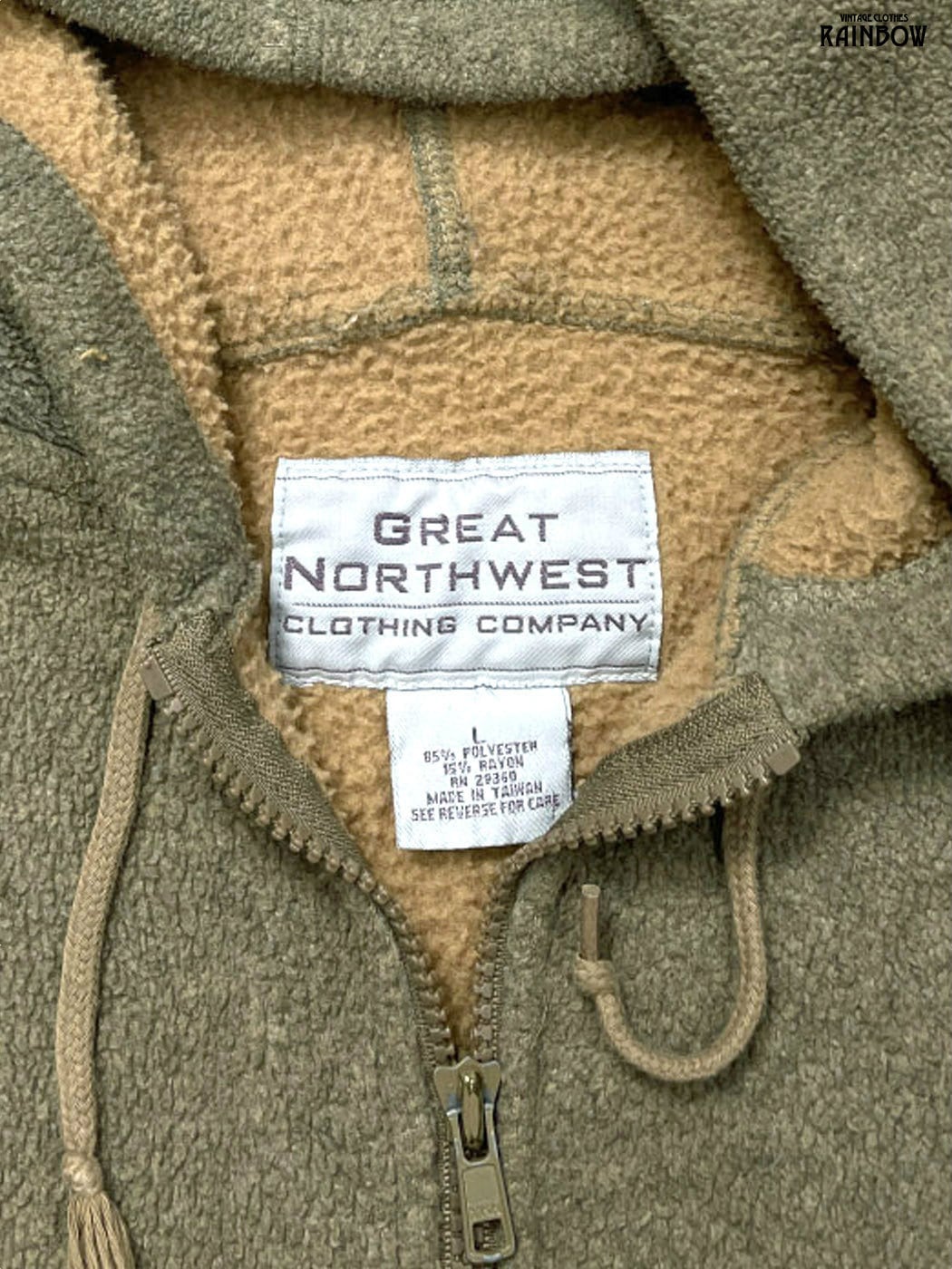 古着 GREAT NORTHWEST 無地 フリース 長袖 パーカー ライトジャケット 緑 カーキ (ttu2510259)