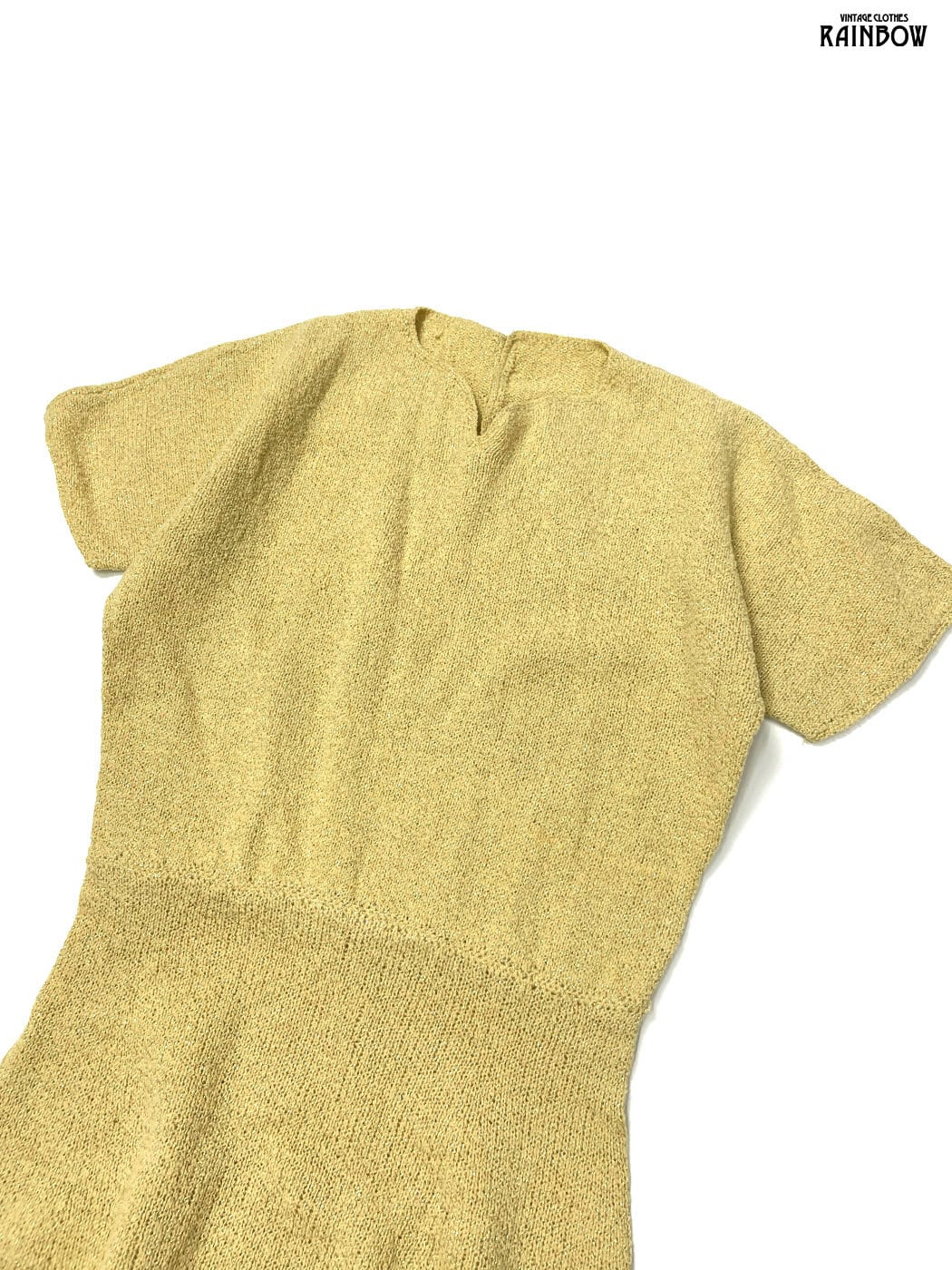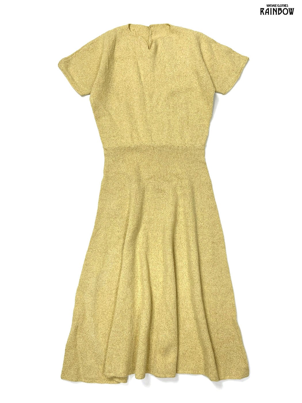 #ワンピース #ハーフスリーブ #ロング丈 #ゴムウエスト #黄 #無地 #ラメ織り #シンプル #ニット地 #ニットワンピース