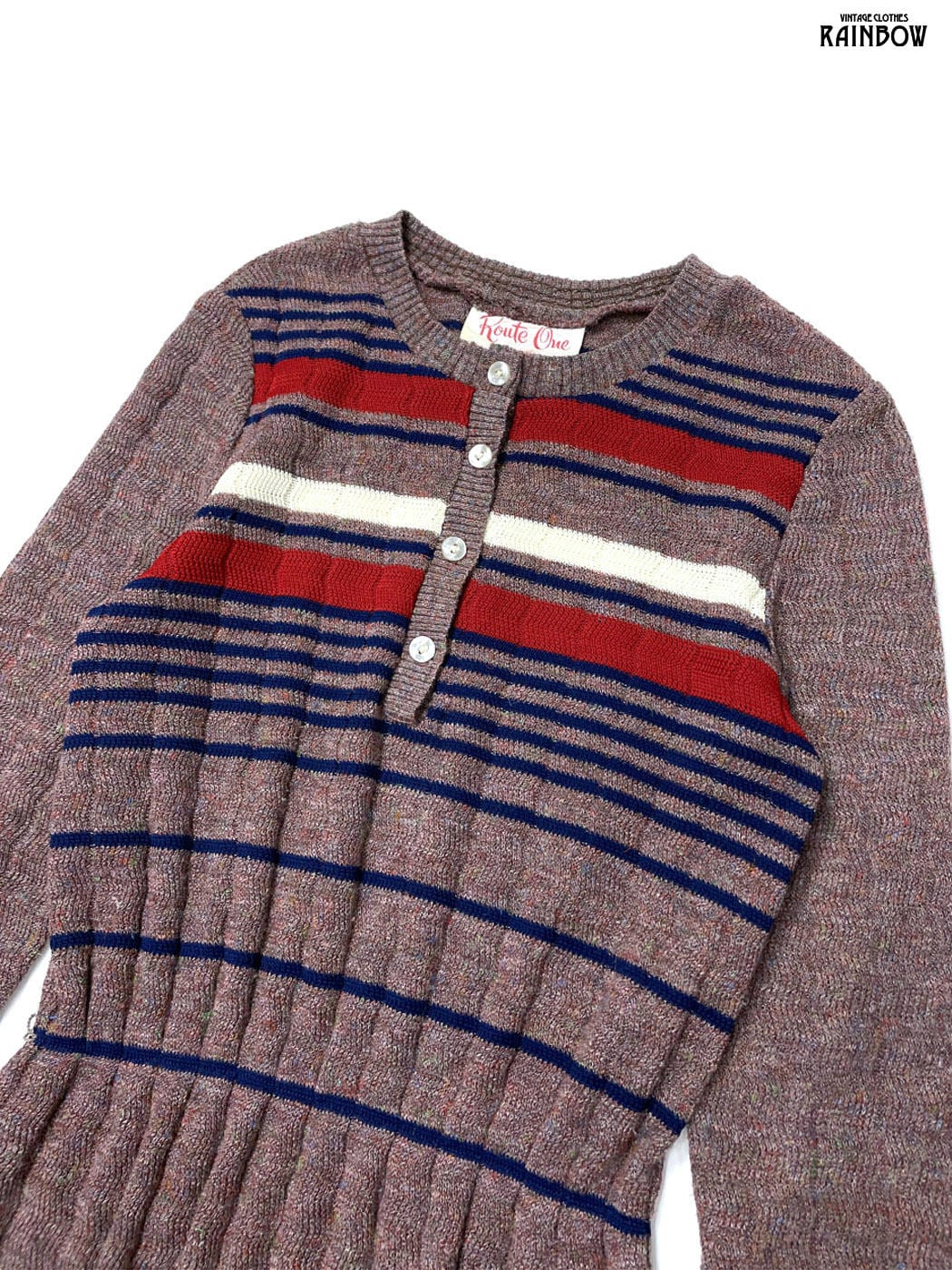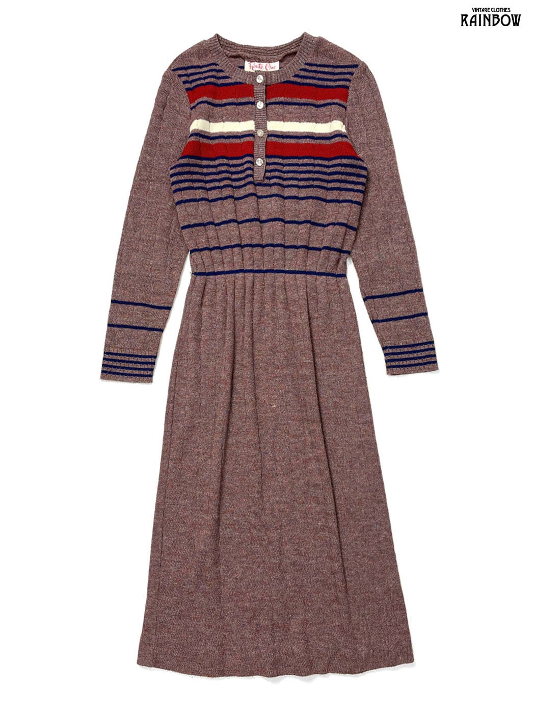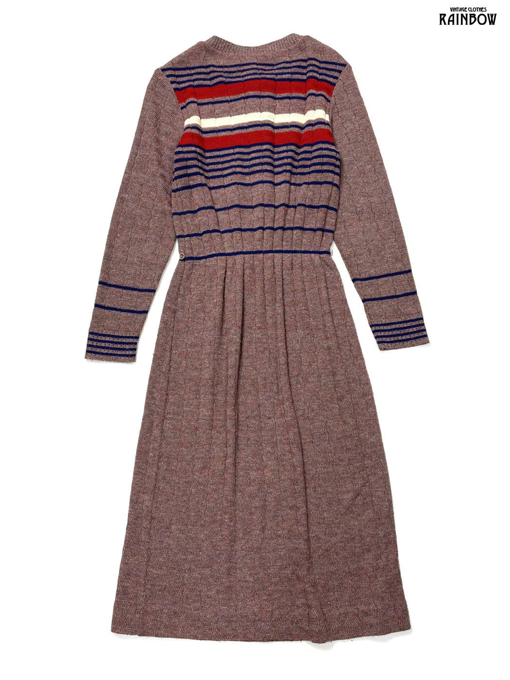#ワンピース #ロングスリーブ #ロング丈 #茶 #ボーダー柄 #ニット地 #ニットワンピース