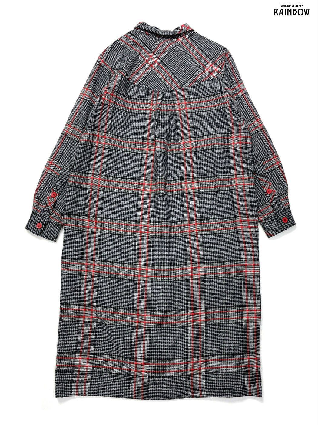 #ワンピース #ロングスリーブ #ロング丈 #グレー #チェック柄 #ウール #ウールワンピース