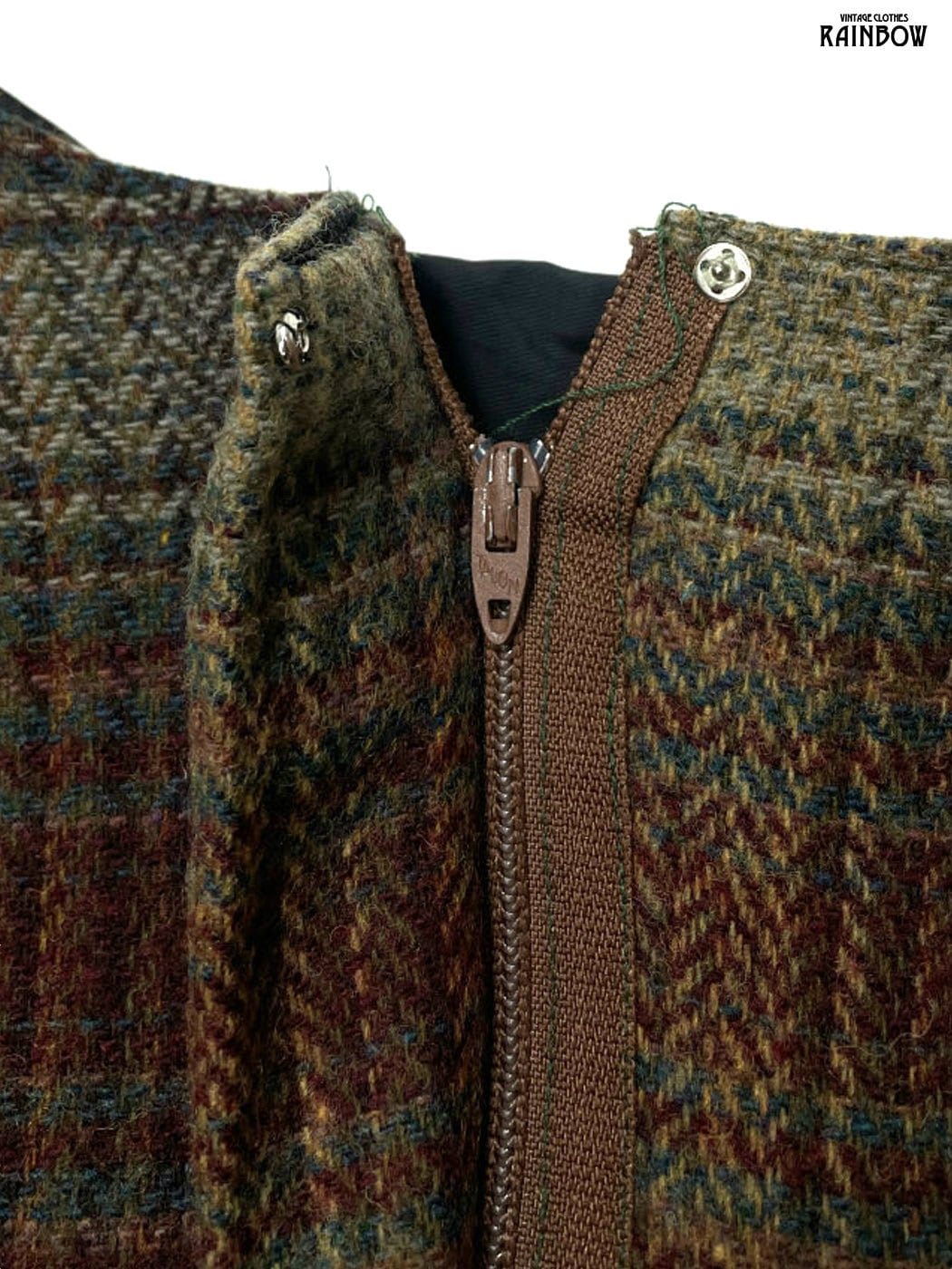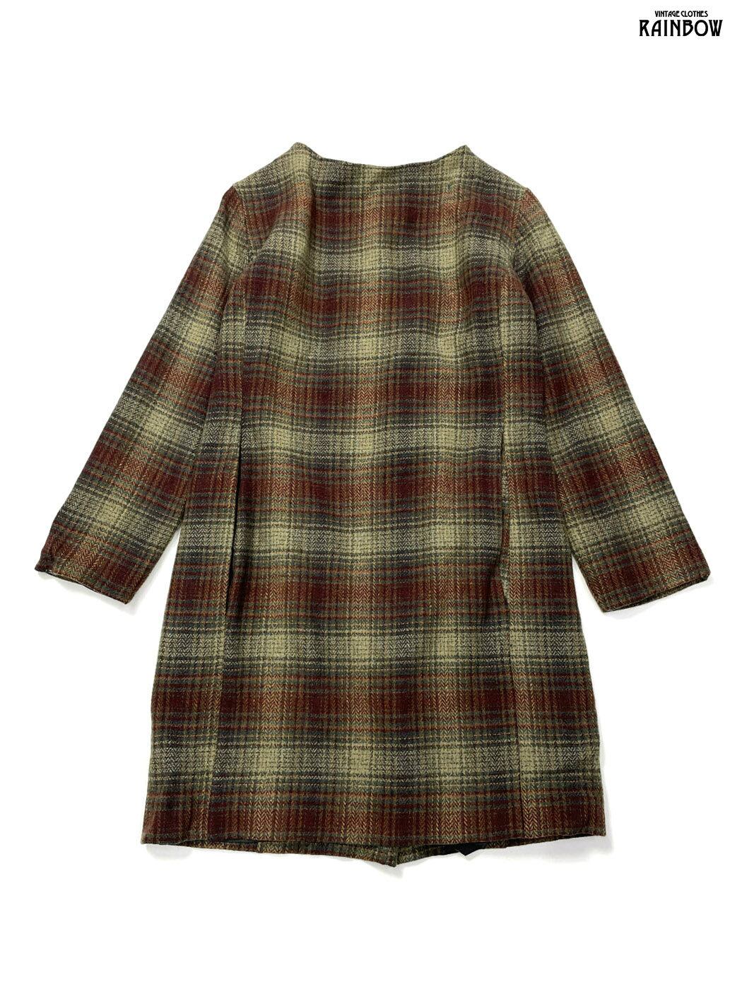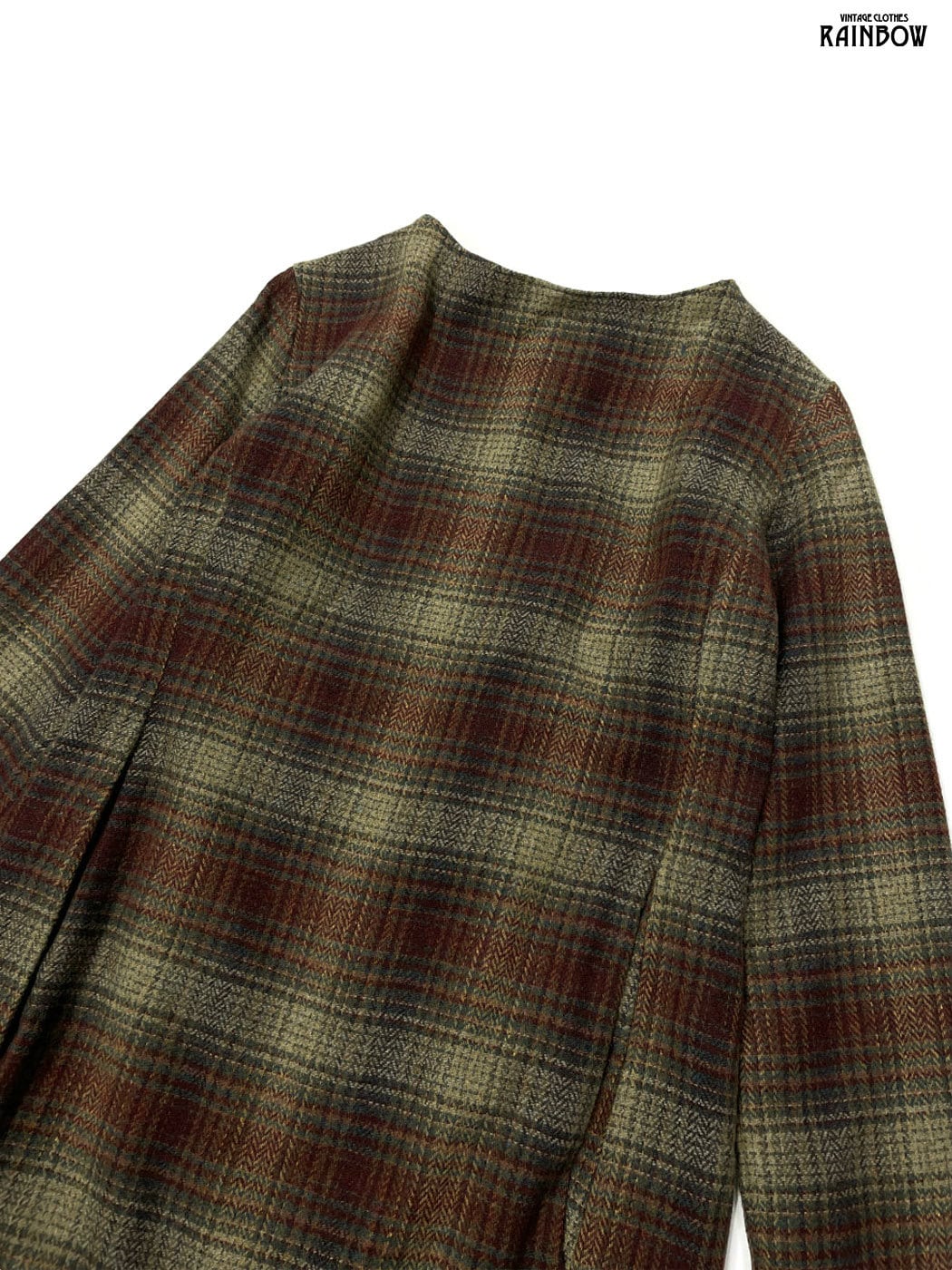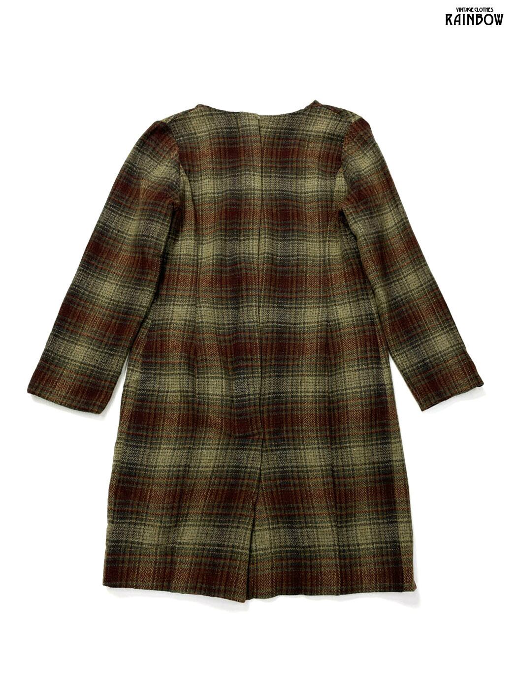 #ワンピース #ロングスリーブ #ミニ丈 #茶 #チェック柄 #TALONジップ #ウール #ウールワンピース