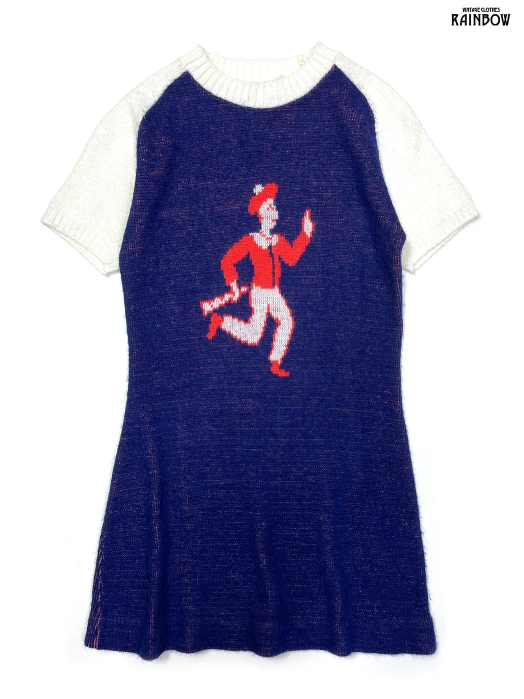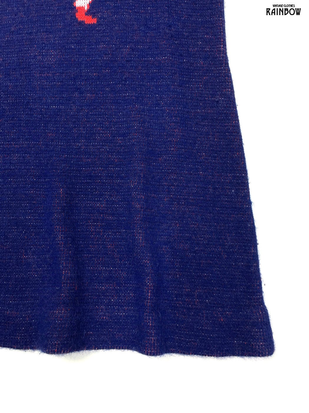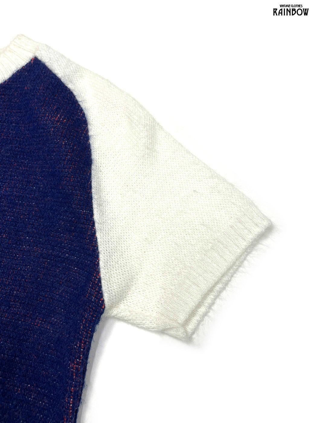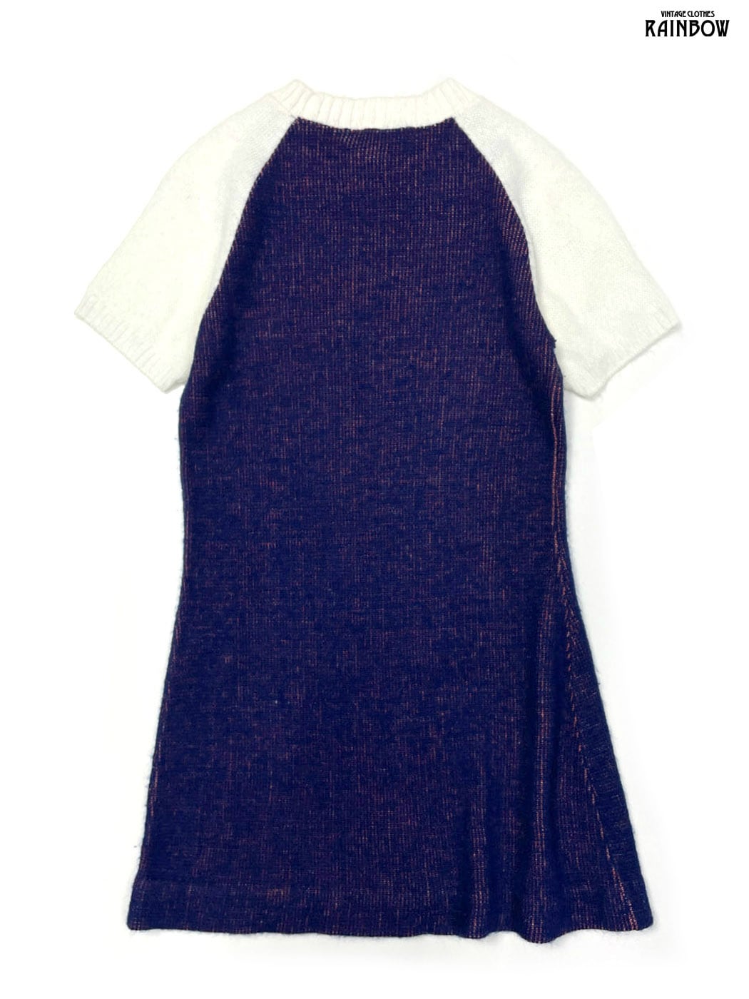 #ワンピース #ハーフスリーブ #ミニ丈 #紺 #総柄 #ニット地 #ニットワンピース