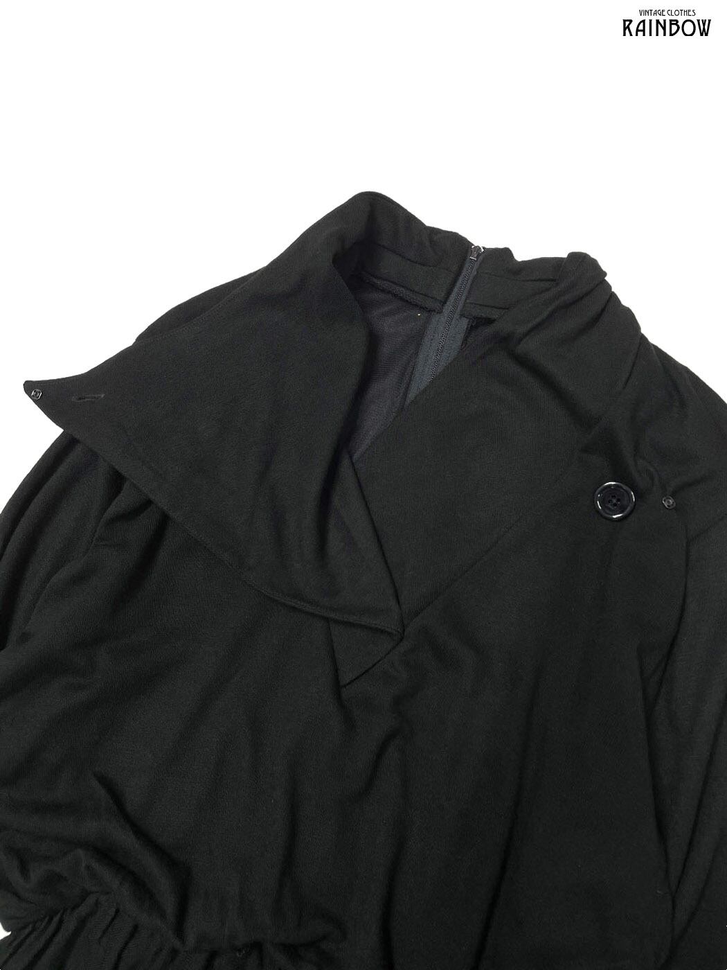 #ワンピース #ロングスリーブ #ロング丈 #フレア #ゴムウエスト #ウエスト切り替え #黒 #無地 #アメリカ製 #TALONジップ #シンプル #シック #ブラックワンピース